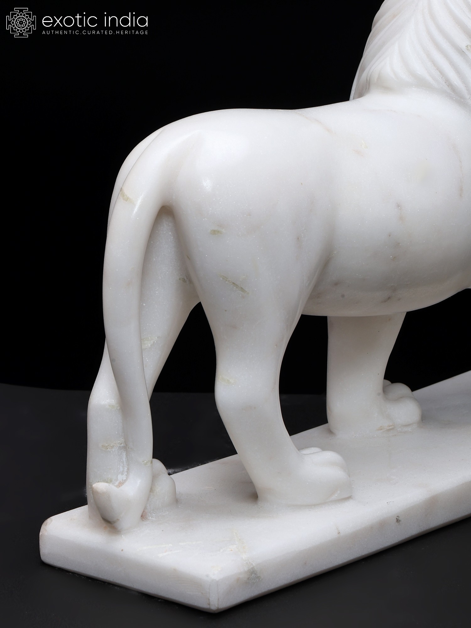 21" Pair of Lion | White Marble Sculpture | Exquisite Indian Art