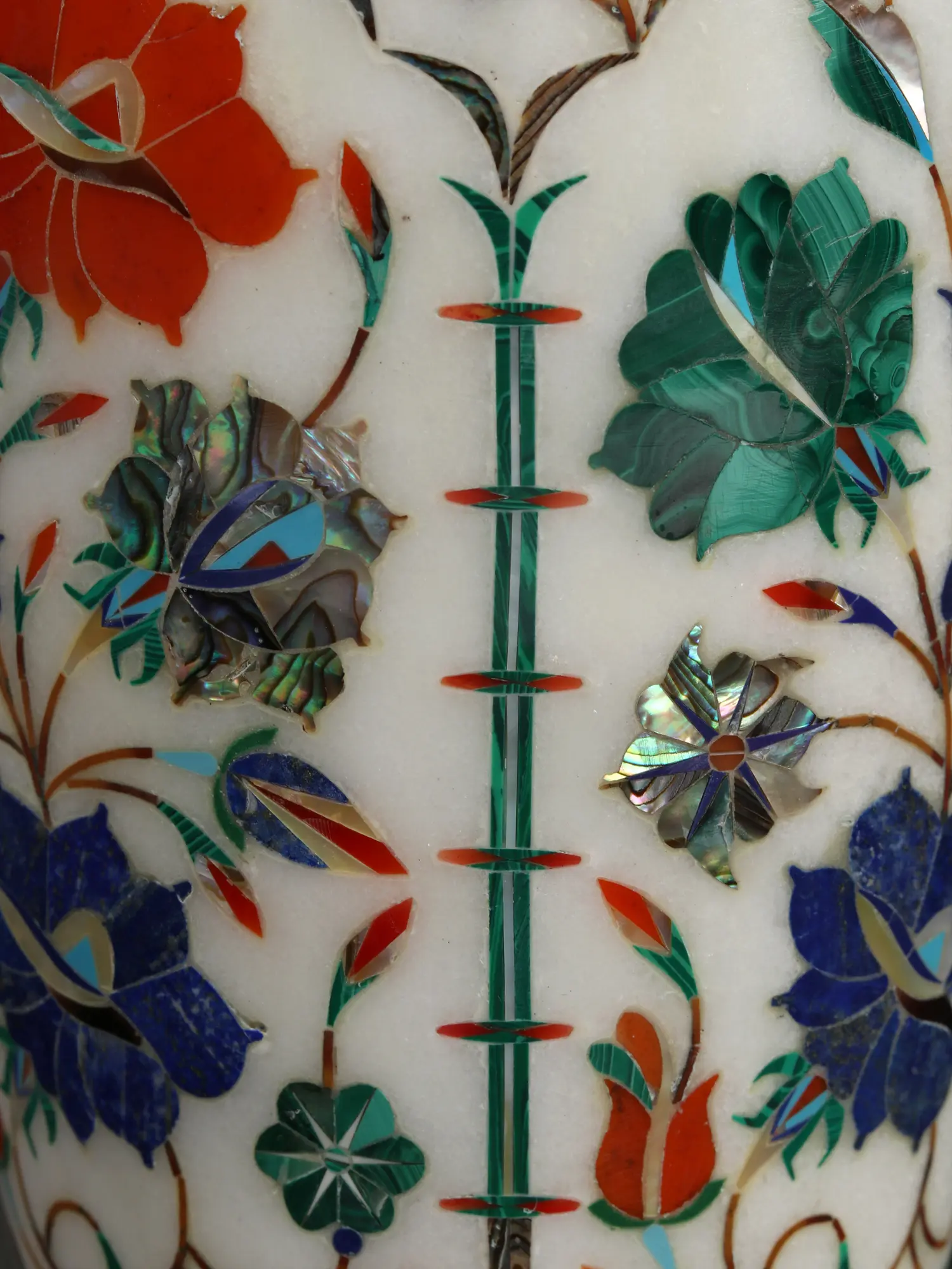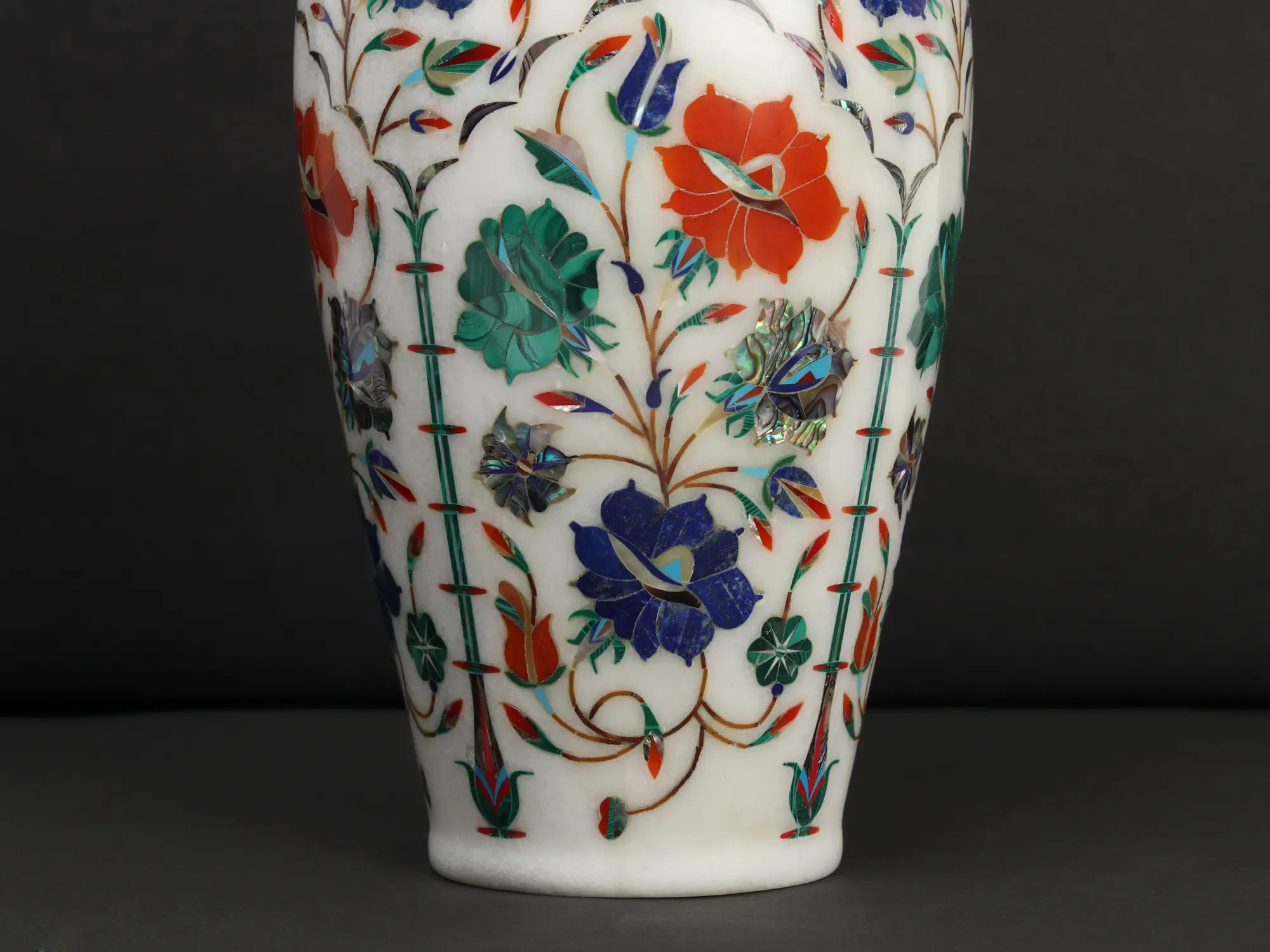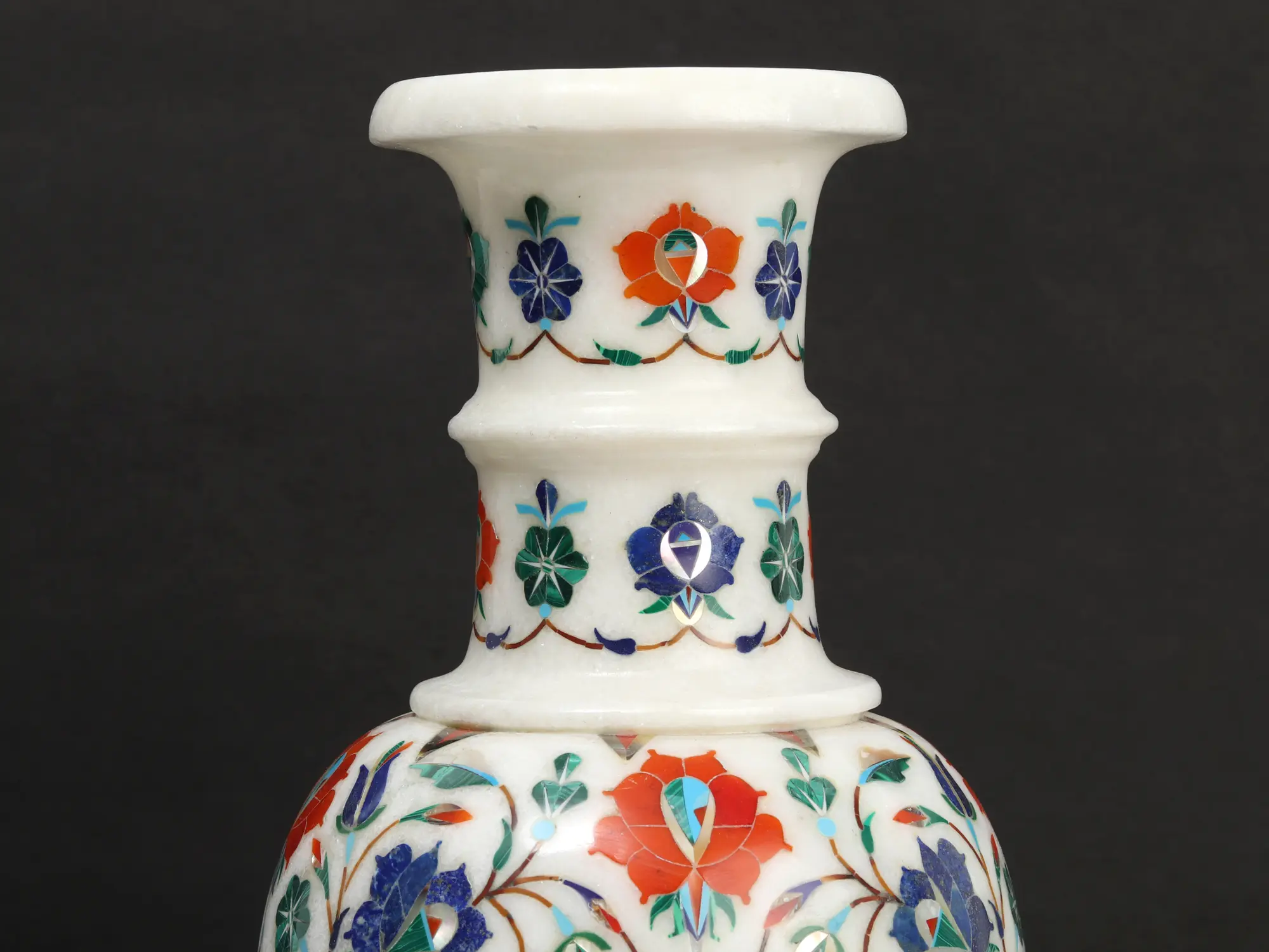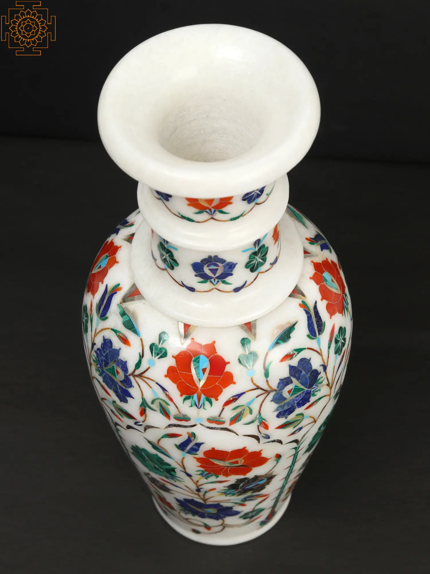 9" Marble Flower Vase with Stone Work