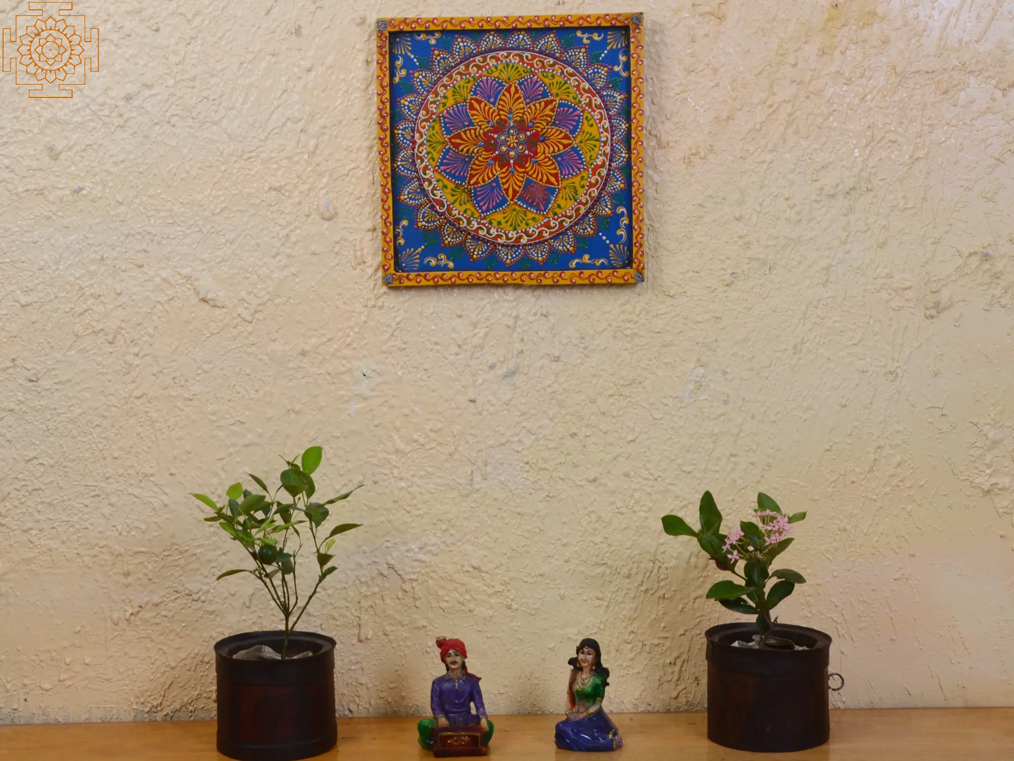 With the help of this “Multicolor Flower Mandala Art,” you can turn your living area into a world of vivid beauty. This folk art work, which is hand-painted on a rustic wooden canvas and radiates warmth and character, is a regal addition to any home decor ensemble. Decorate your walls with its elaborate pattern to bring creativity and tranquility to every nook and cranny. This wall plate, which takes its inspiration from the diverse array of ethnic traditions, is more than just ornamental; it is a representation of peace and togetherness.