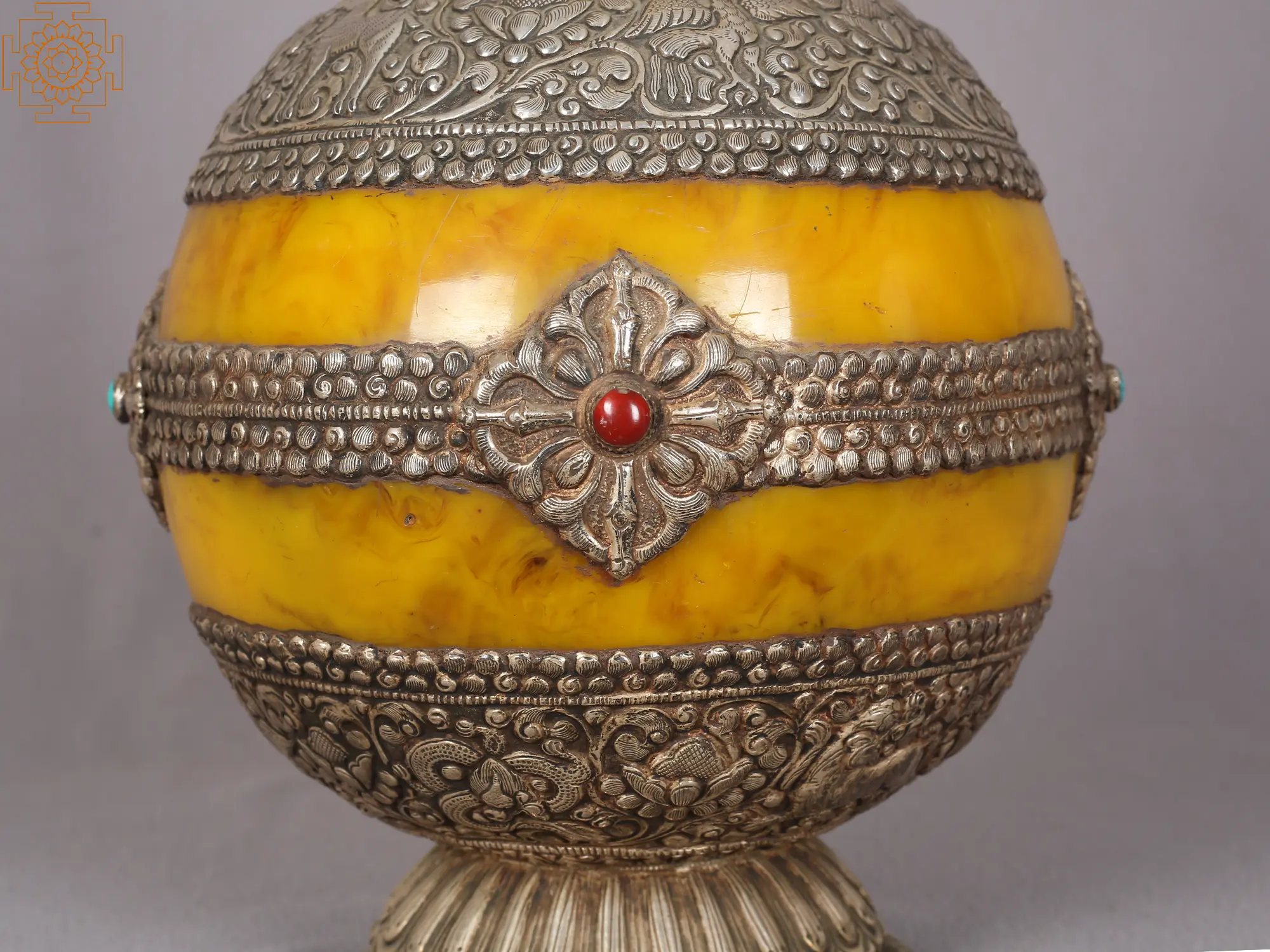 This Tibetan Buddhist Amber Dust Flower Vase is a masterwork that transcends mere practicality to become a compelling emblem of spirituality and artistic perfection. Crafted with great skill, this vase is embellished with stunning floral themes, legendary creatures, and precious stones, creating a tapestry of eternal beauty. The warm and rich amber dust hue, reminiscent of golden-orange amber tones, provides a soothing radiance to any space.