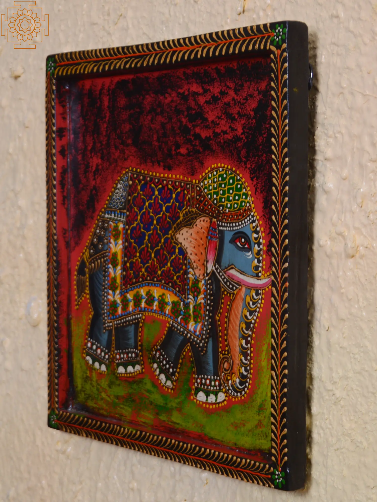A masterwork of hand-painted hardwood folk art, this enthralling traditional multicoloured-clothed elephant brings vitality to any area. With its charming and culturally rich depiction of a caparisoned elephant, this wall plate for home decor is one-of-a-kind. This artwork conveys a tale of custom and ancestry through its fine craftsmanship and vivid colours, representing artistic mastery. Decorate your walls with this wise and prosperous emblem to bring luck and wealth to your home. This amazing hardwood piece gives an exotic and regal touch to any space, sparking discussion and becoming a treasured part of your home decor collection.