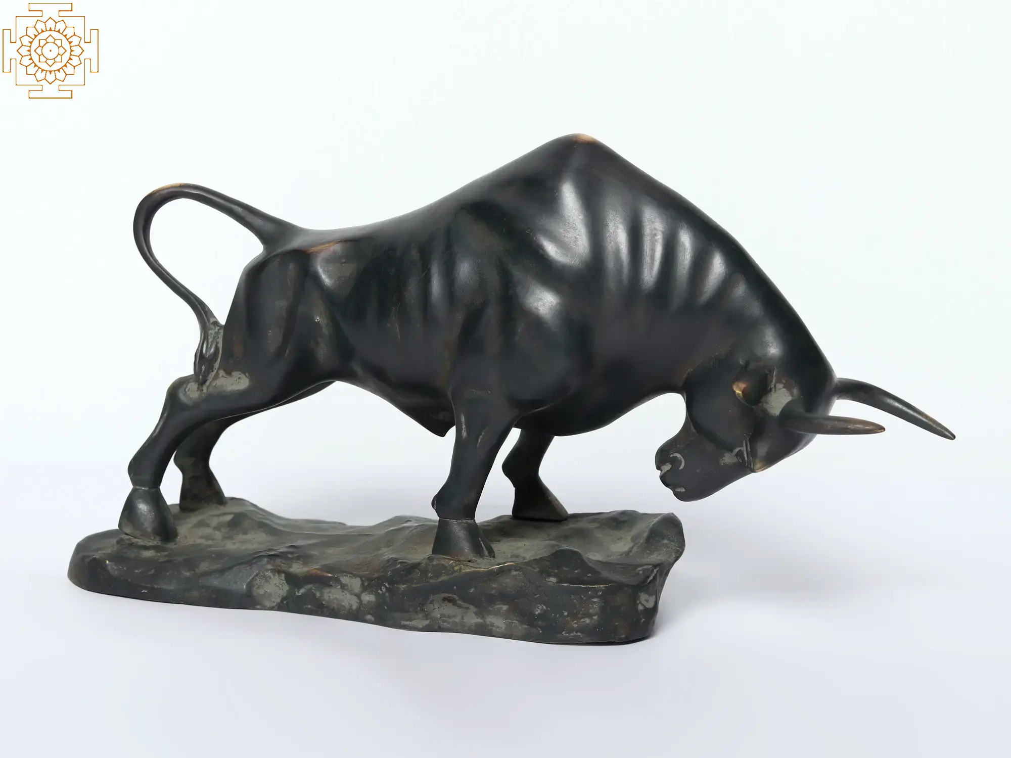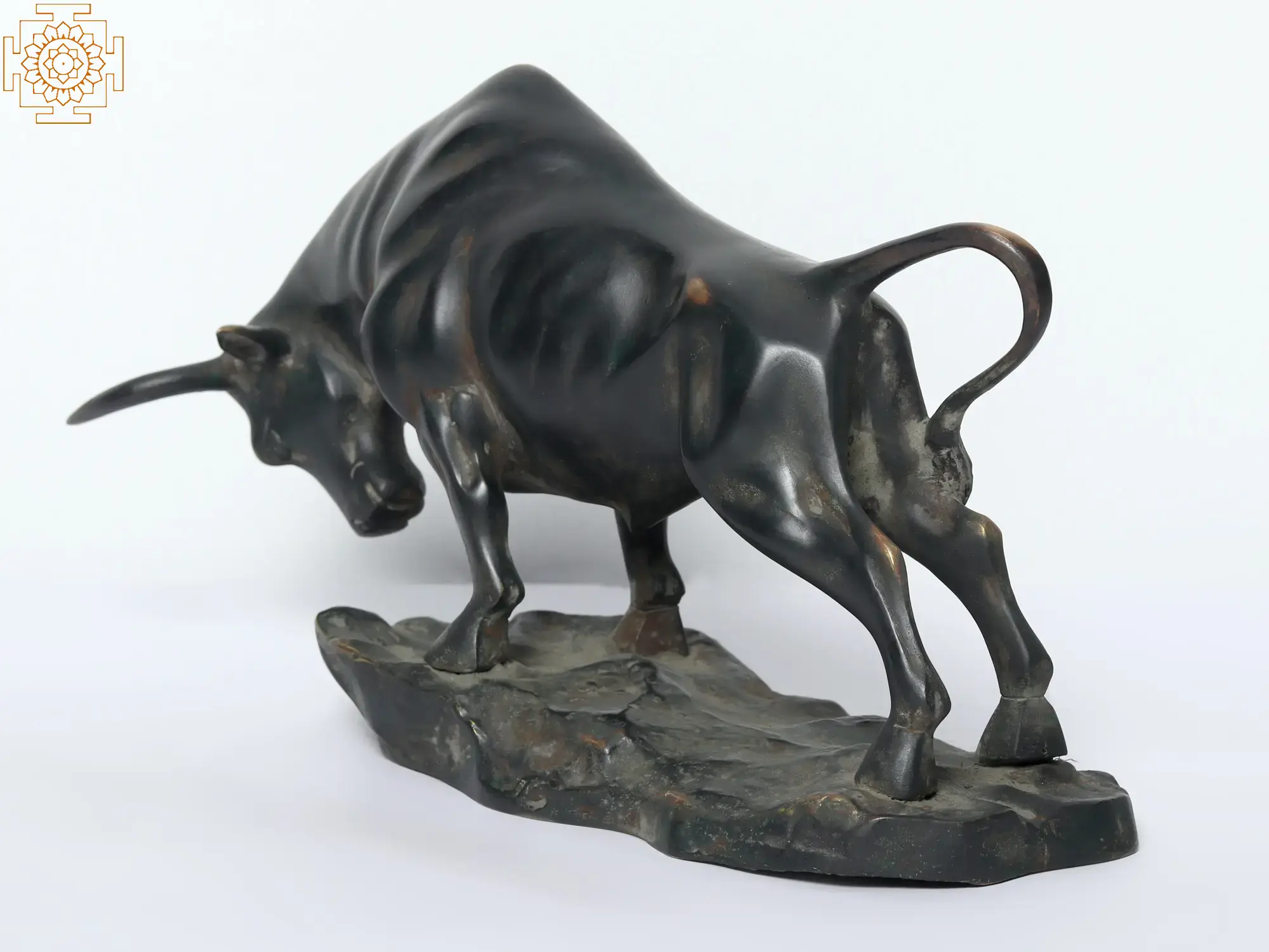 The attacking angry bull statue crafted in brass is a depiction of relentless determination and focused aggression. This piece of art signifies the significance of wholeheartedly pursuing a target with unwavering dedication. The bull, with its fierce expression and downward gaze, exudes a potent sense of intensity and readiness to charge. It serves as a reminder that true achievement often requires a combination of unwavering focus, bold action, and the courage to confront challenges head-on. The statue embodies the philosophy that success comes to those who approach their goals with fierce determination and a willingness to confront obstacles with unwavering resolve.