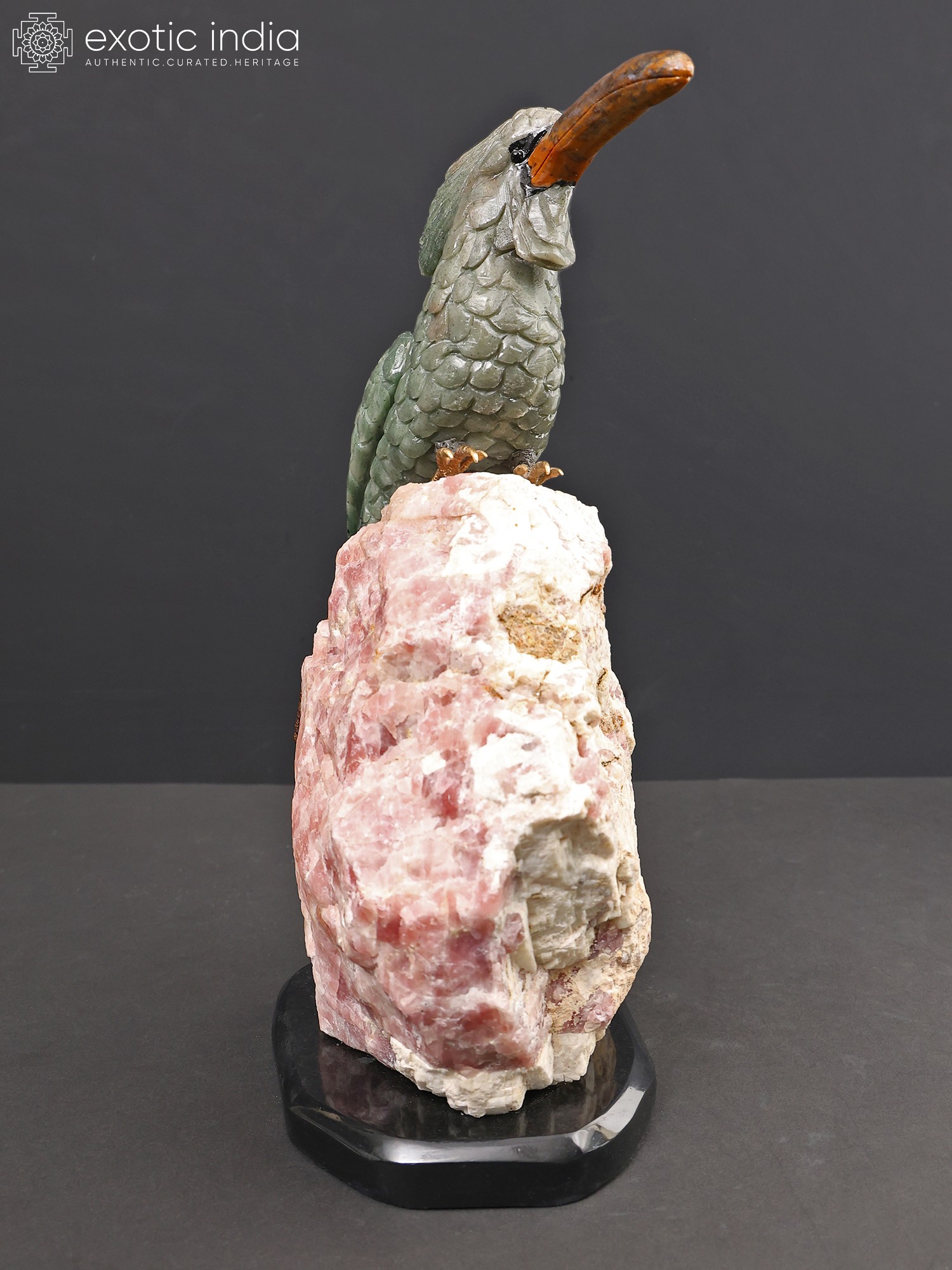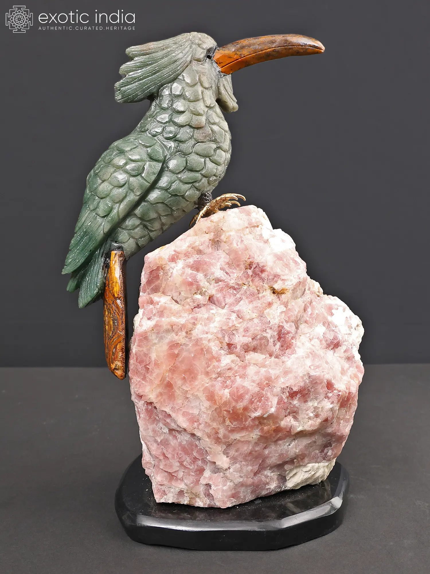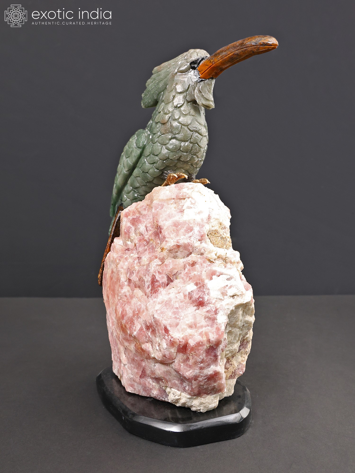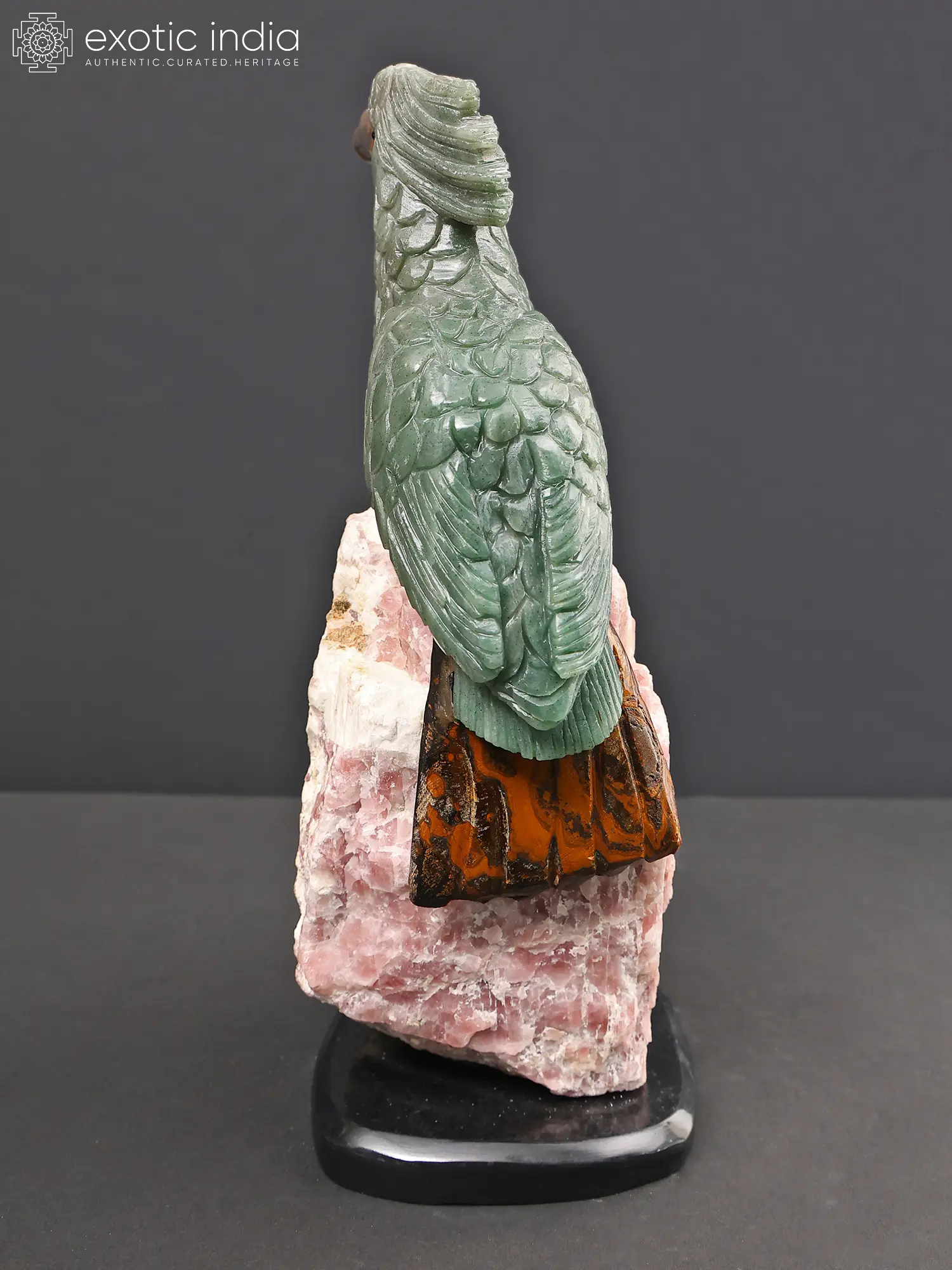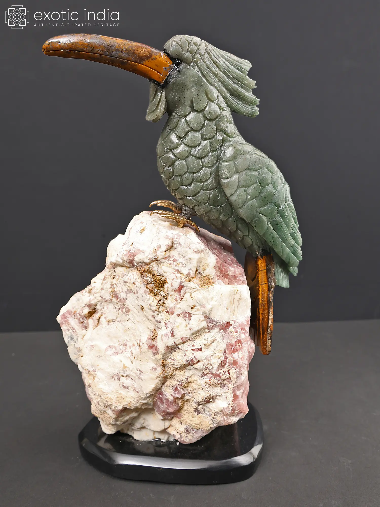 16" Gemstone Statue Of Parrot Bird Hand Carved | Home Decor Sculpture