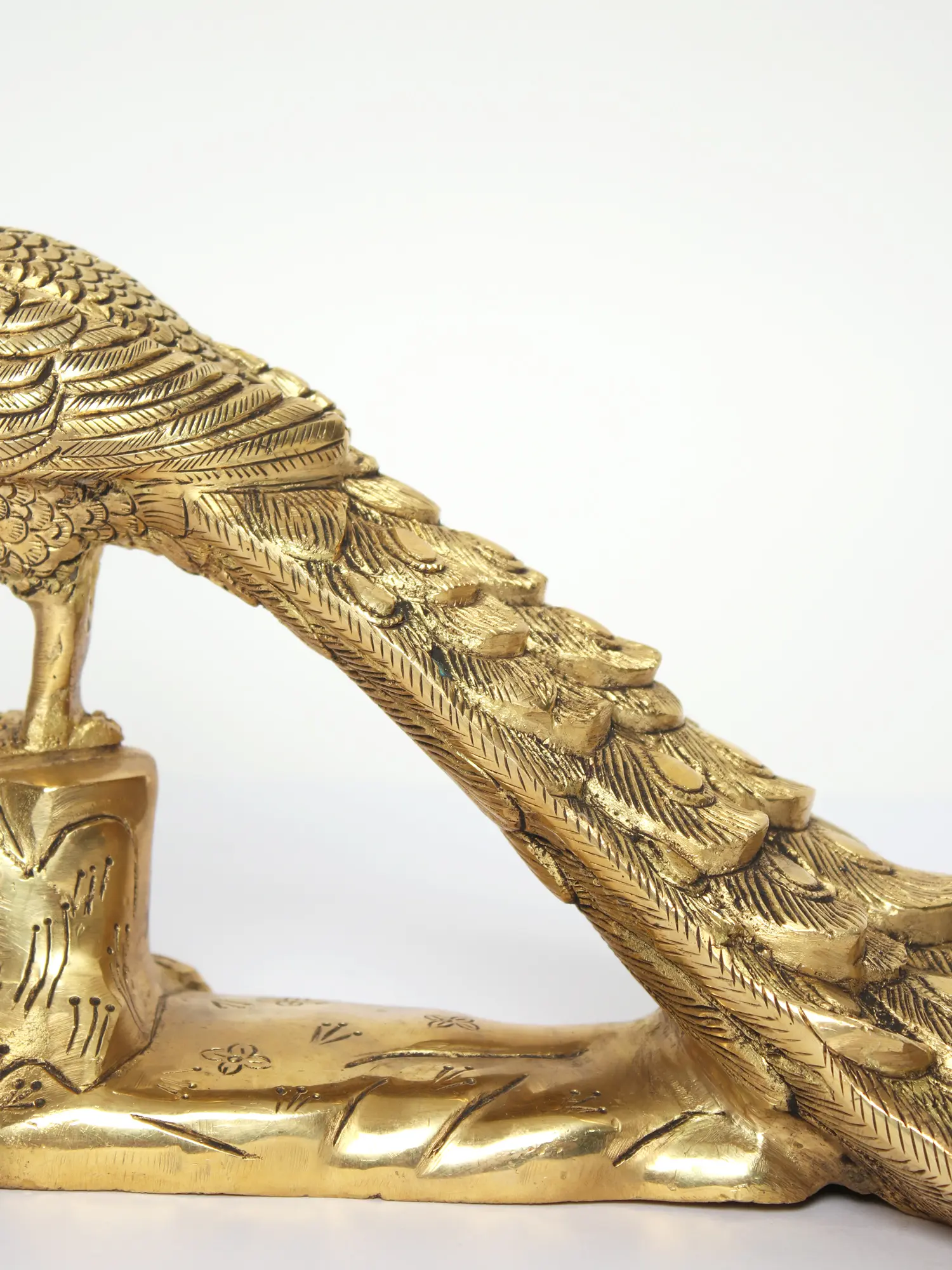 Peacock has always been associated with opulence and wealth. Millions of depictions include the green and blue hues of the animal feather. Many gods and goddesses use peacock feathers as part of their ornamnetation. The animal is also associated with Lord Murugan, Lord Ganesha, and Devi Saraswati. It is considered auspicious by worshippers of these deities to keep a peacock statue at home. This brass figure is the ideal response to these sentiments. This statue, which depicts a lovely peacock with arranged feathers, combines opulence with holiness in one place.