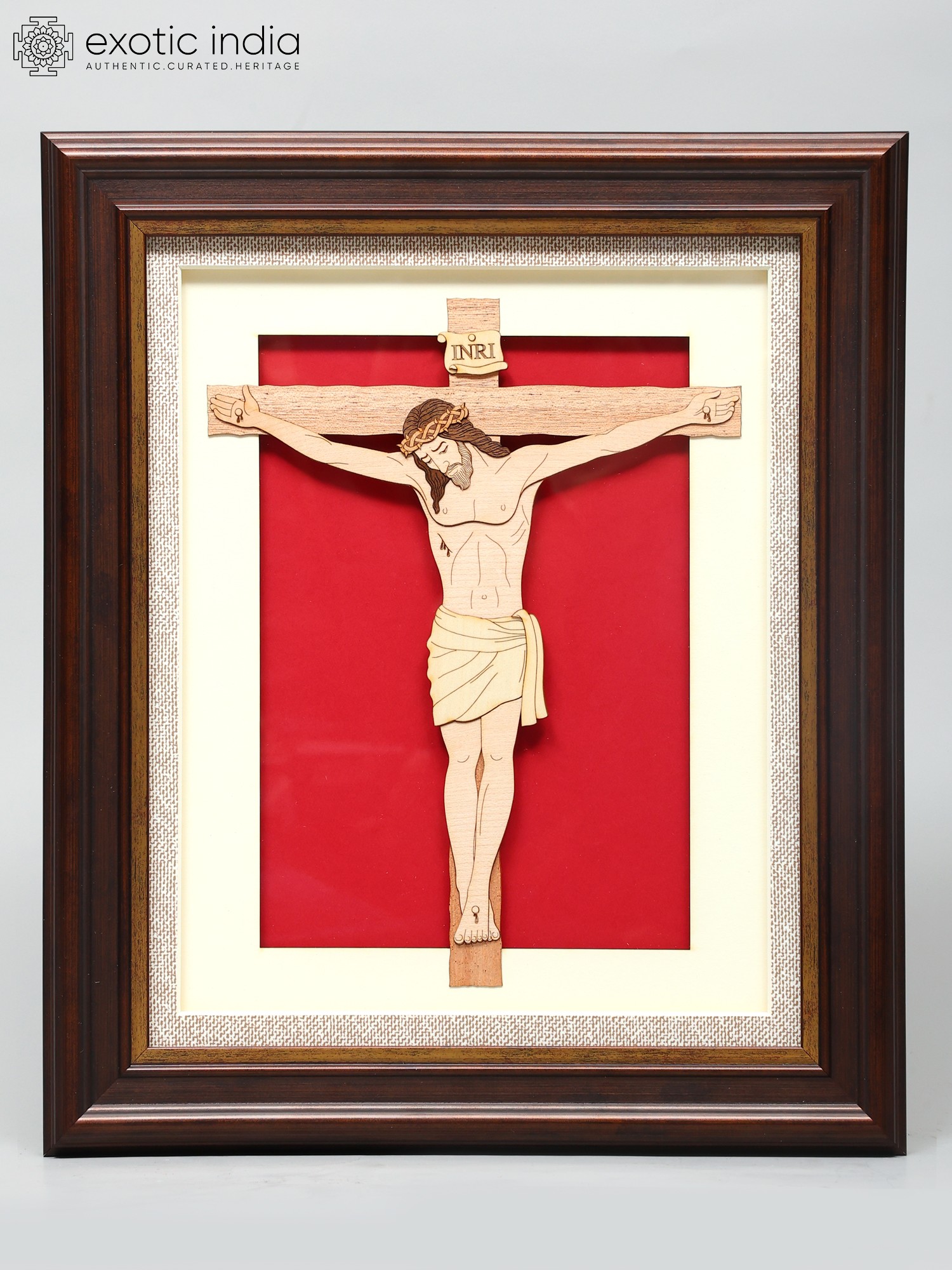 13" Crucifix (Jesus on Cross) | Wood Carved Frame | Wall Hanging