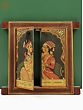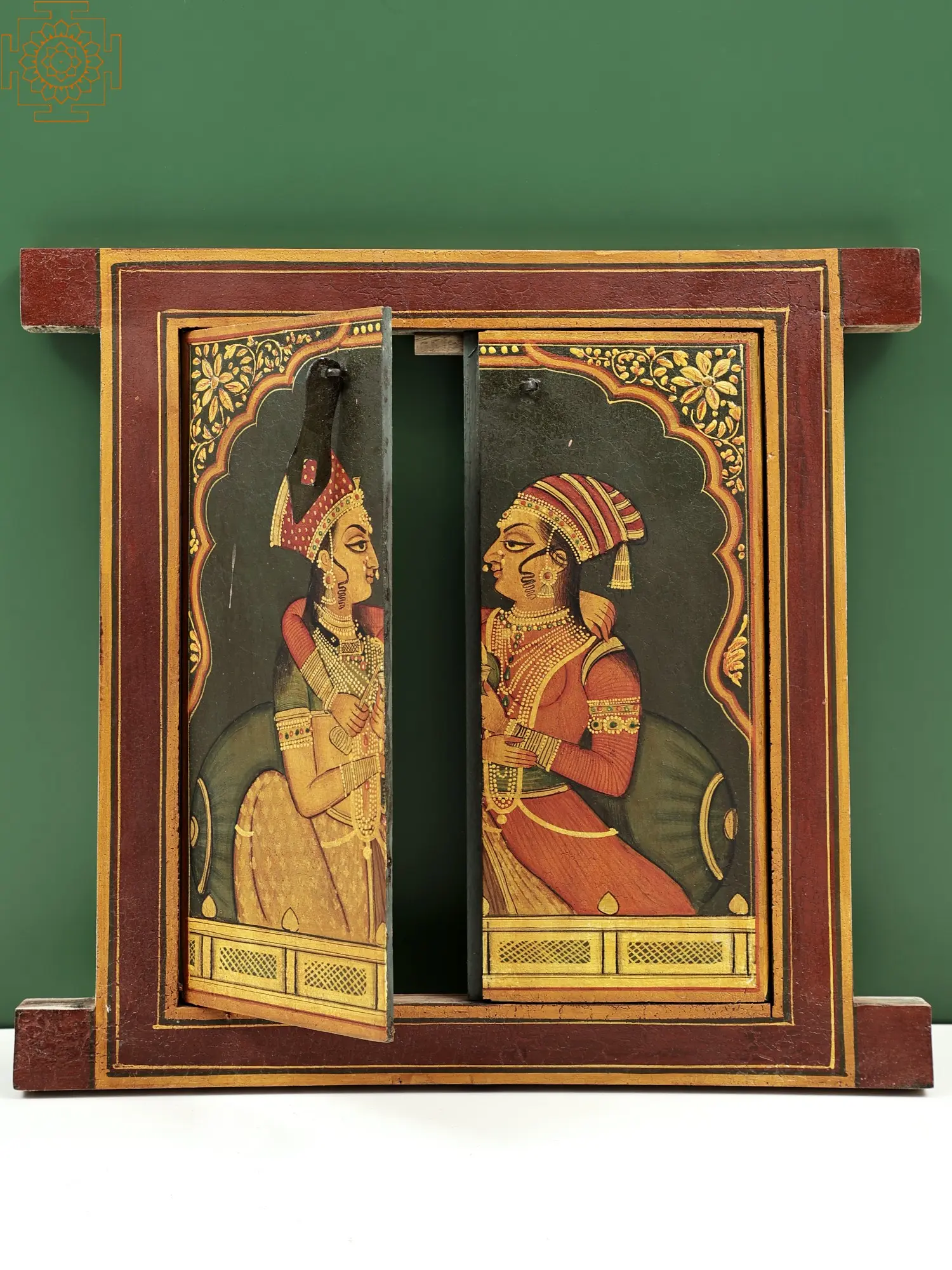 Hand-painted jharokha depicts King and Queen immersing themselves in their passionate love. According to legends, a Rajasthani ruler became so infatuated with his youngest wife that he began to overlook state concerns, which had disastrous repercussions. This painting depicts an encounter between two lovers, immersed in love, in their royal courtyard, who are looking into each other's eyes. Their reunion after their testing time is evident against the landscape, swayed into the air as a sign of their ardent love.