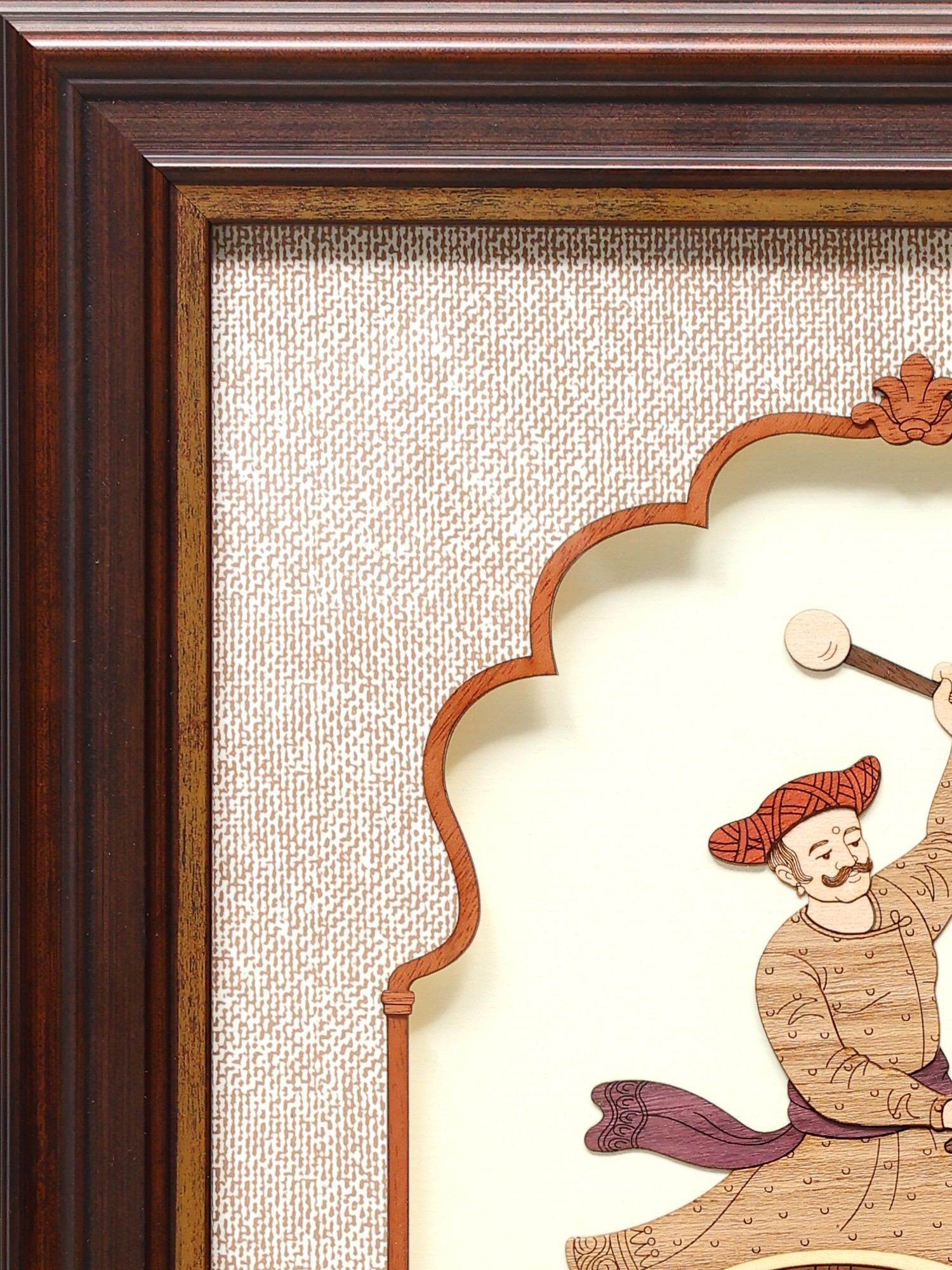 Royal King on Elephant | Wood Carved Frame | Wall Hanging