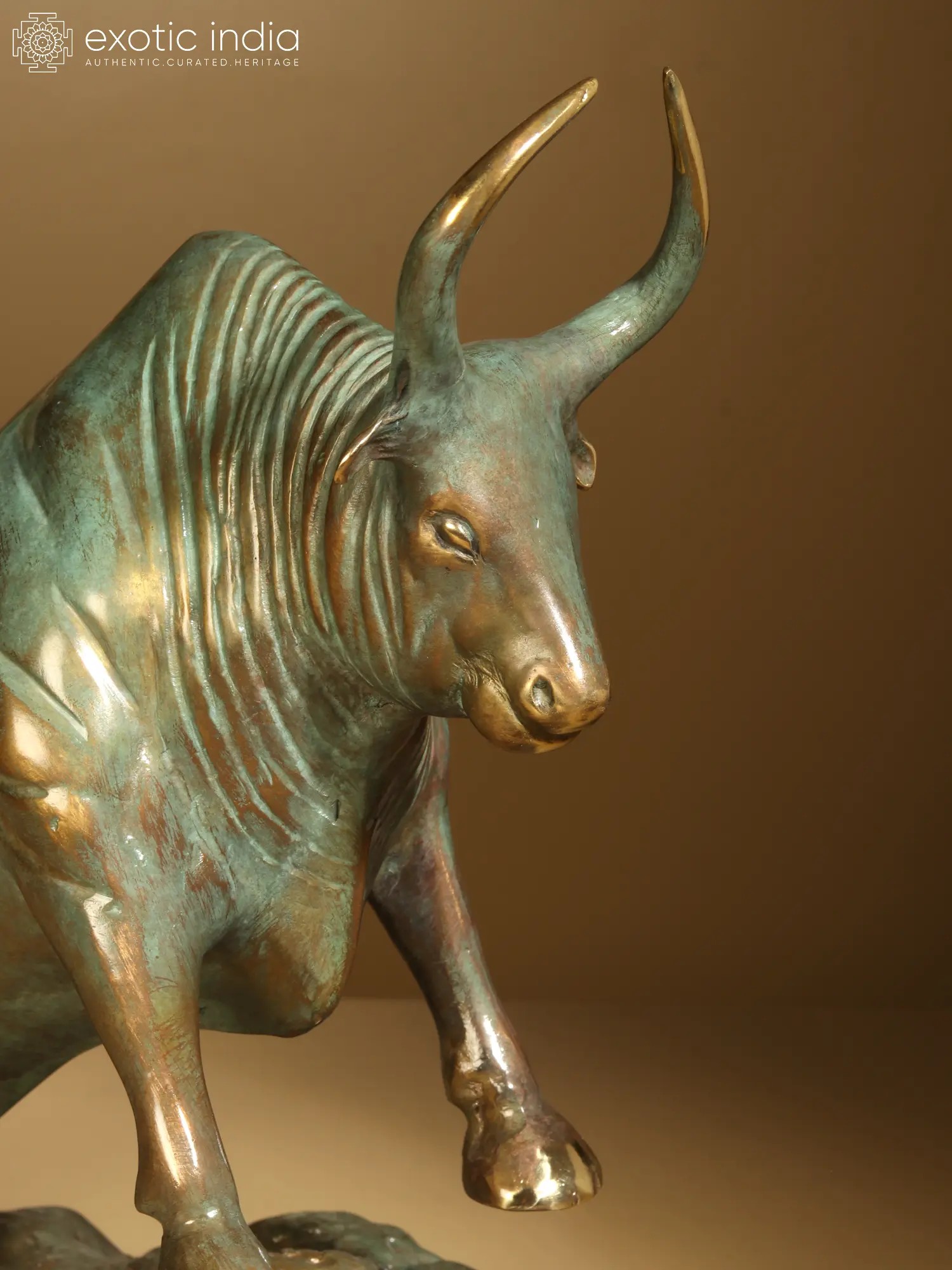 This beautiful brass bull statue is more than just a decorative piece; it's a conversation starter, a symbol of strength and prosperity, and a captivating piece of art that brings a touch of the exotic to your living space. It is a testament to the rich artistic heritage and craftsmanship of our artisans. Its substantial size and weight make a significant visual statement, adding character and personality to your home. The combination of the captivating patina and intricate detailing will enhance any room, creating a unique ambiance and fostering a sense of appreciation for the artistry involved in its creation. Let this majestic bull bring a touch of India's rich culture and artistic heritage into your home.