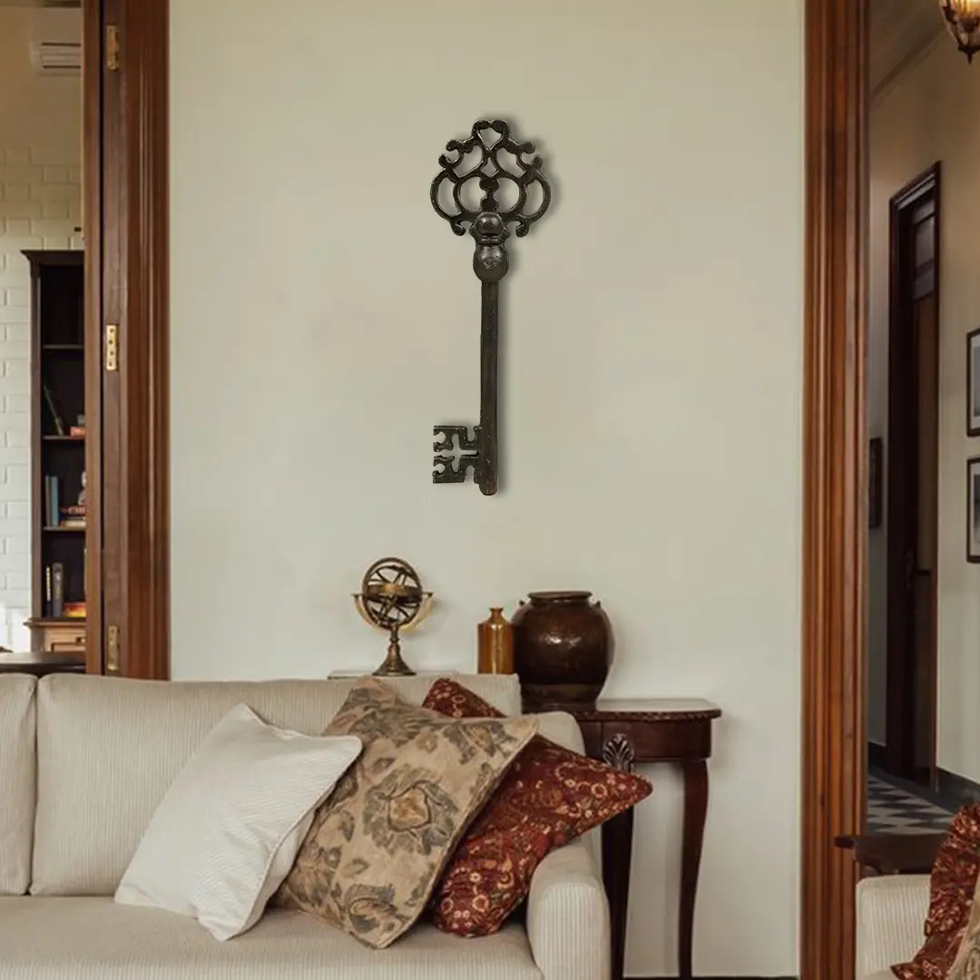“A very little key will open a very heavy door.”- Charles Dickens. The ability of a key and its symbolism in human culture as a representative of solutions to big hurdles and hope for an answer to a troubling question is deeply rooted in our imagination. Drawing on the profound symbolism of this outwardly mundane object, this handmade iron key, styled like a pair for an archaic and mysterious lock offers lovers of outstandingly unique home decor, a perfect addition to their space.