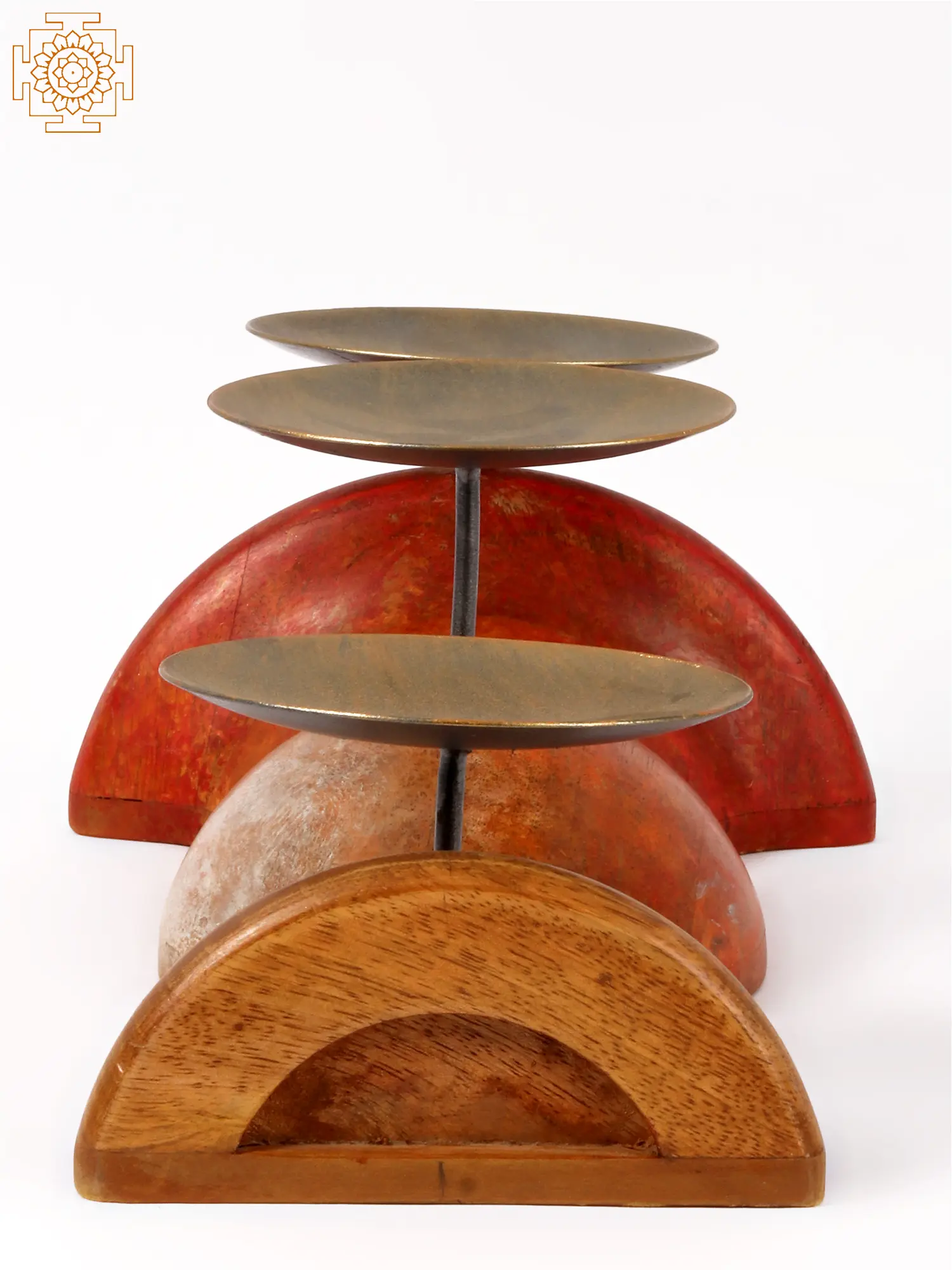 17" Brass Lotus Design Three Cups Candle Holder with Stand