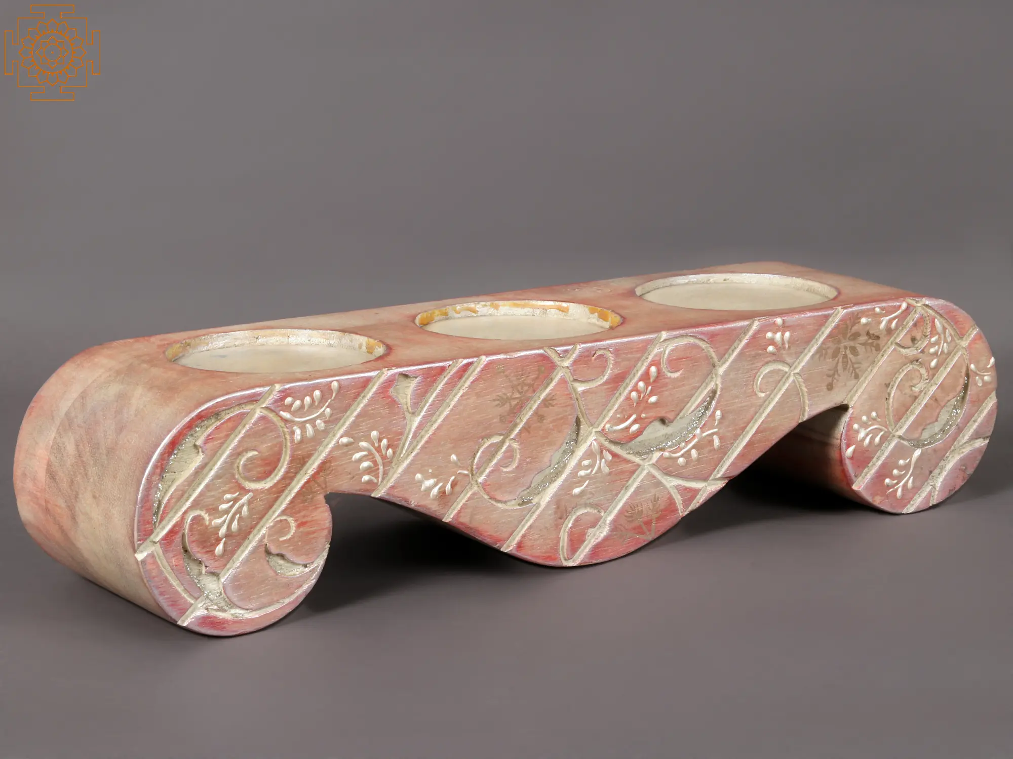 17" Brass Lotus Design Three Cups Candle Holder with Stand
