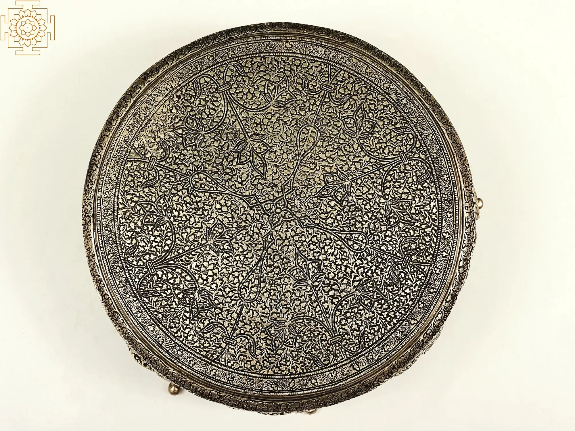 This low brass stool transcends its physical form, becoming a sacred space where spiritual rituals unfold. Adorned with delicate carvings, it serves as an altar for deity offerings, a tangible connection to the Almighty.