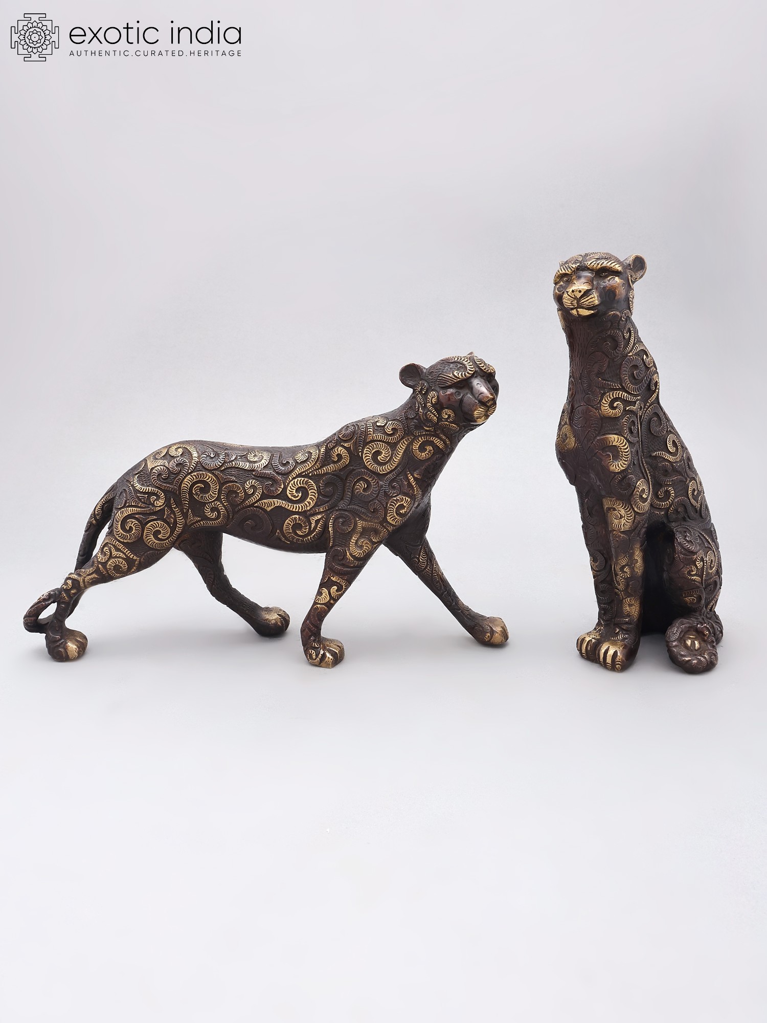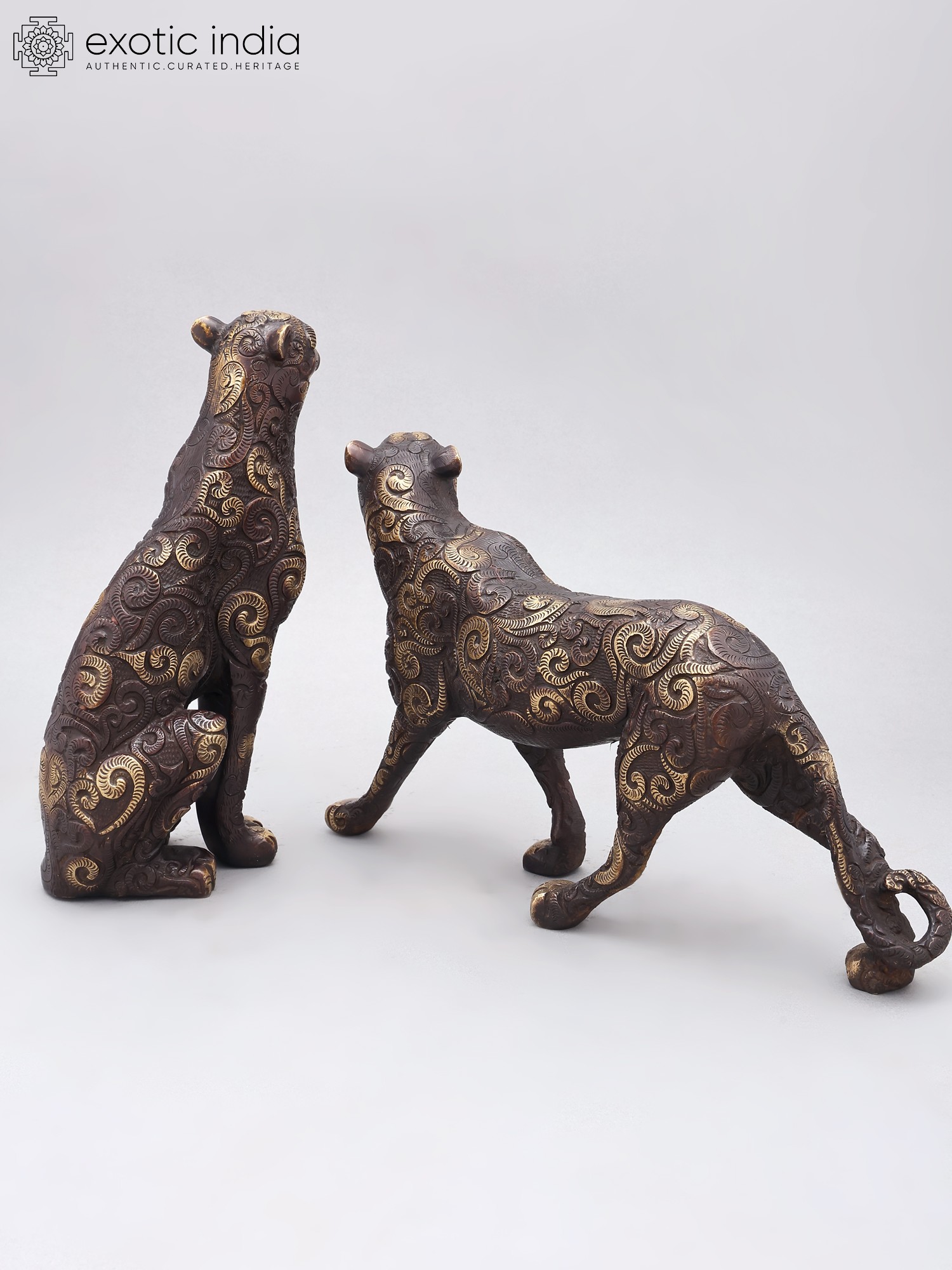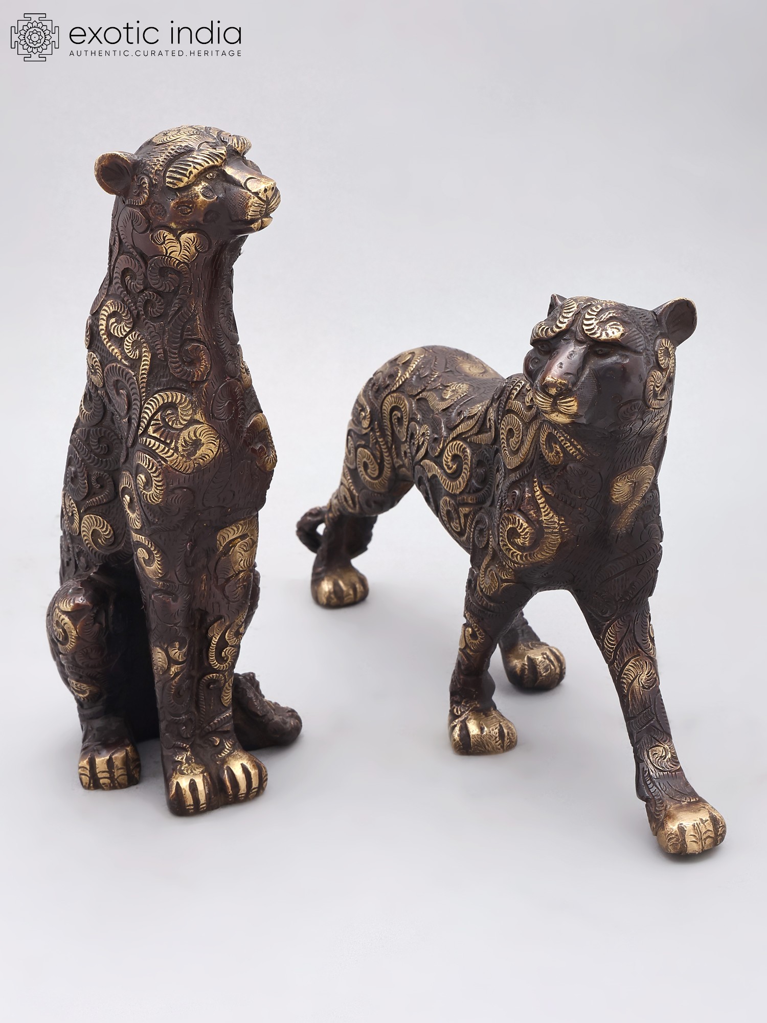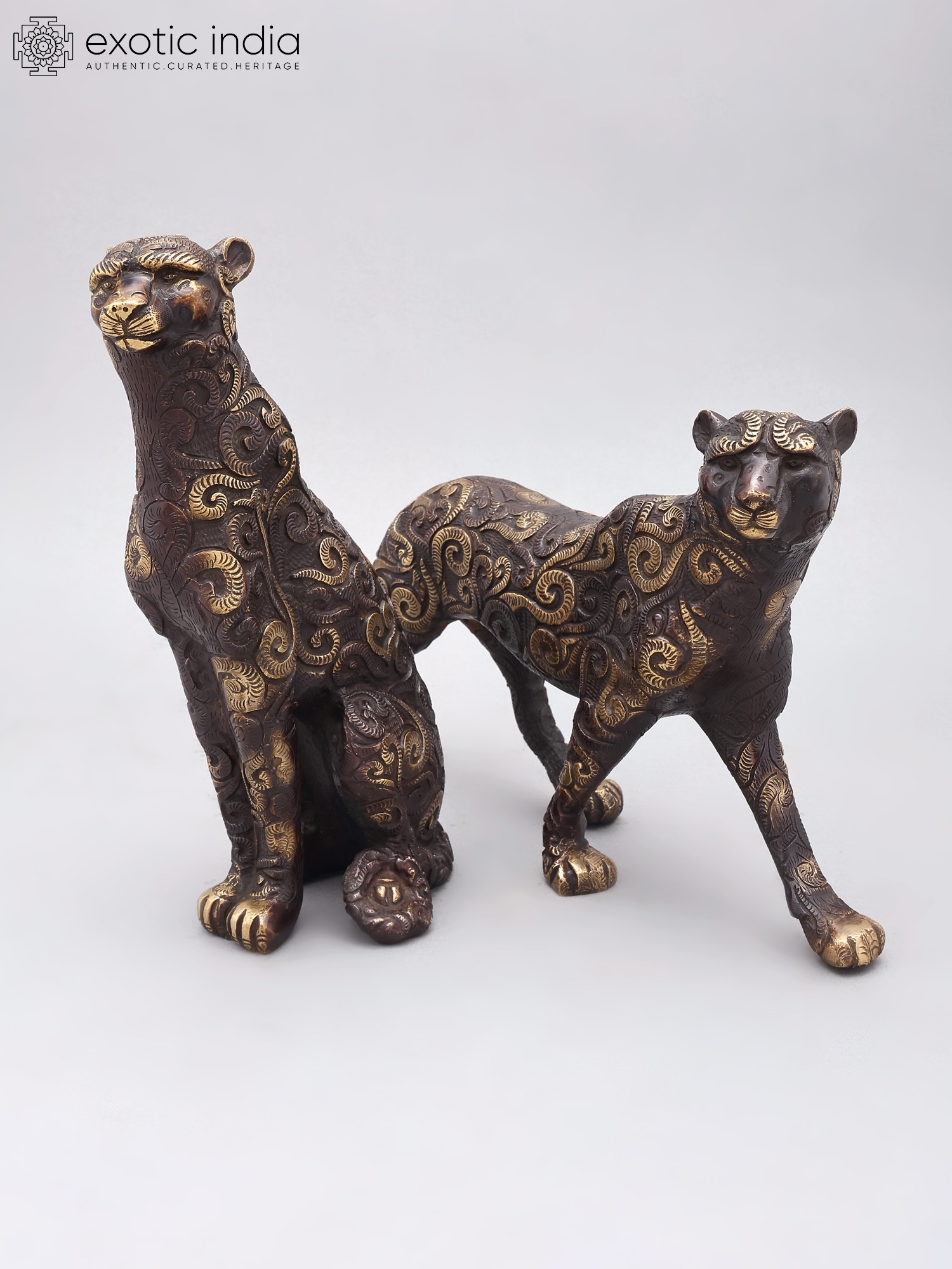 Set of two majestic tiger figurines, crafted from durable brass.