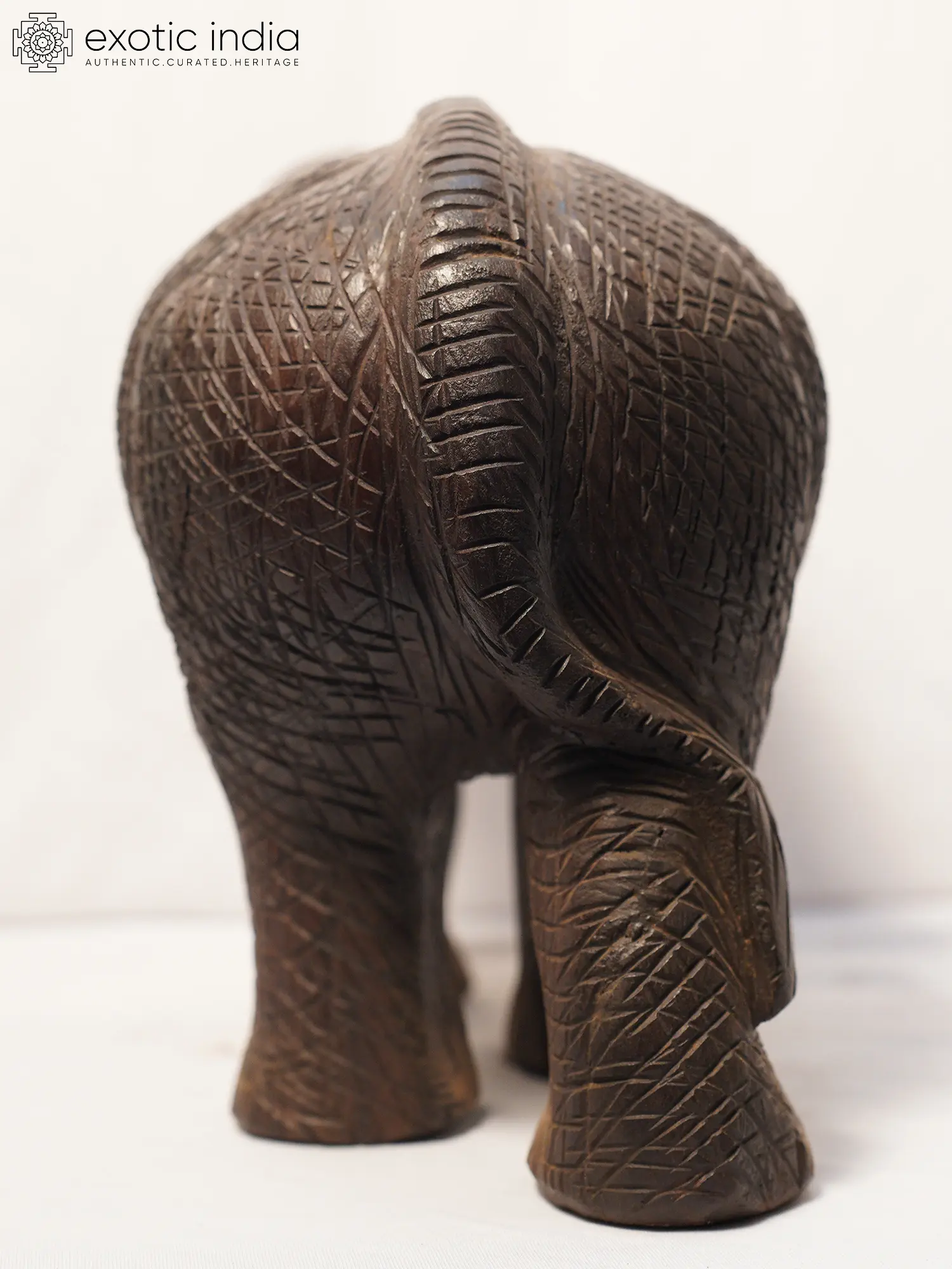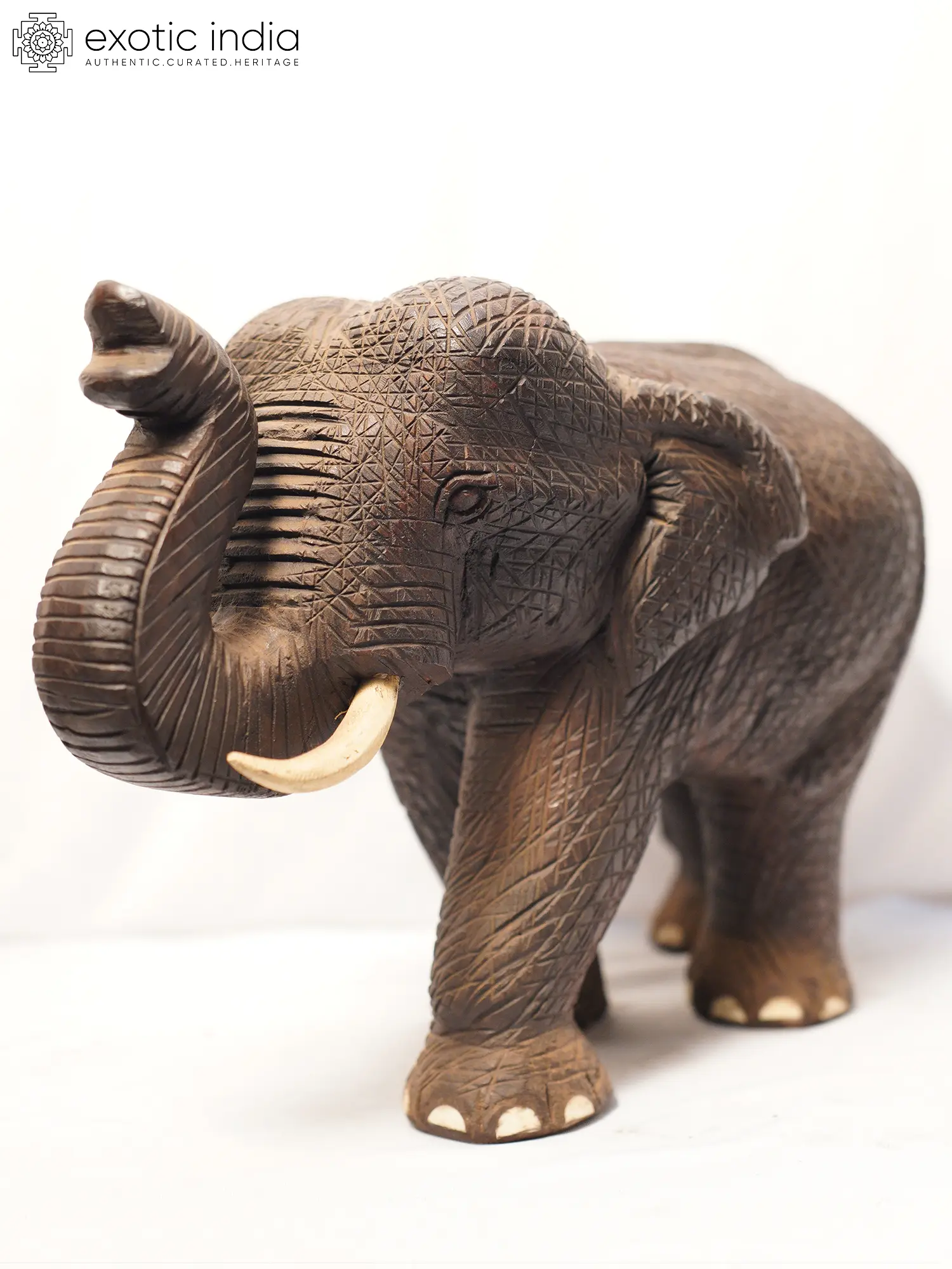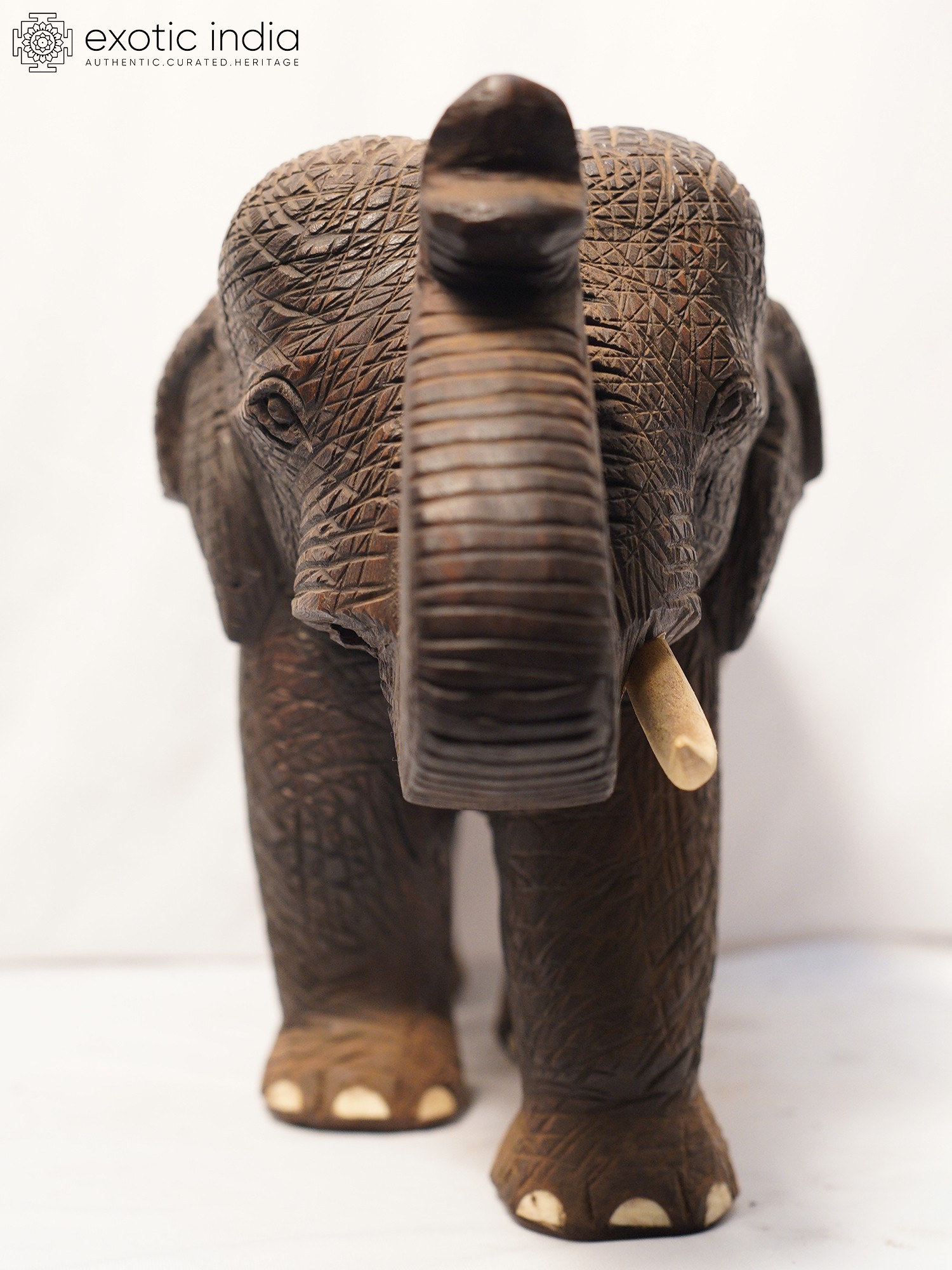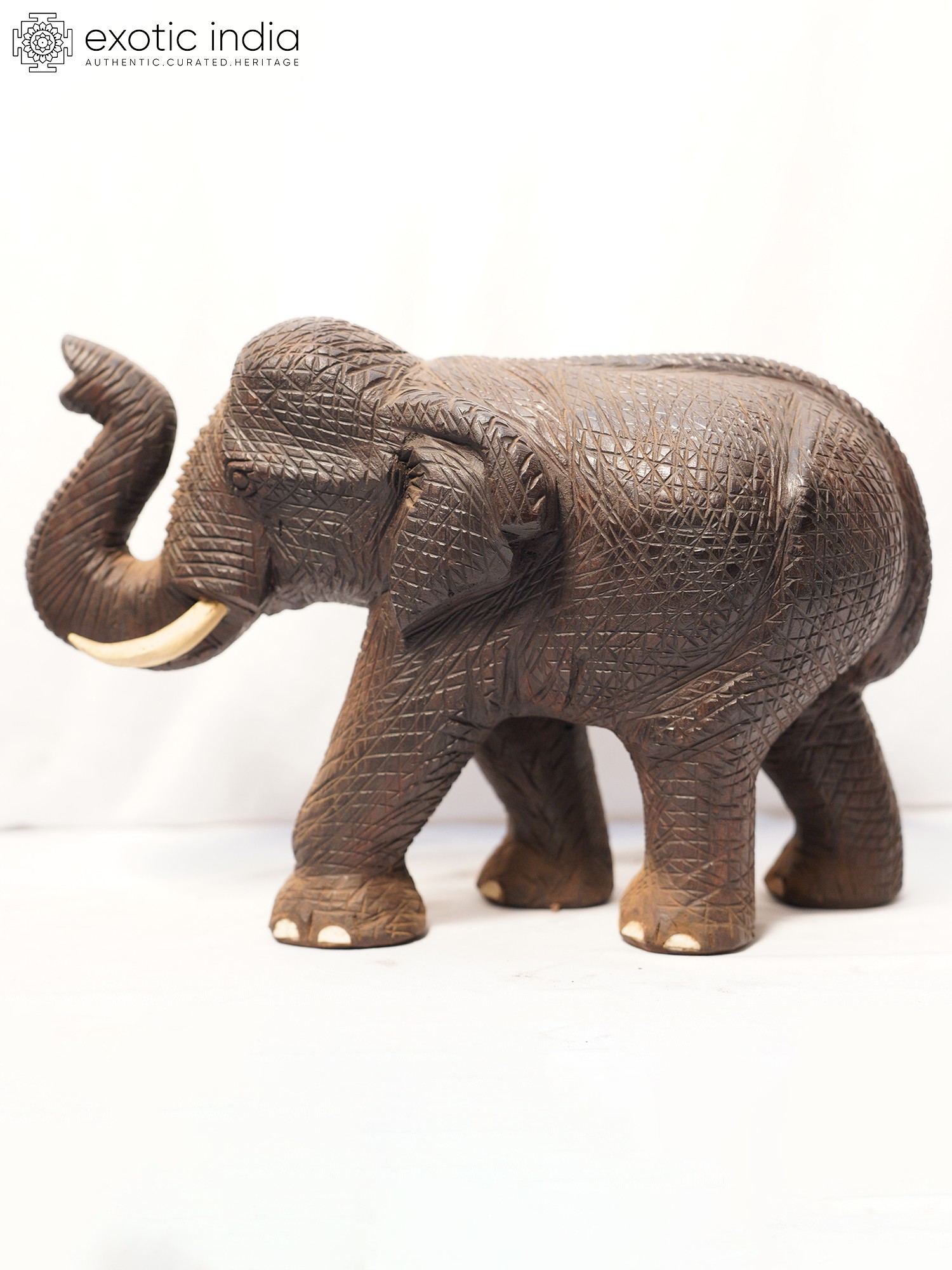 Every curve and contour of this magnificent elephant statue has been meticulously carved by skilled artisans. The attention to detail is evident in the intricate patterns etched across its body, showcasing the remarkable talent and dedication involved in its creation. The rich hues of the wood further enhance the piece's warmth and depth, making it a visually striking addition to your decor. The upraised trunk is a traditional symbol of good luck, adding an auspicious touch to this already remarkable work of art.