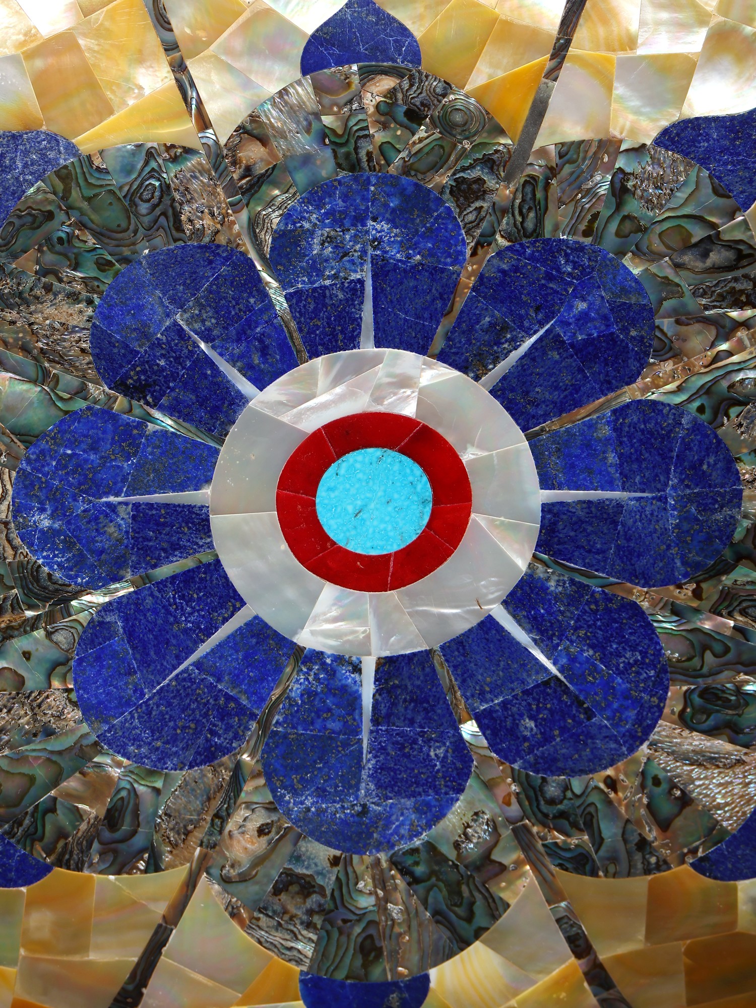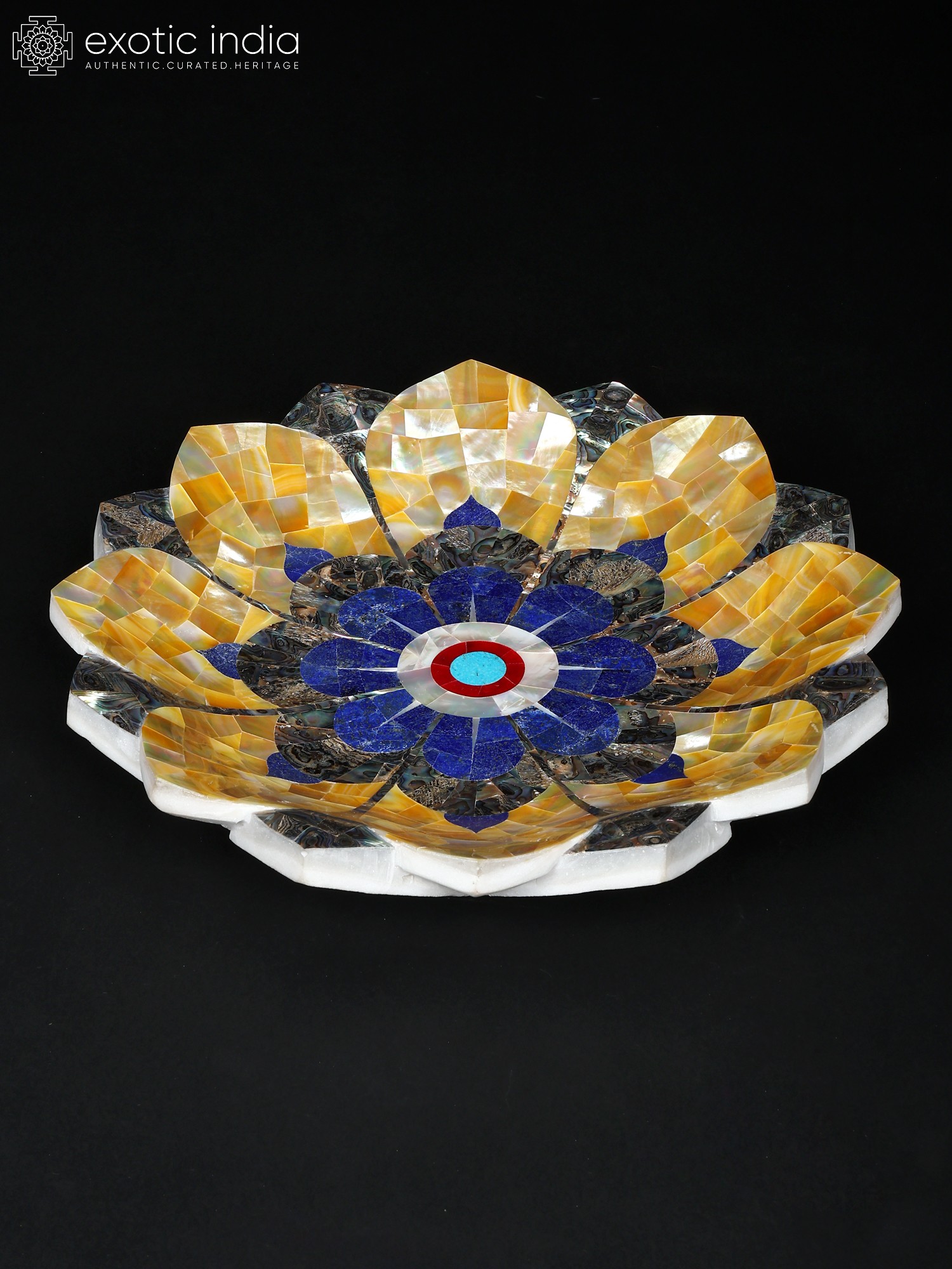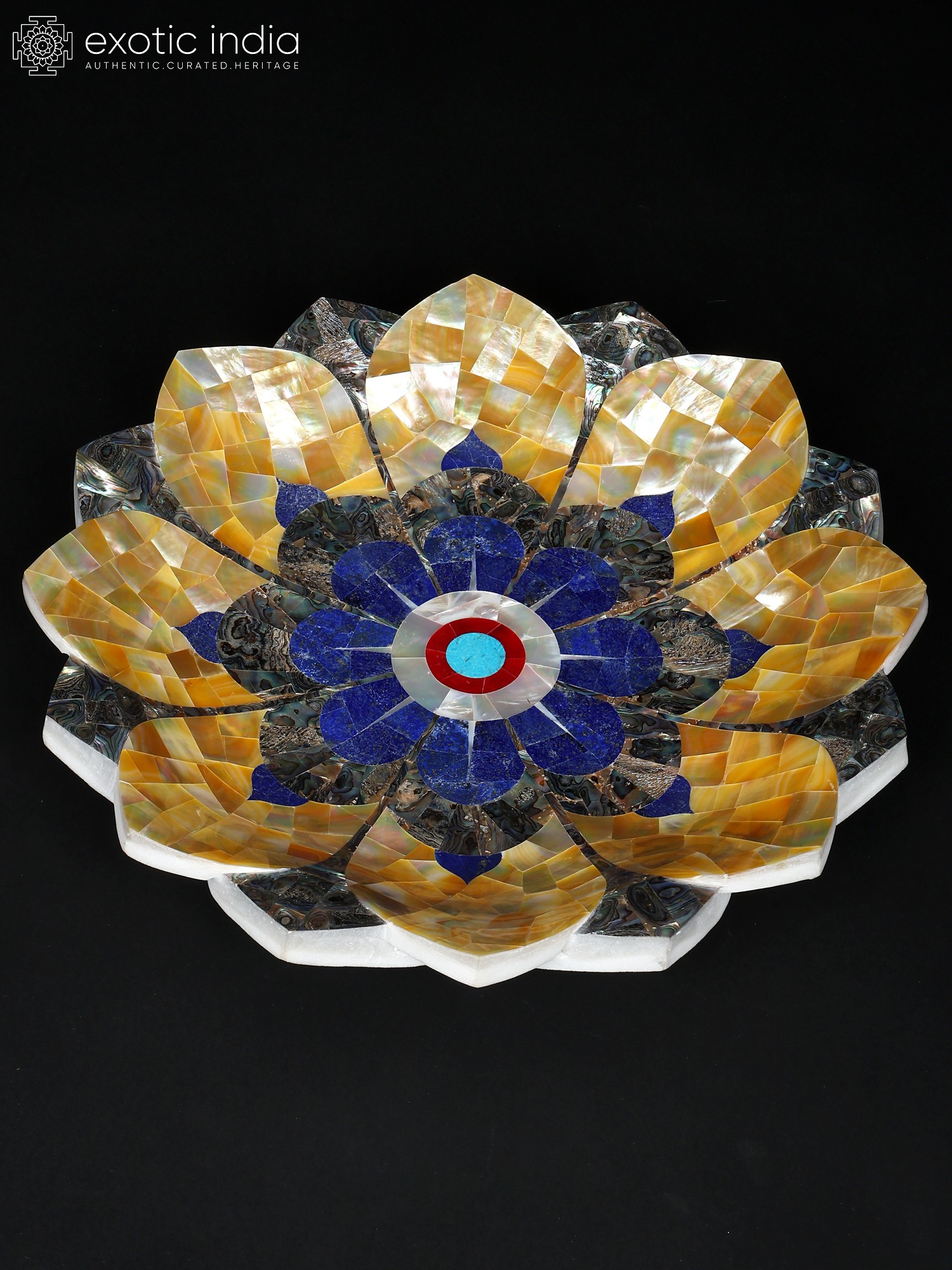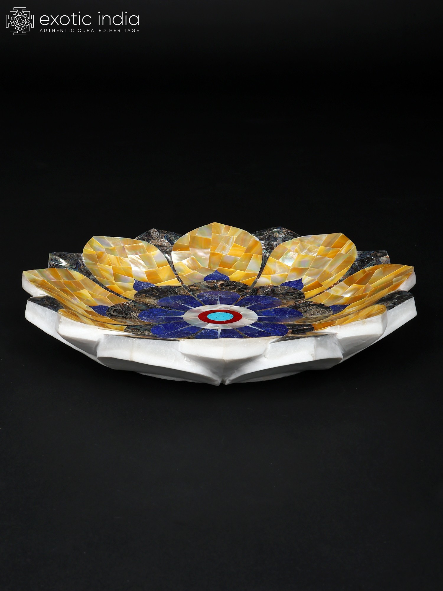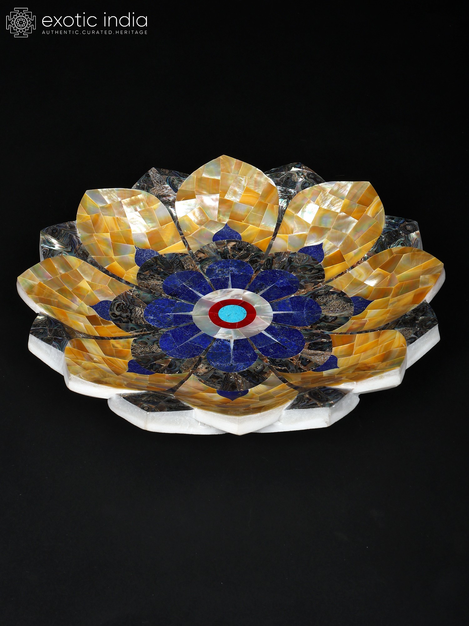 14" Handmade Lotus Shape Decorative Urli with Semi-Precious Stone Inlay