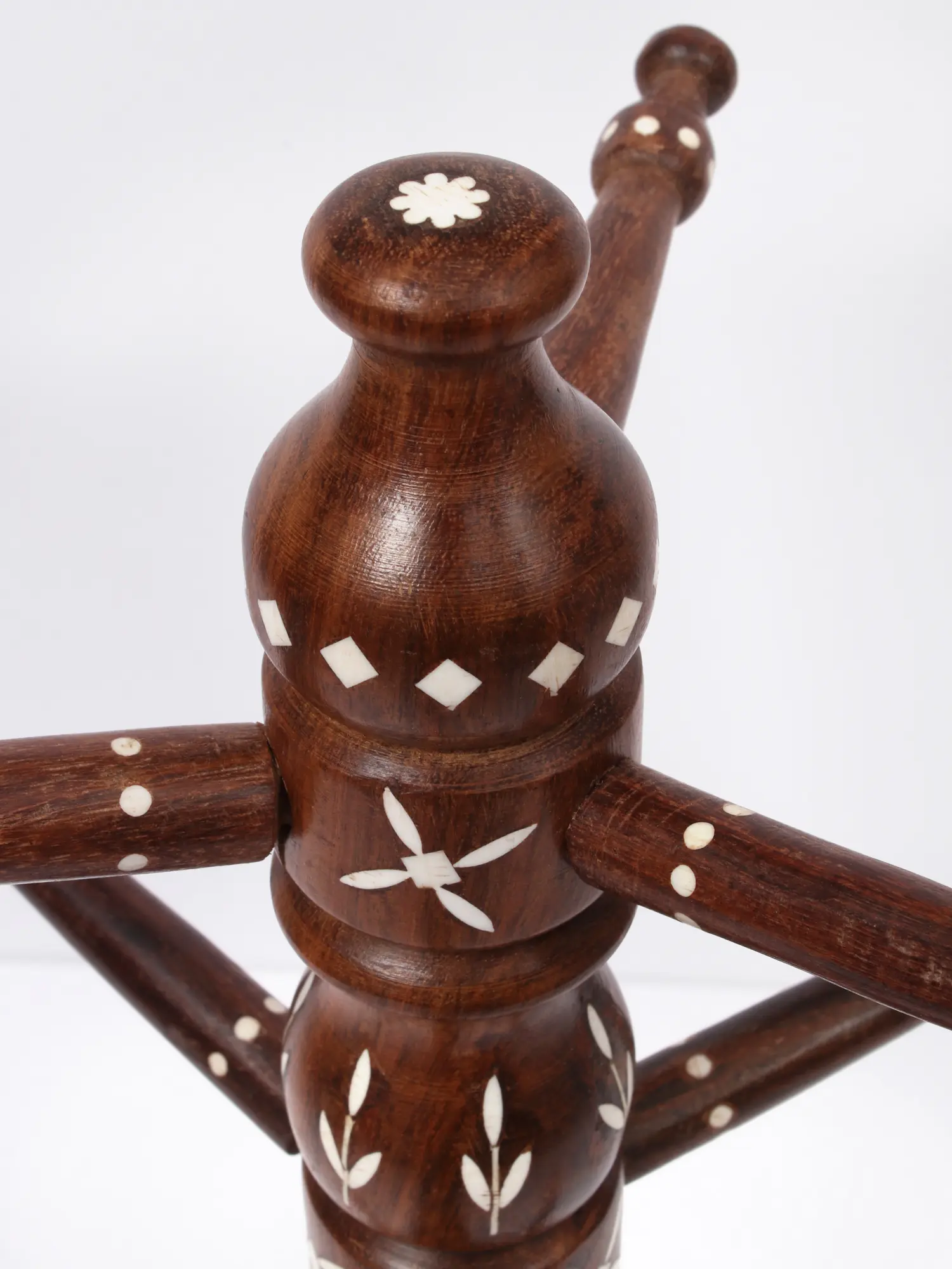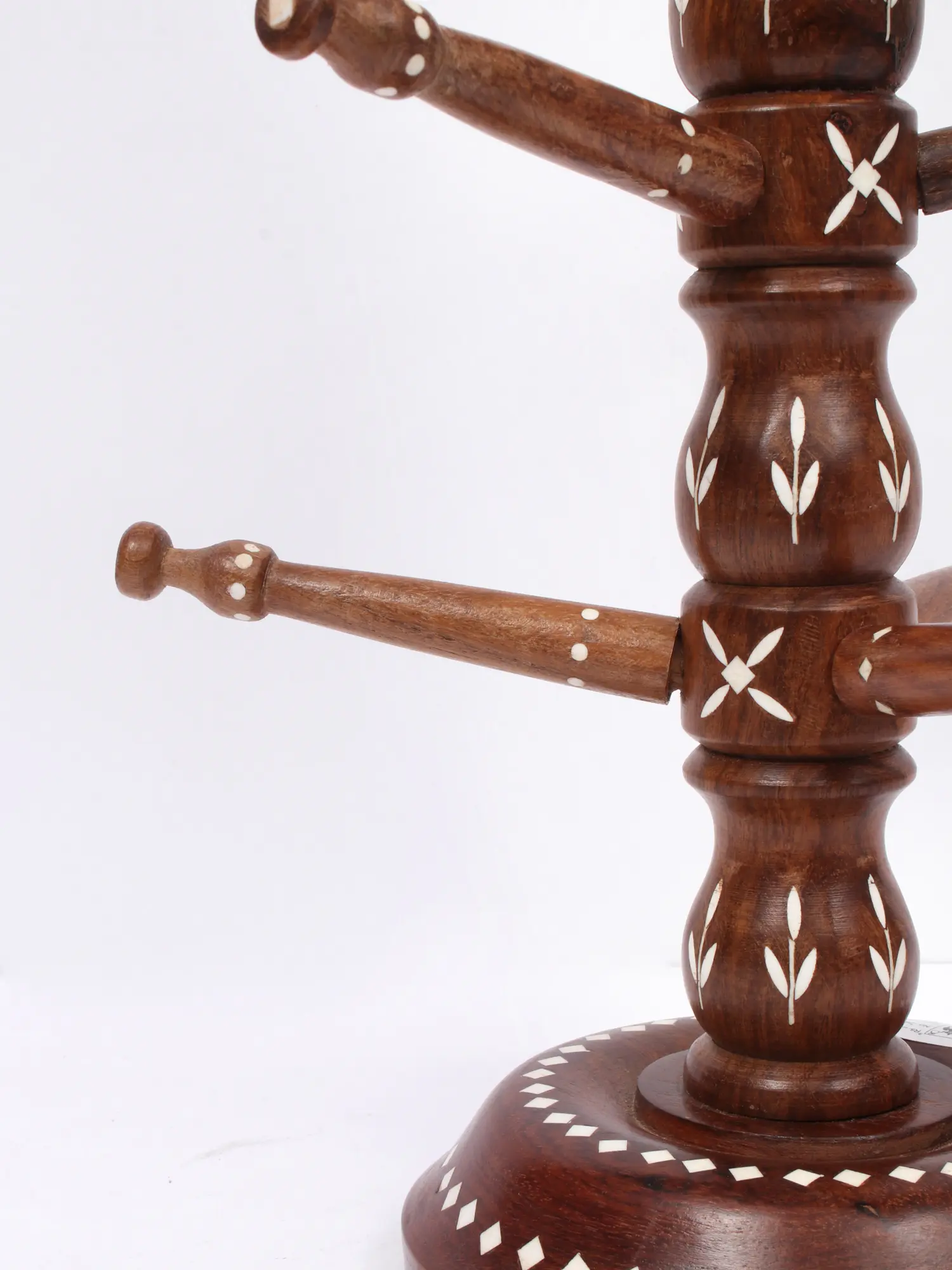 Crafted from teakwood with white wood inlay, this stand not only showcases exquisite craftsmanship but also serves as a beautiful decor piece. Practical and culturally resonant, it stands as both a functional organizer and a symbol of timeless elegance in Indian women's adornment.