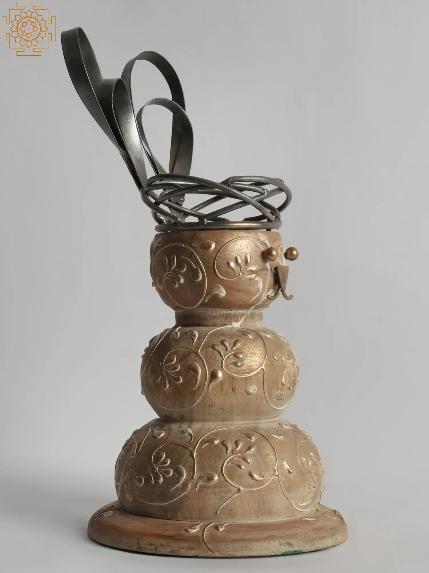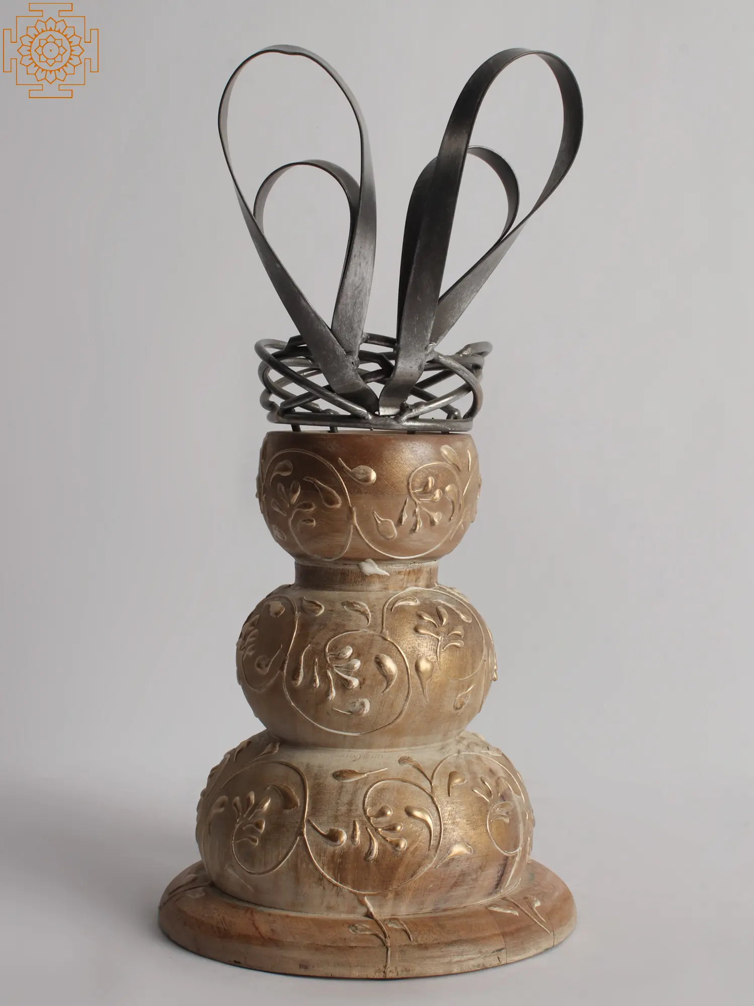 24" Wooden Carved Designer Candle Holder | Home Decor