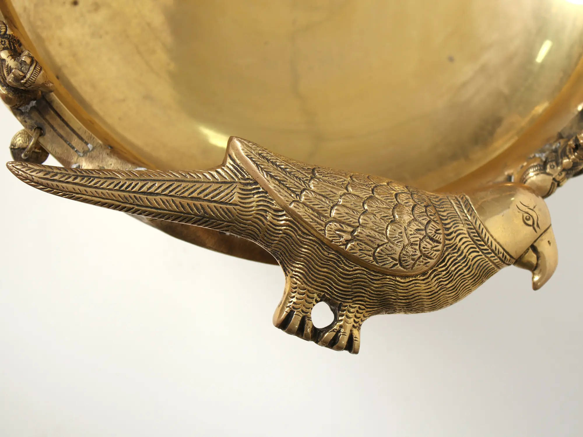 Based on the legend of Amar Katha and the intellectual interaction between Lord Shiva and Goddess Parvati at Amarnath, this Urli made of brass contains Nandi and Parrot two very important aspects of the legend. As per the story, it was the Parrot who listened to the story of Amar Katha narrated by Lord Shiva when Goddess Parvati fell asleep and was reborn as Sage Shuka Dev.