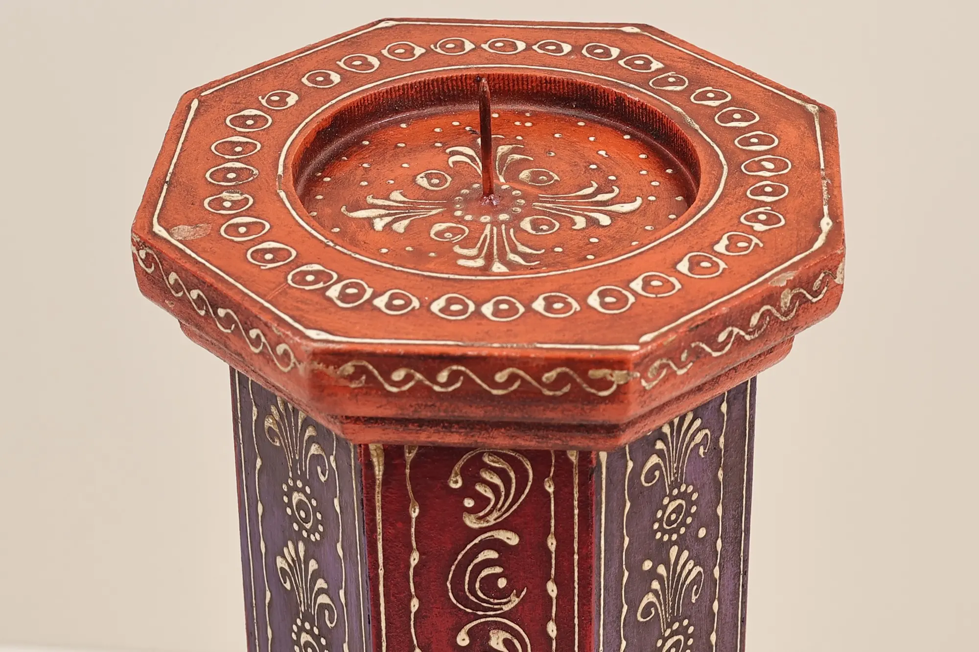 Candles are illuminating and have been regarded as messengers of wisdom. This Decorative, Colorful Candle Stand, crafted in the artistic tradition of Jodhpur, is the accommodation to keep the candles safe and burning. Its eye-catching octagonal design is adorned with a captivating blend of green and yellow shades, adding a vibrant touch to any space. The Jodhpur-style craftsmanship infuses cultural charm into this candle stand, making it a unique and aesthetically pleasing accent for your home. Illuminate your surroundings in style and let the green and yellow hues create a warm and inviting atmosphere, turning every moment into a visual delight.