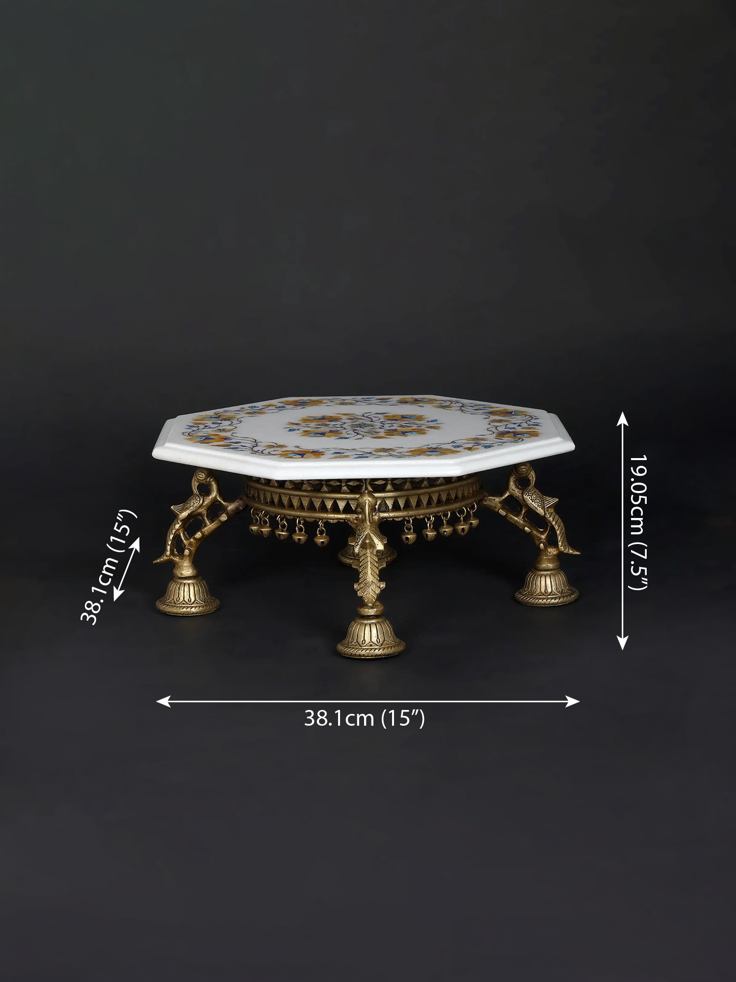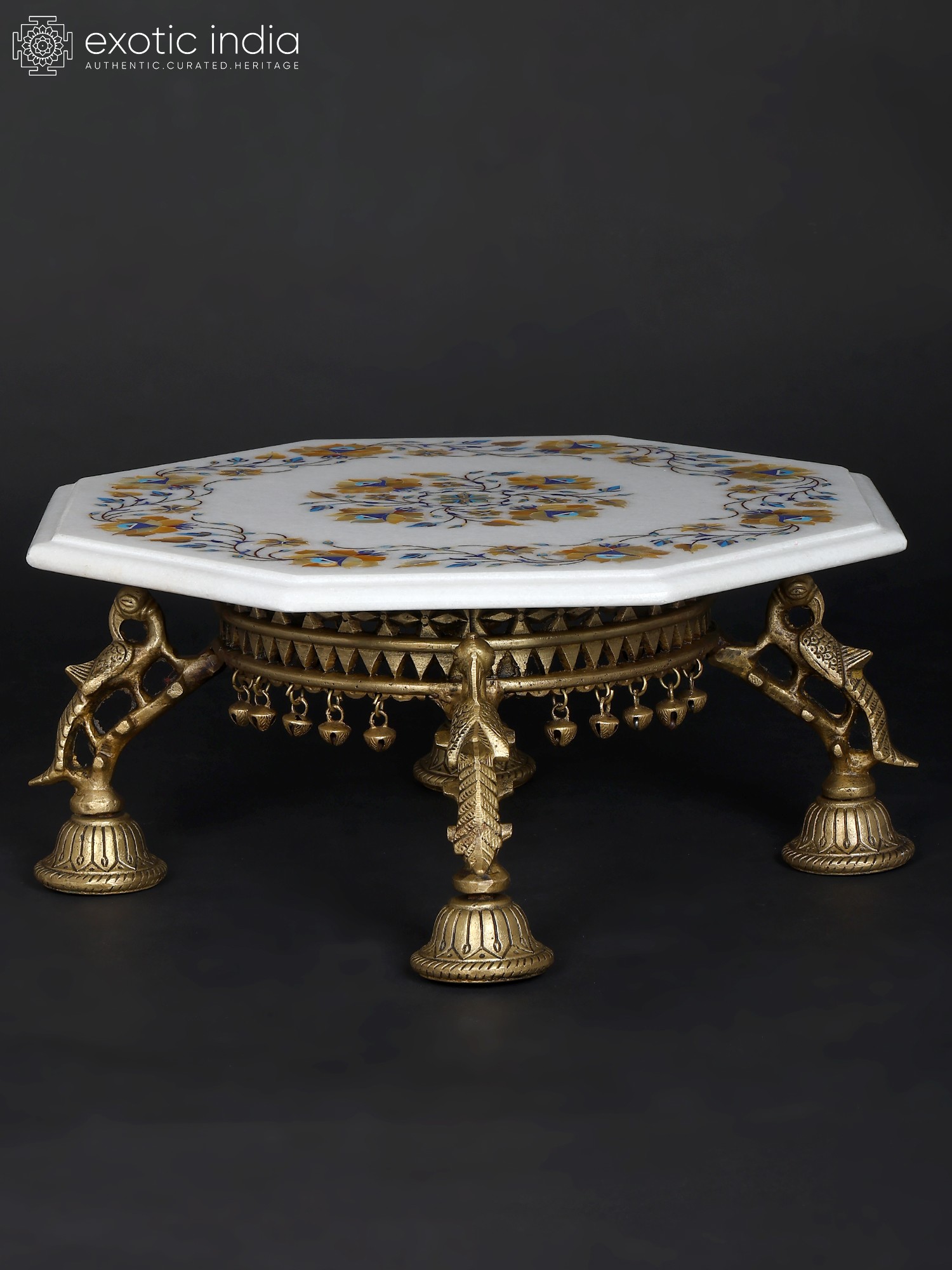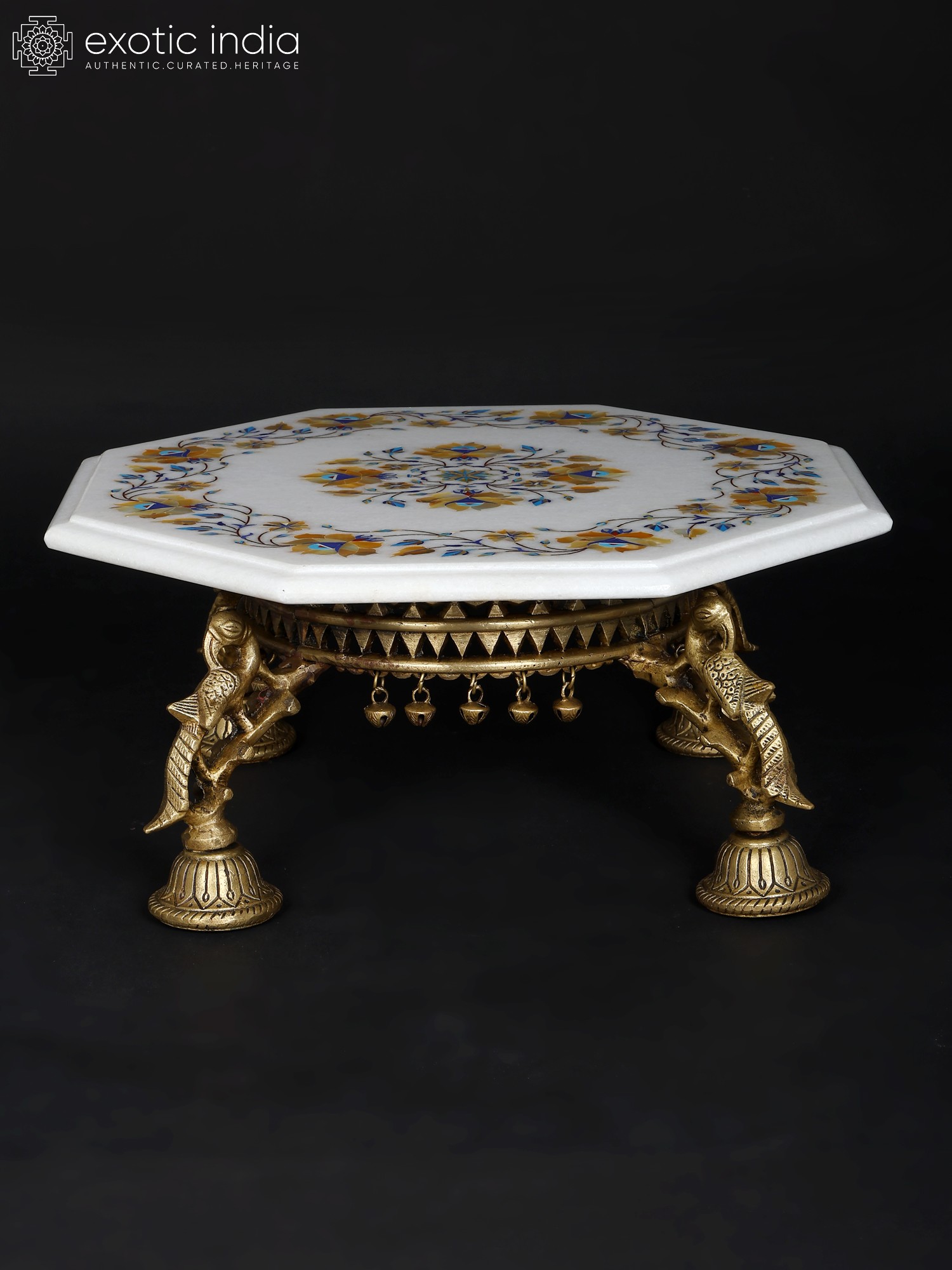 18" Hand-Painted Round Shaped Chowki (Pedestal)