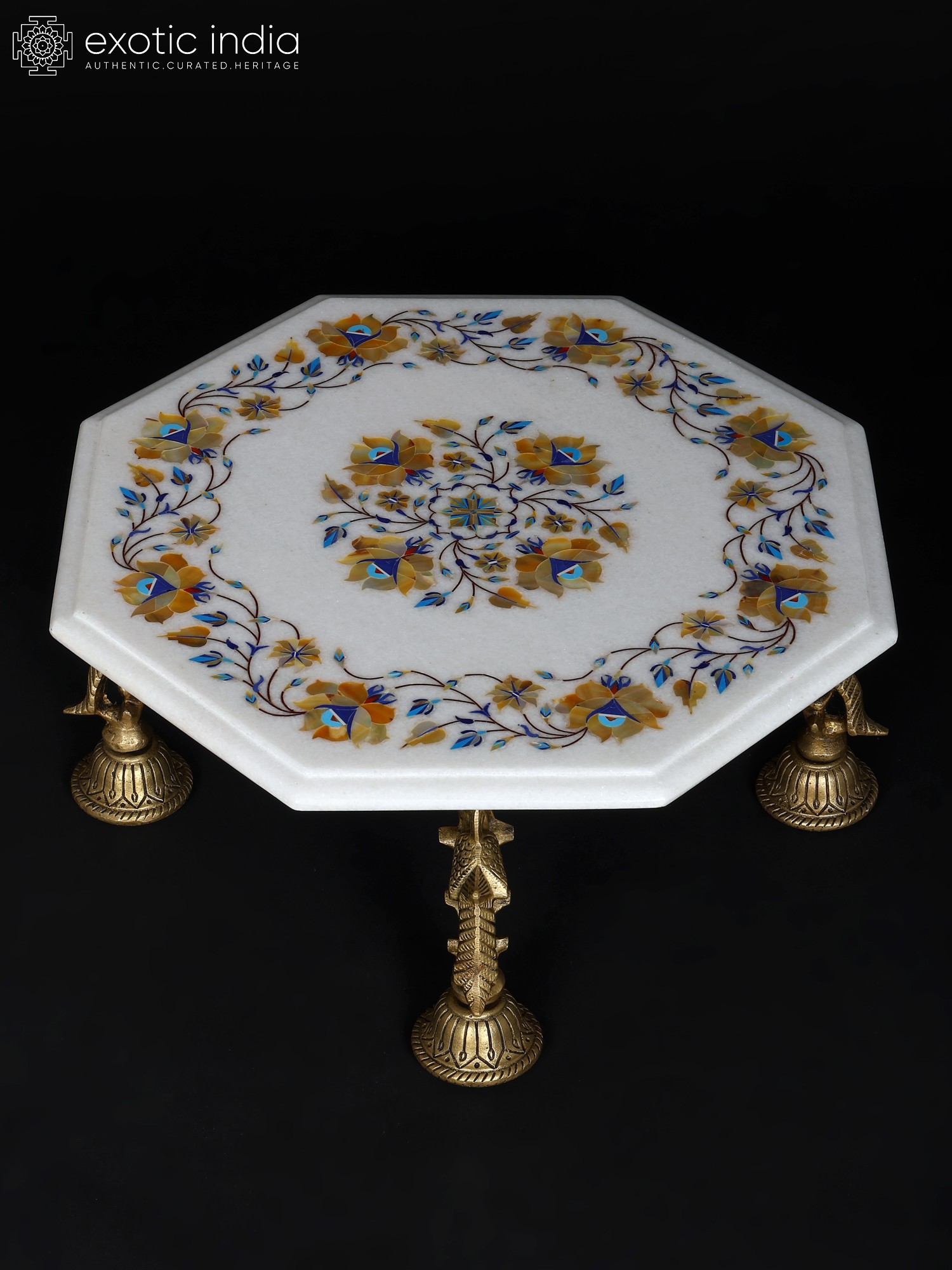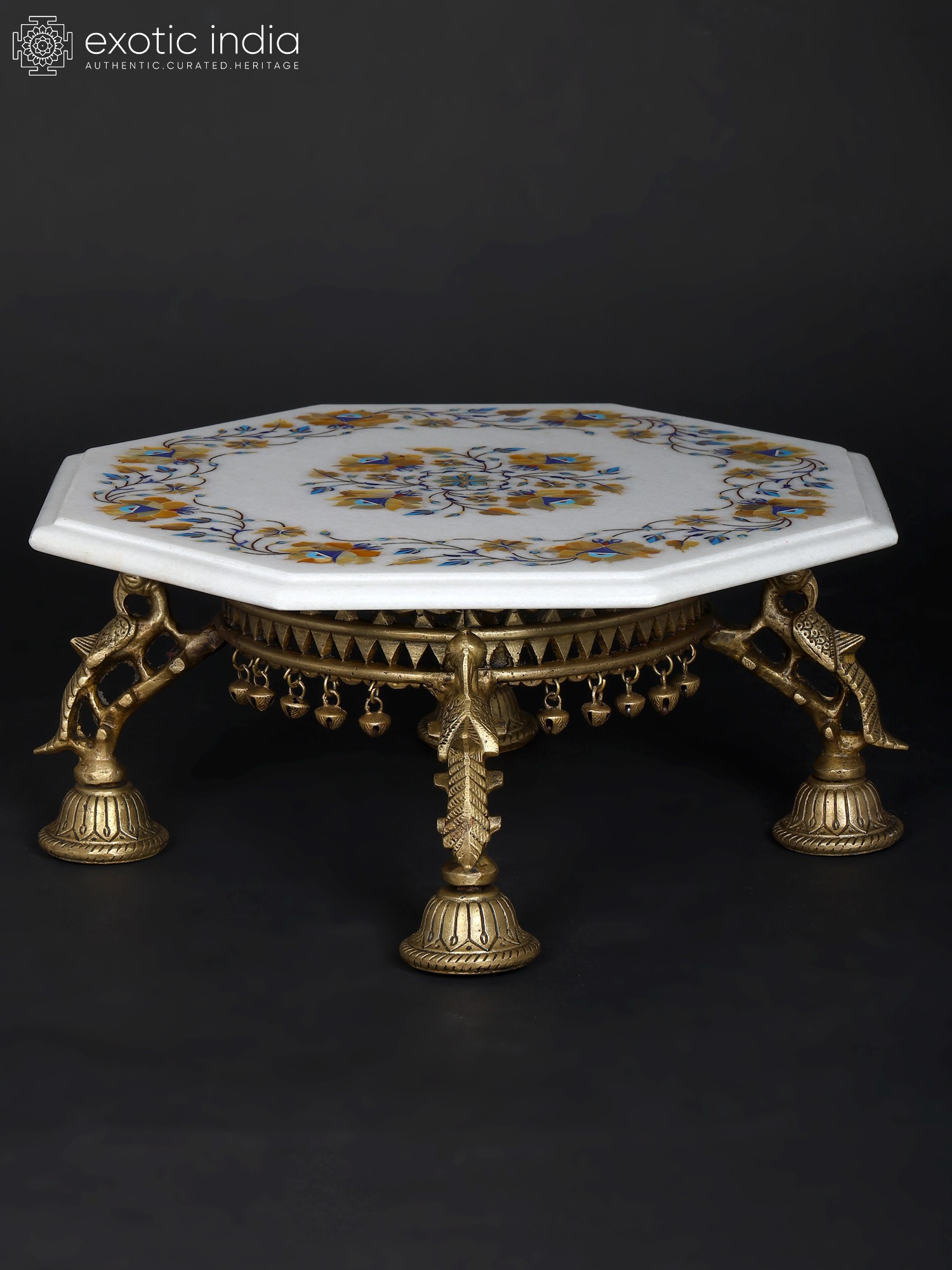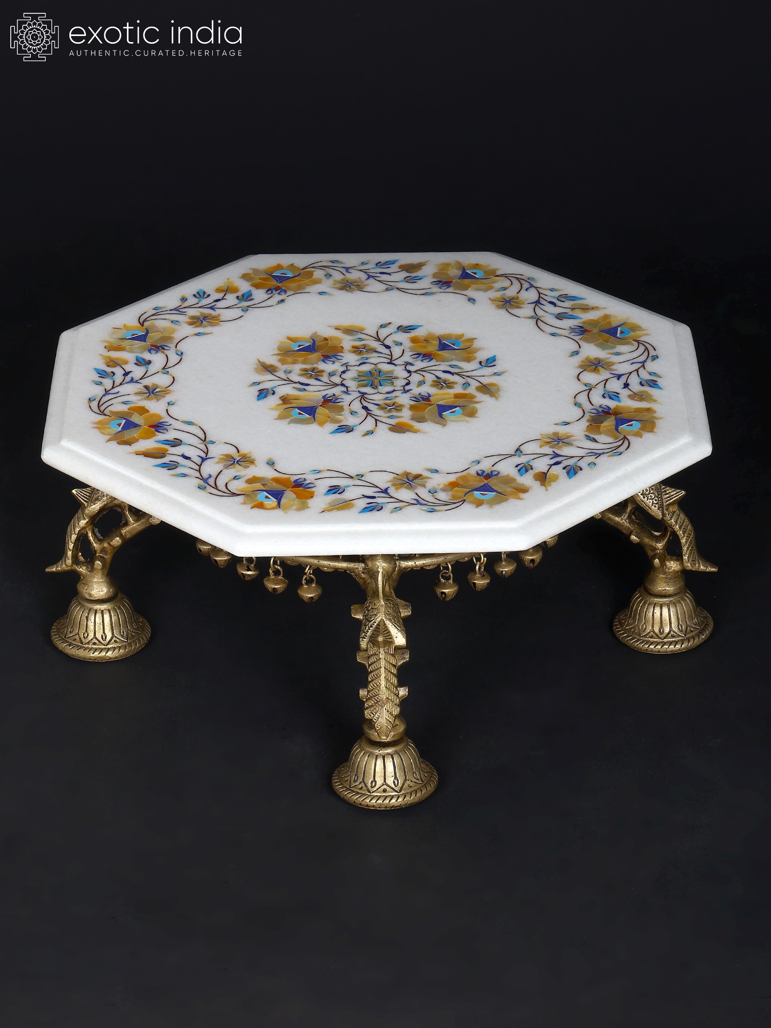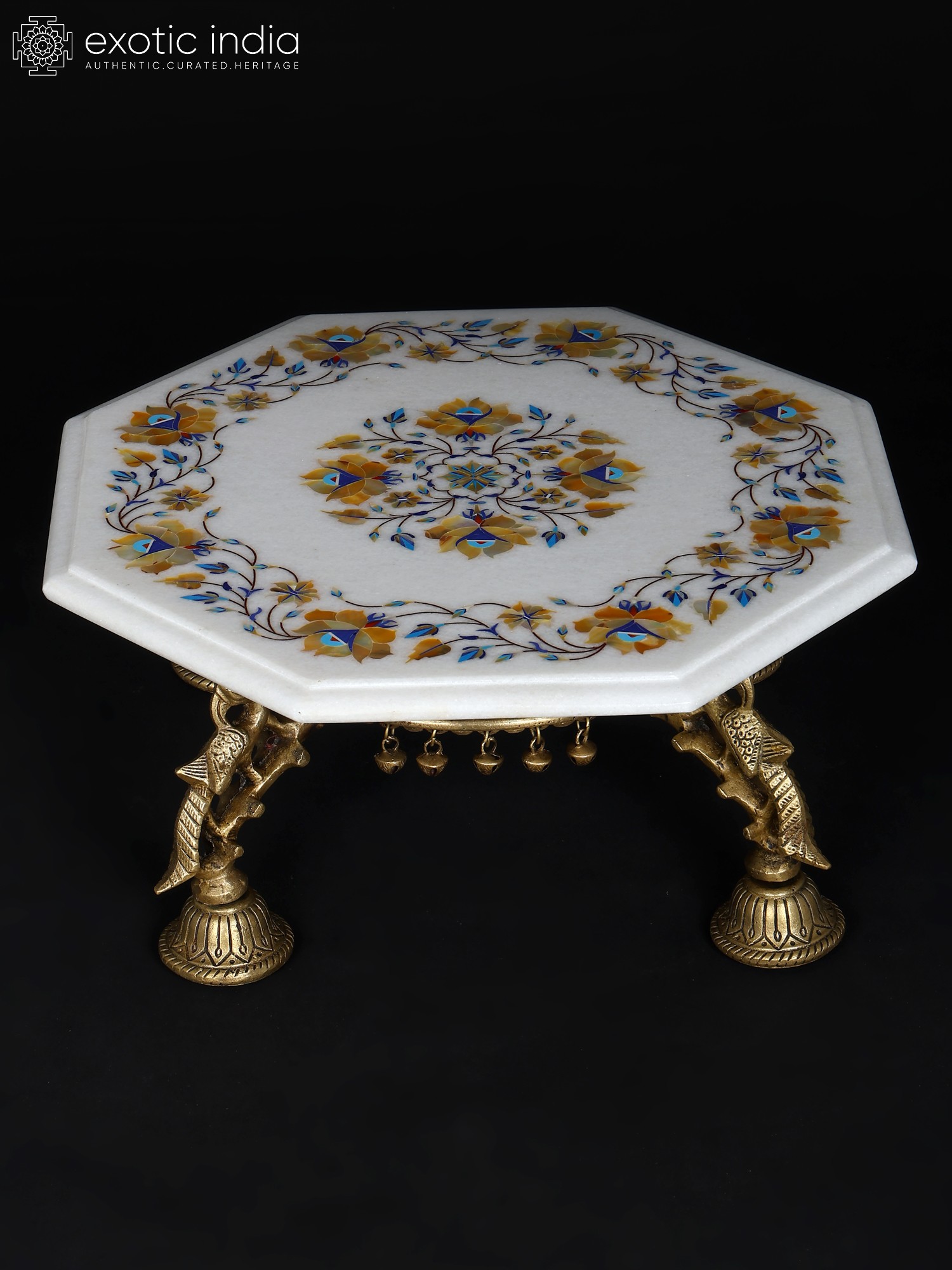 18" Hand-Painted Round Shaped Chowki (Pedestal)
