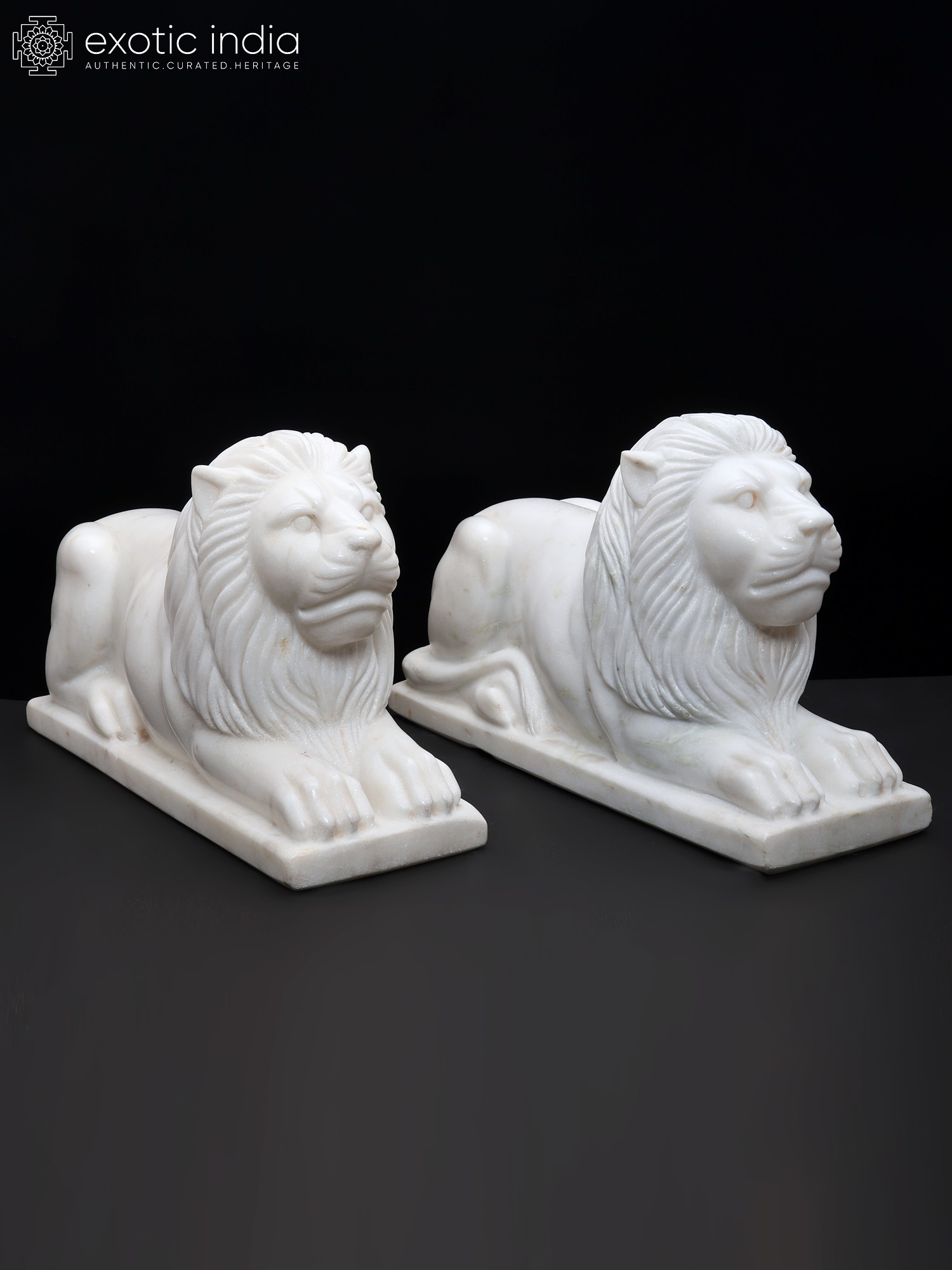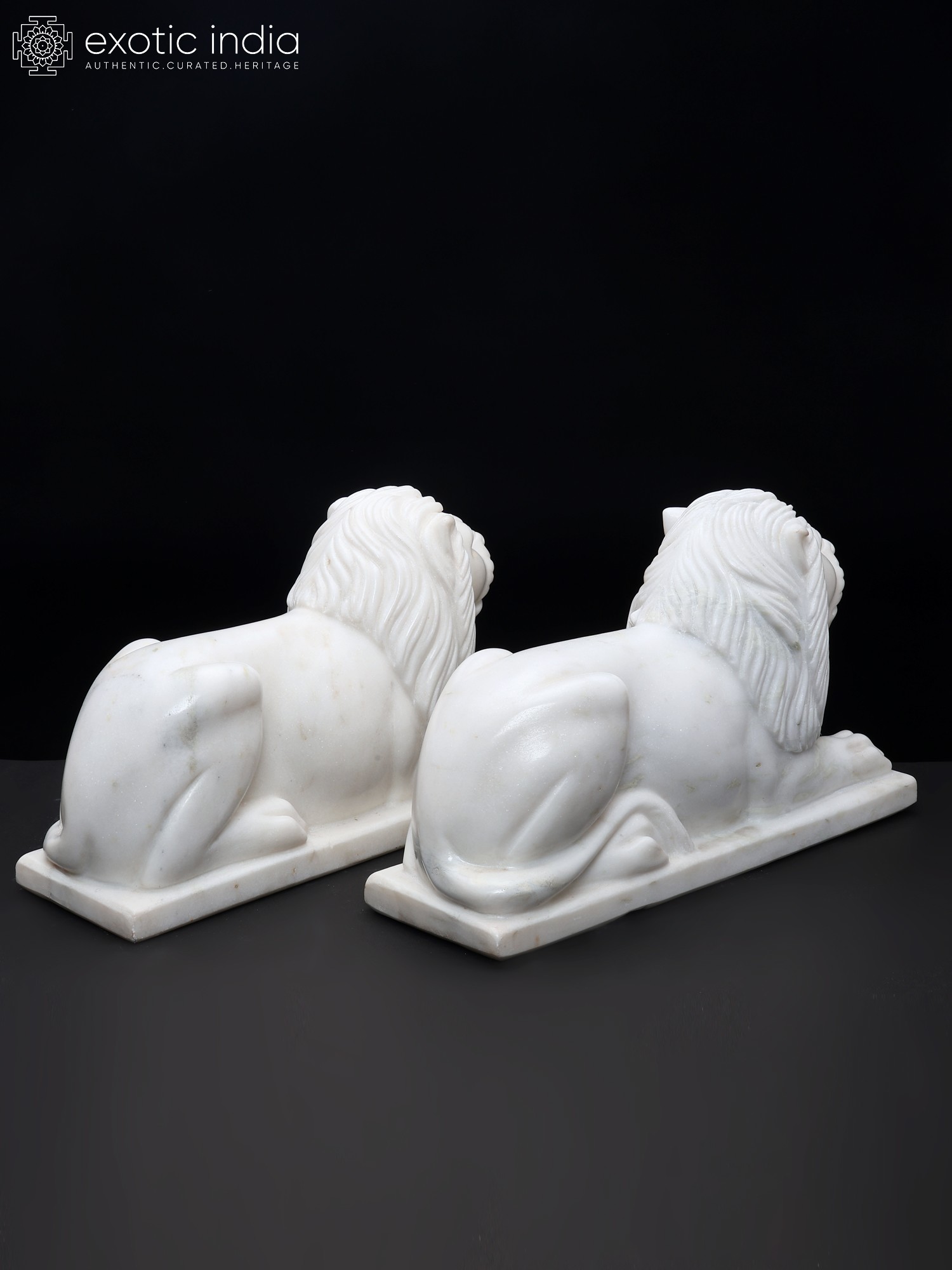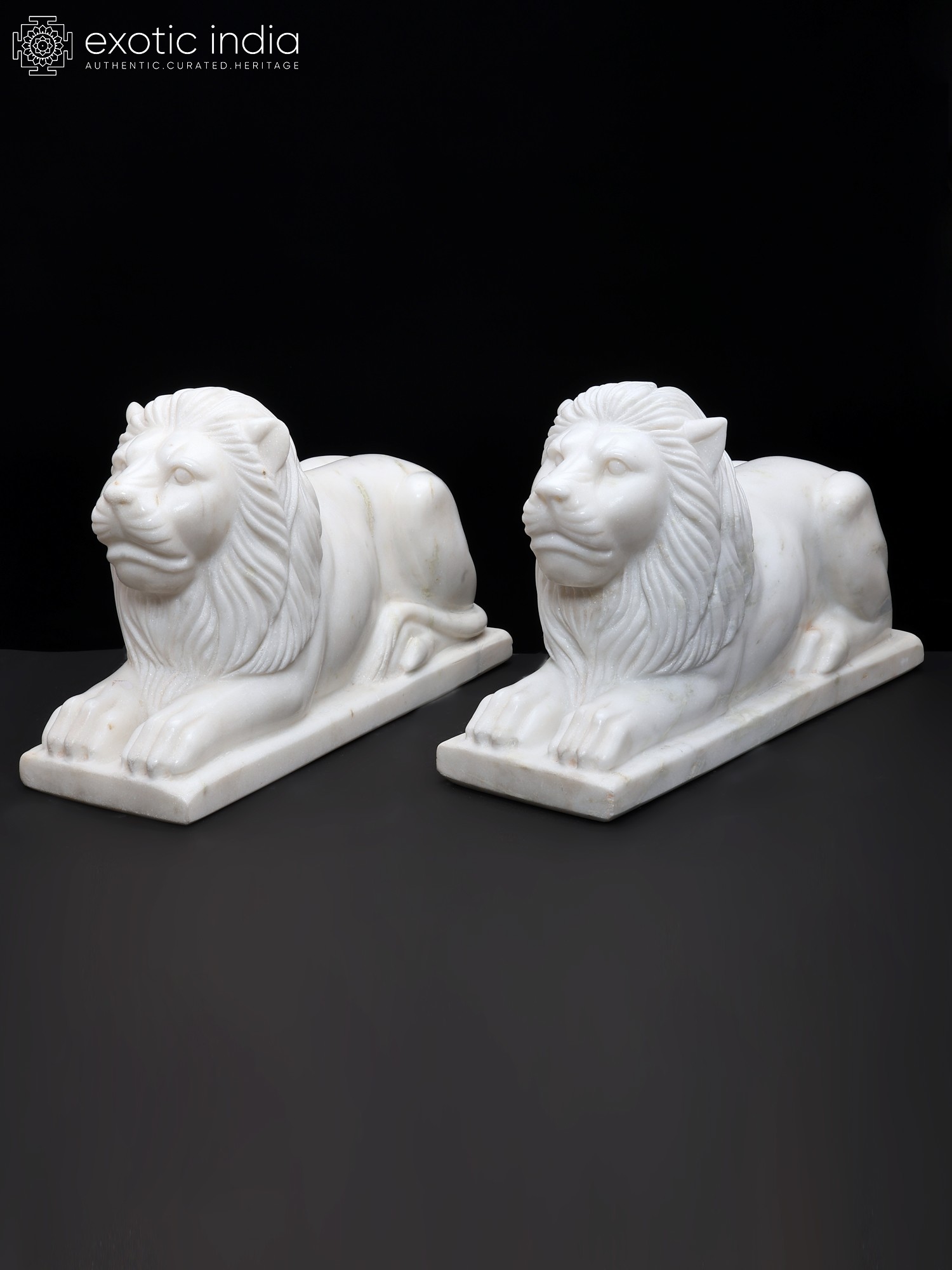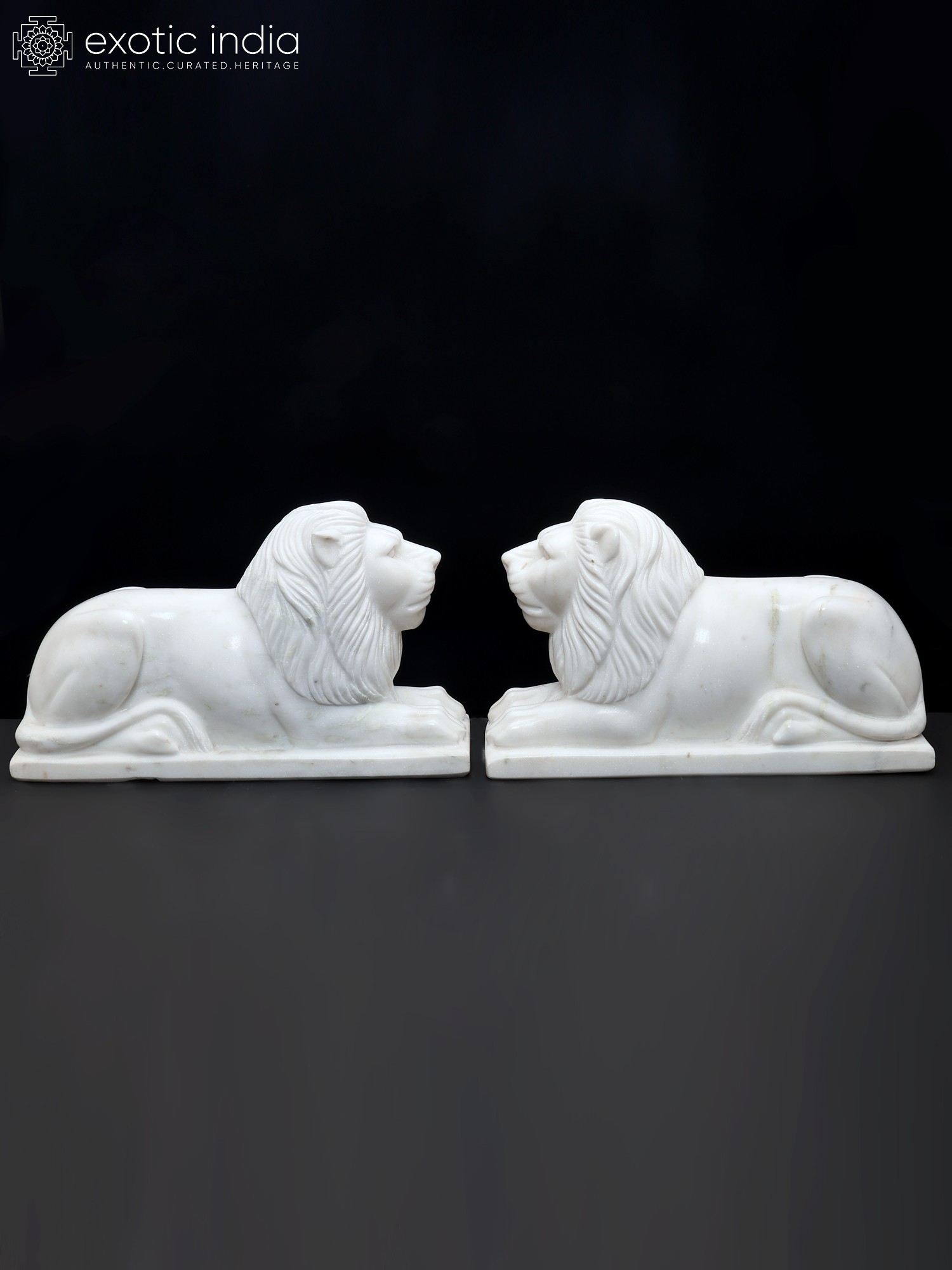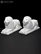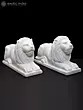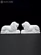 15" Hand-Carved White Marble Lion Pair | Royal Guardian Sculptures