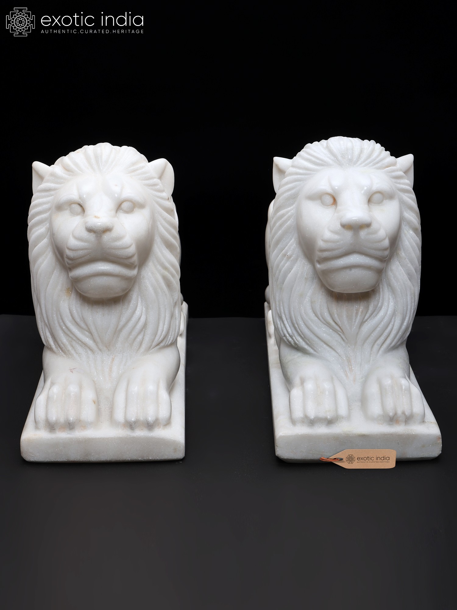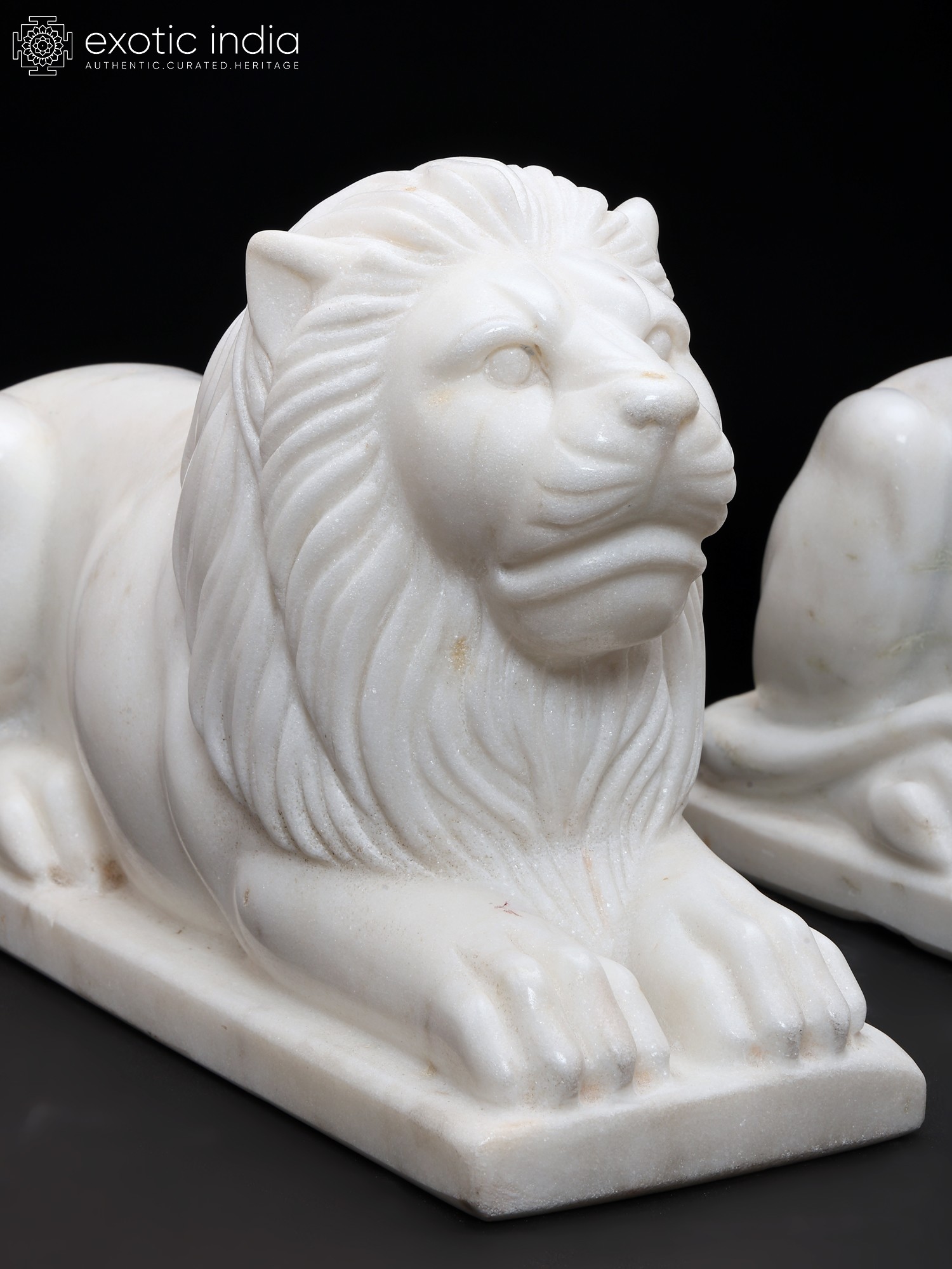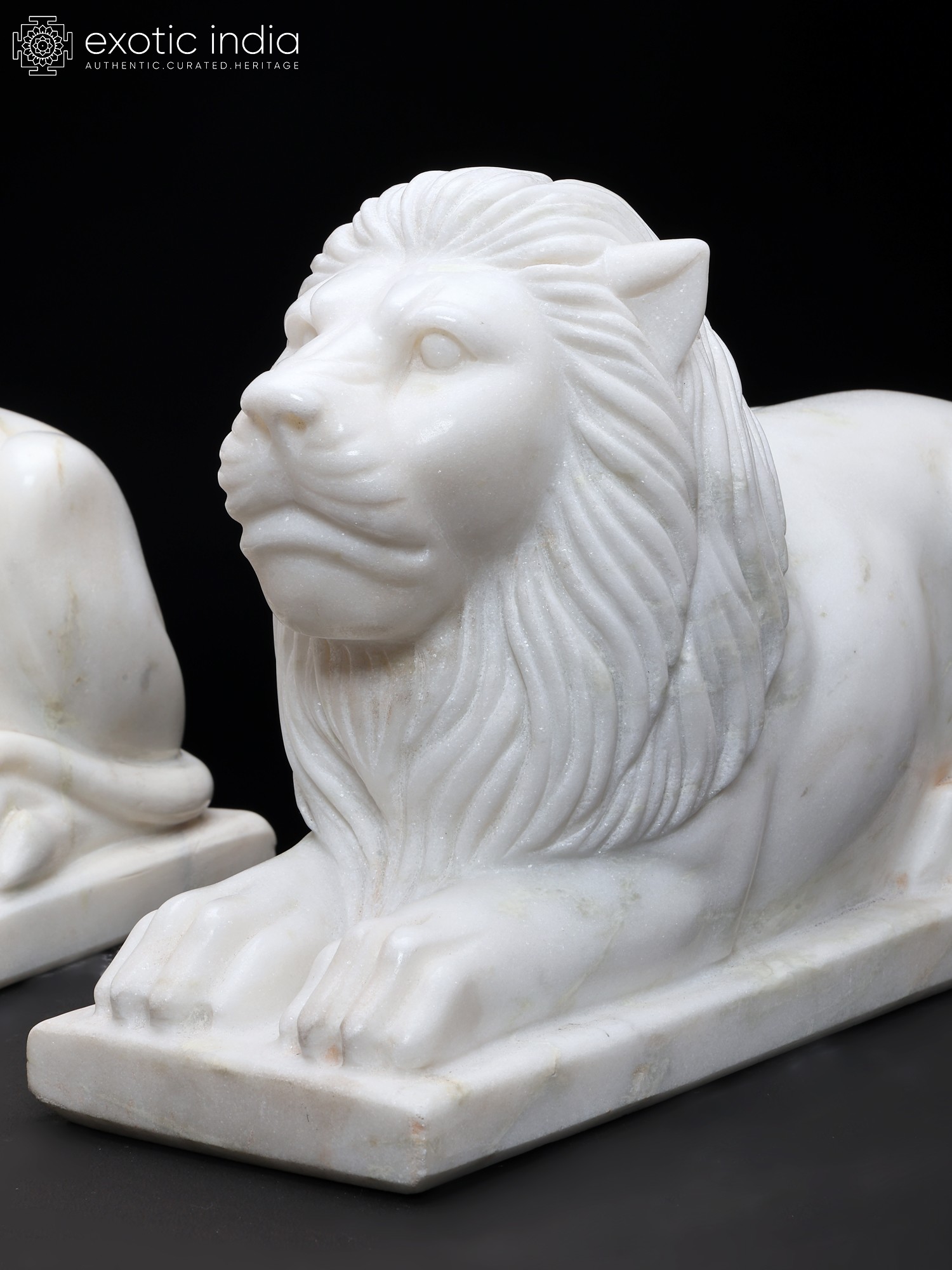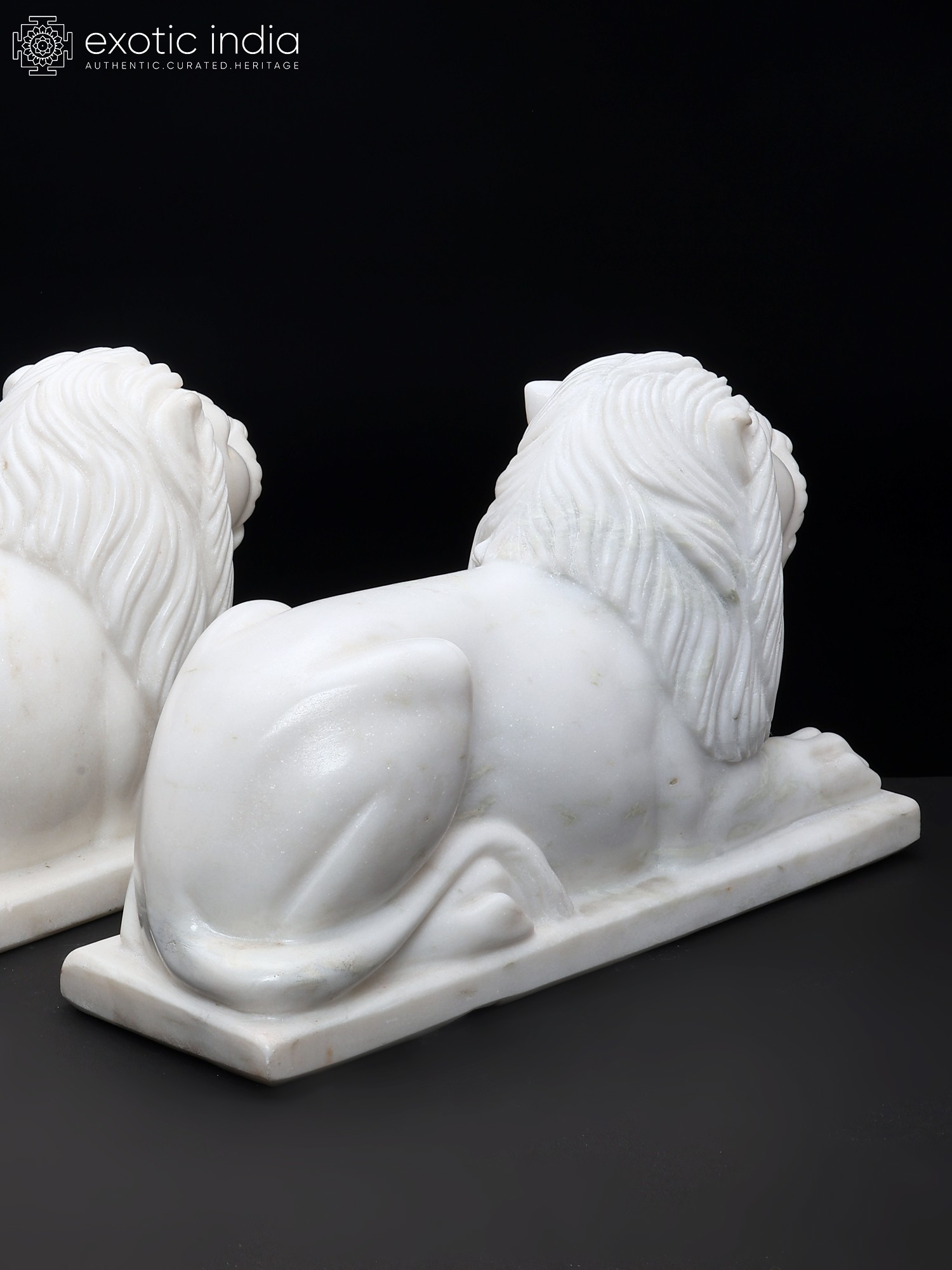 15" Hand-Carved White Marble Lion Pair | Royal Guardian Sculptures