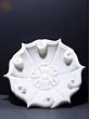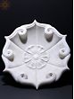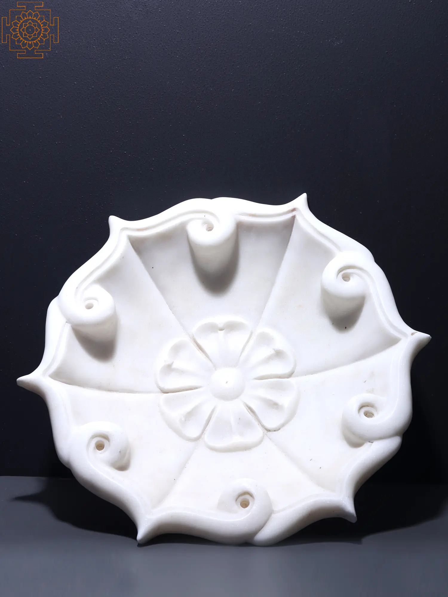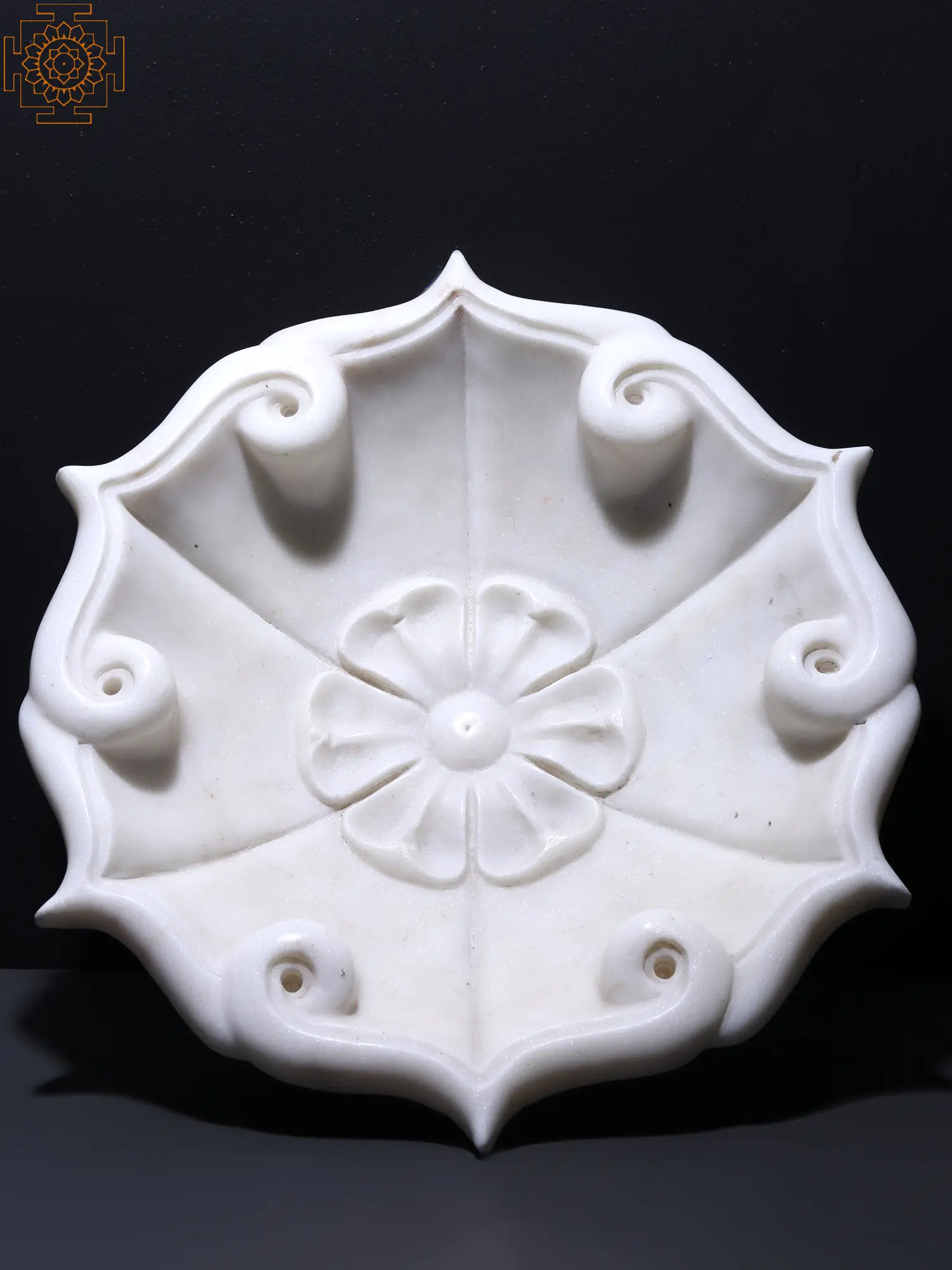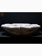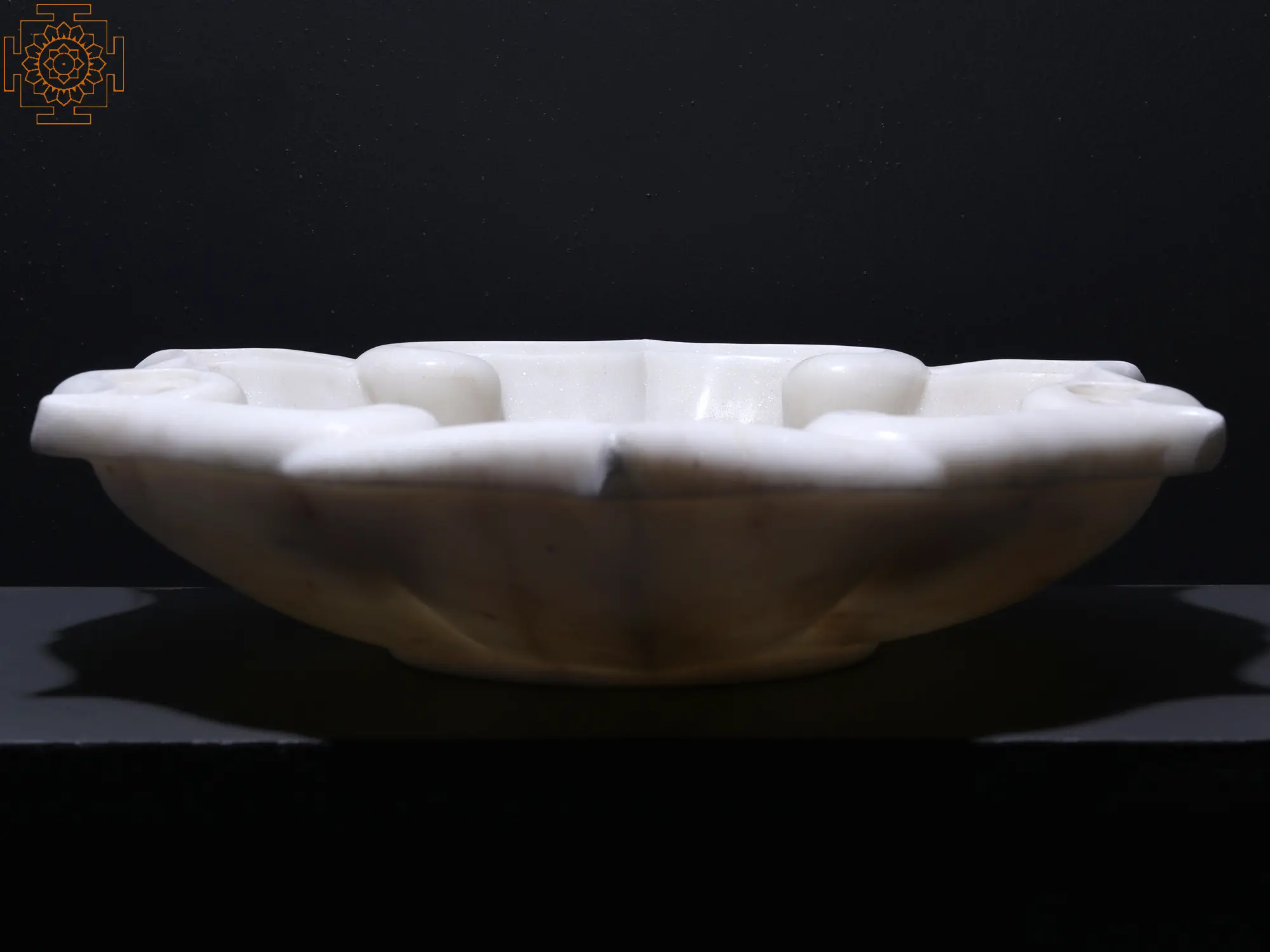 The white marble used in the construction of this floral-shaped Urli exhibits a smooth and polished surface, enhancing its overall appeal, as the natural beam found in marble adds a unique character, ensuring that this piece is one-of-a-kind.