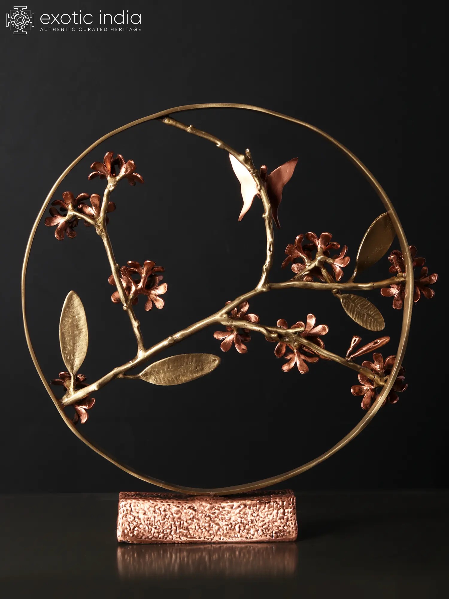 This Beautiful Butterfly on Plumeria Round Table Decor, crafted in brass with 24 Karat Rose Gold Plating, is a poetic celebration of tranquility and nature's beauty. Delicately poised on a branch, the plumeria flowers, adorned with gold coating, emanate a serene aura within the circular frame. The addition of a butterfly adds a touch of whimsy and grace, creating harmonious visual poetry.