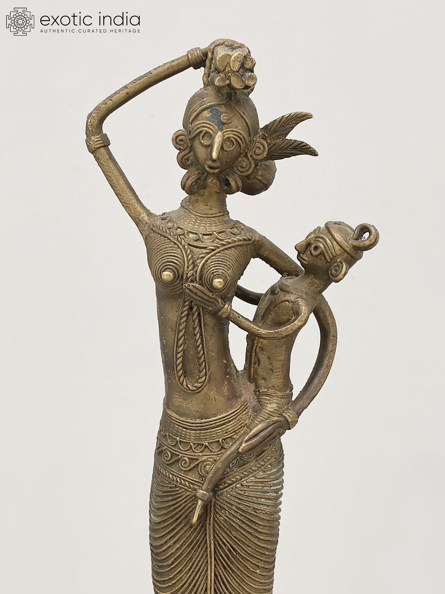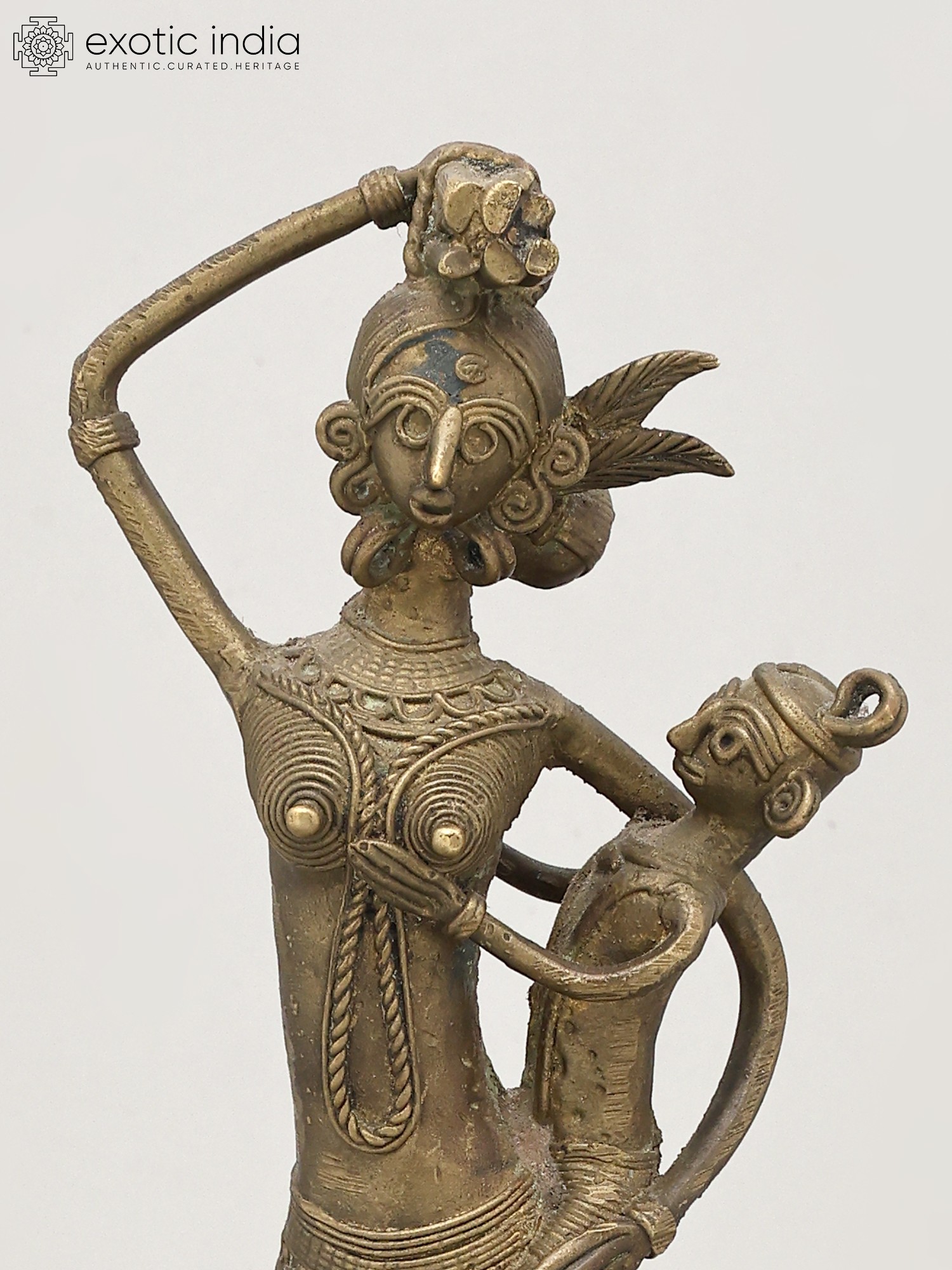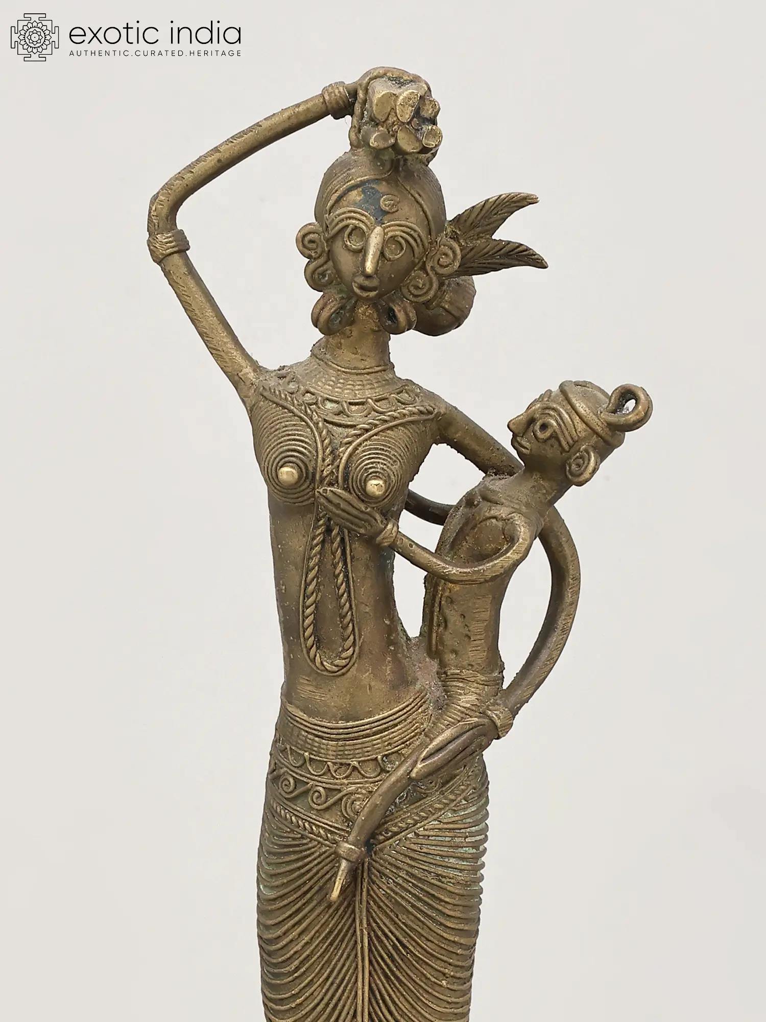 8" Tribal Women Bronze Statue | Decor Showpiece in Warli Style
