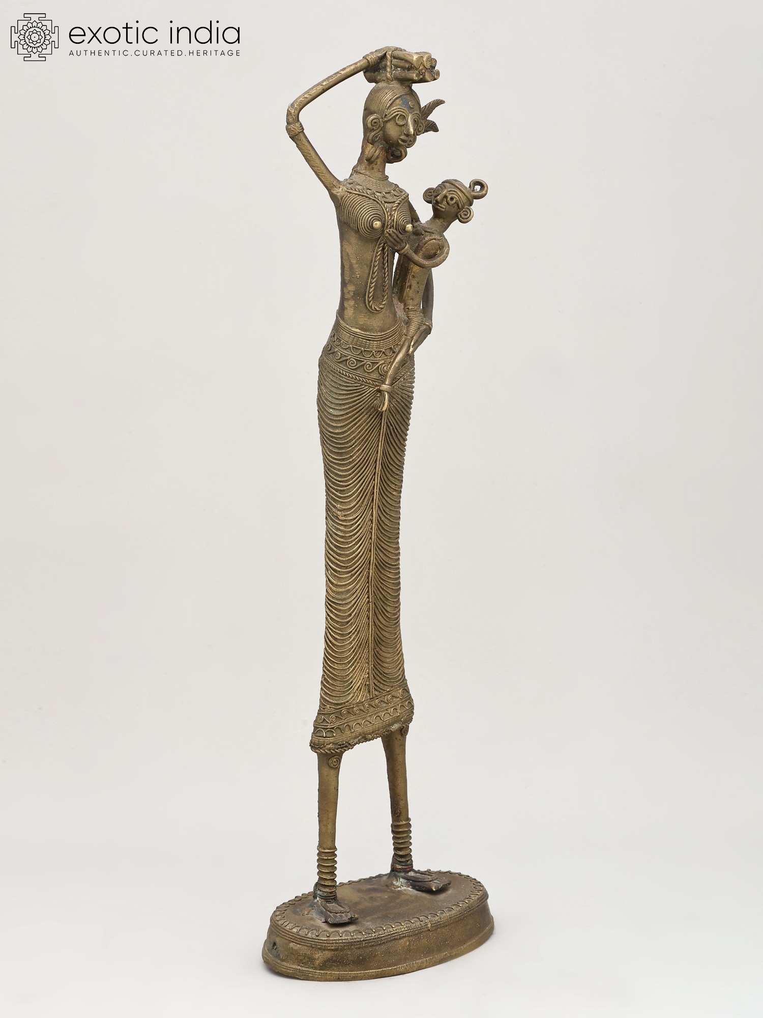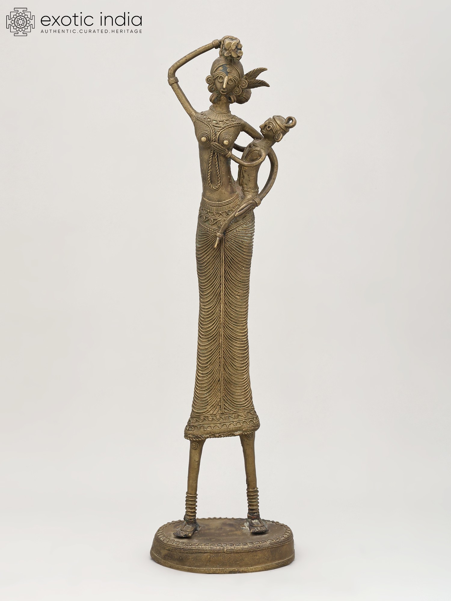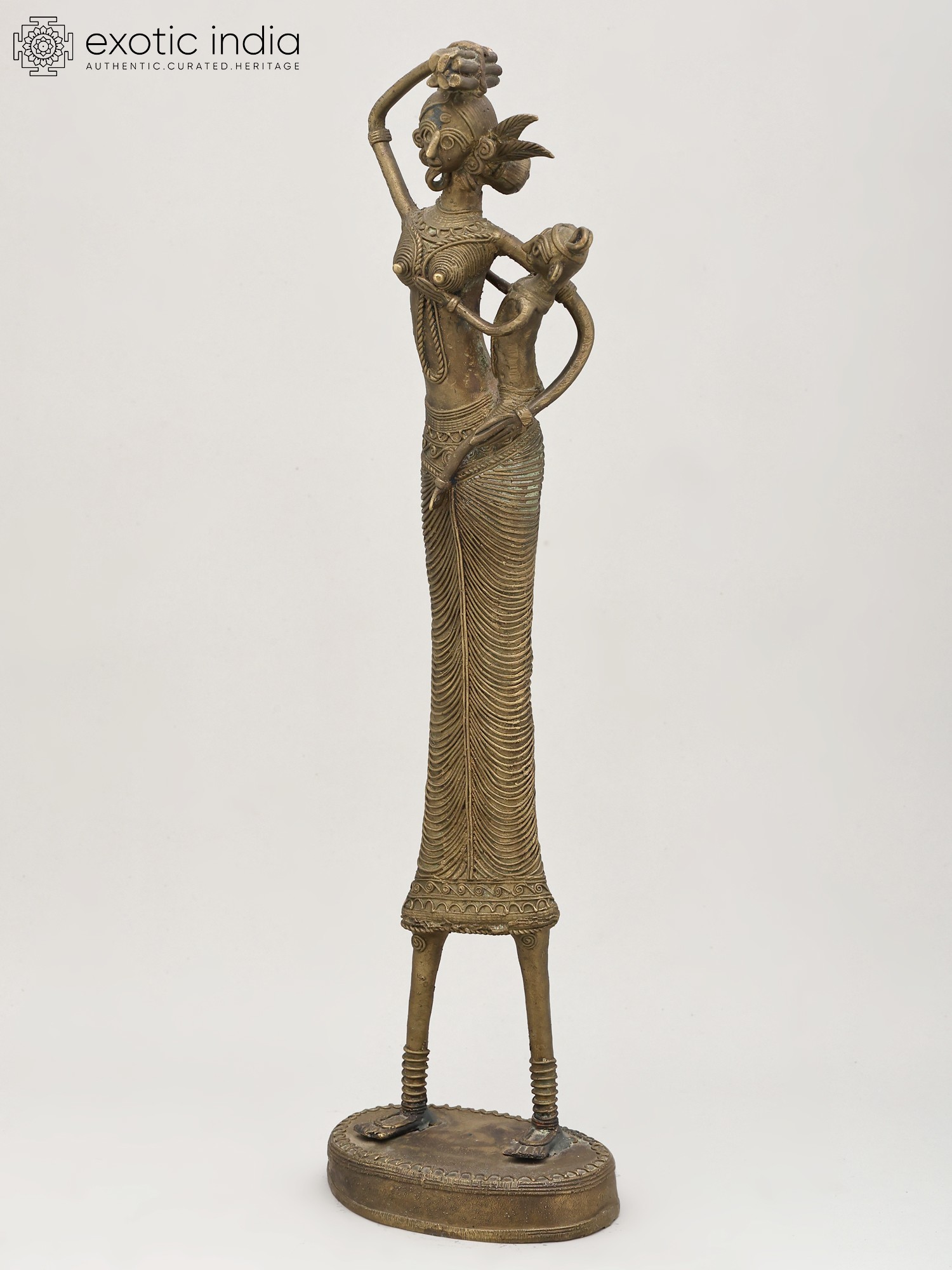 8" Tribal Women Bronze Statue | Decor Showpiece in Warli Style