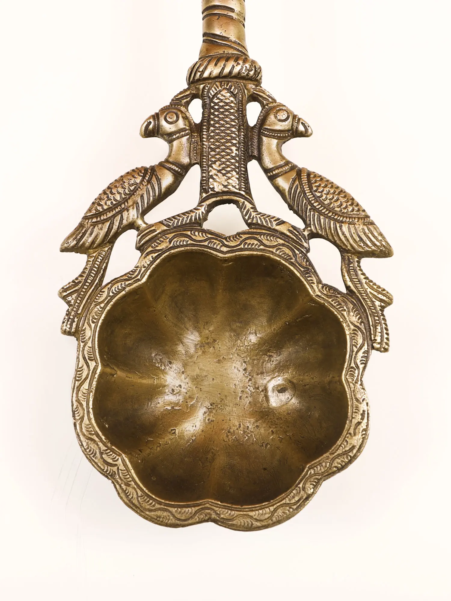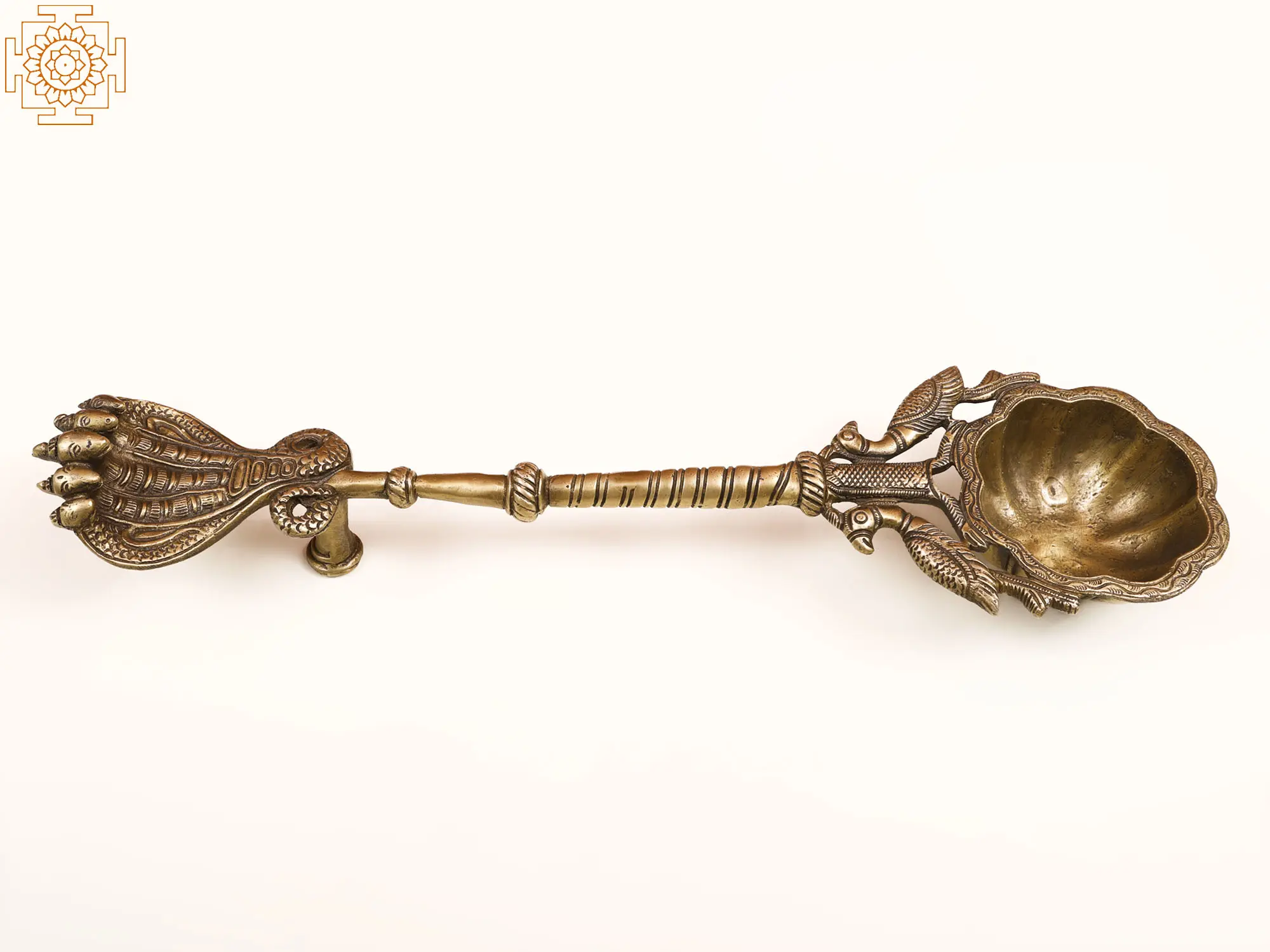 Delve into the realm of symbolism with our Adishesha Ritual Spoon, featuring an intricately designed peacock motif. This spoon, crafted with precision, embodies the divine energy of Adishesha, the serpent deity, also the coil-mount of Swami Vishnu. The peacock design adds a touch of regality, symbolising beauty and grace. Let this ritual spoon be a unique expression of spirituality and artistry during your sacred ceremonies, infusing each ritual with the energy of ancient symbolism and cultural richness.