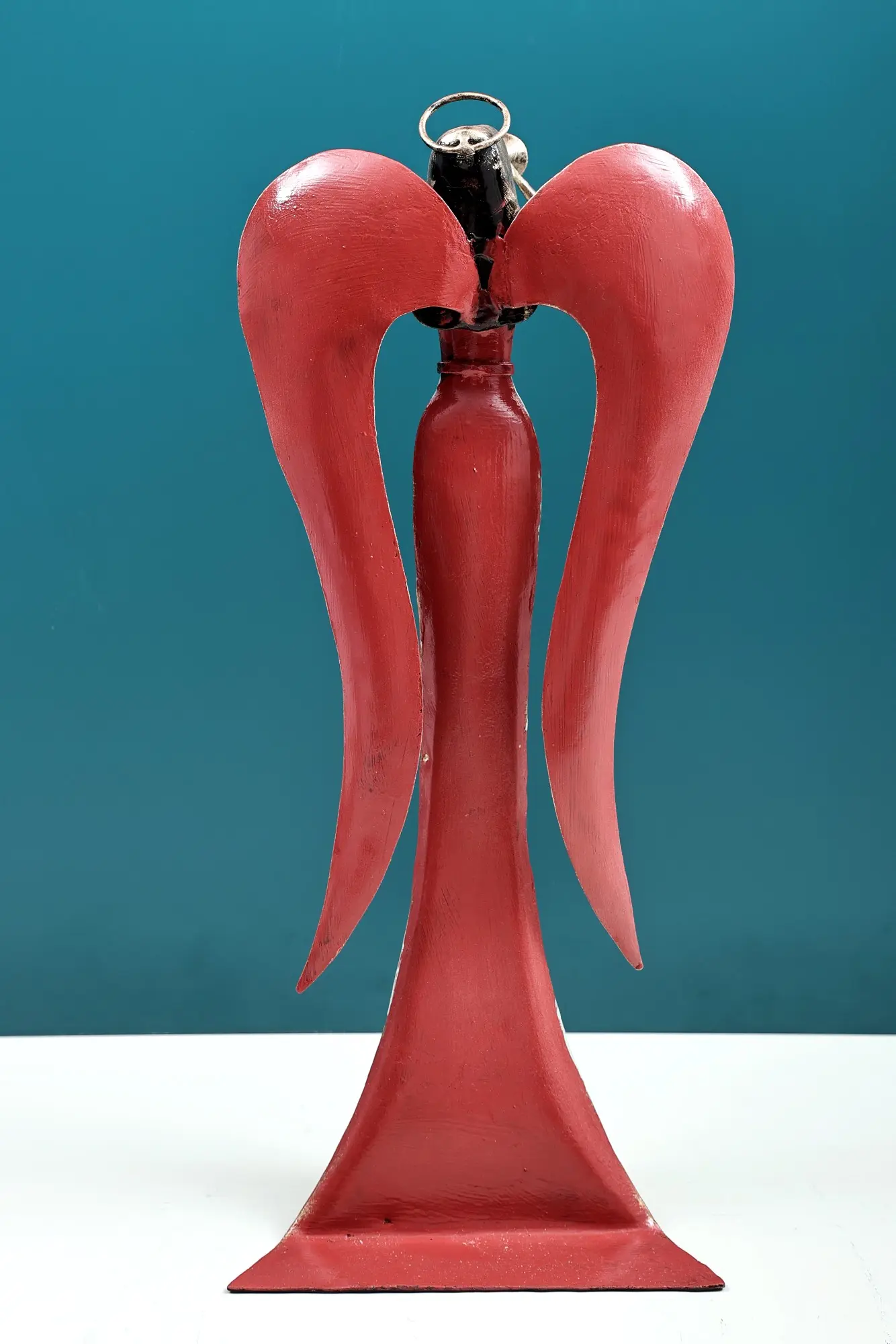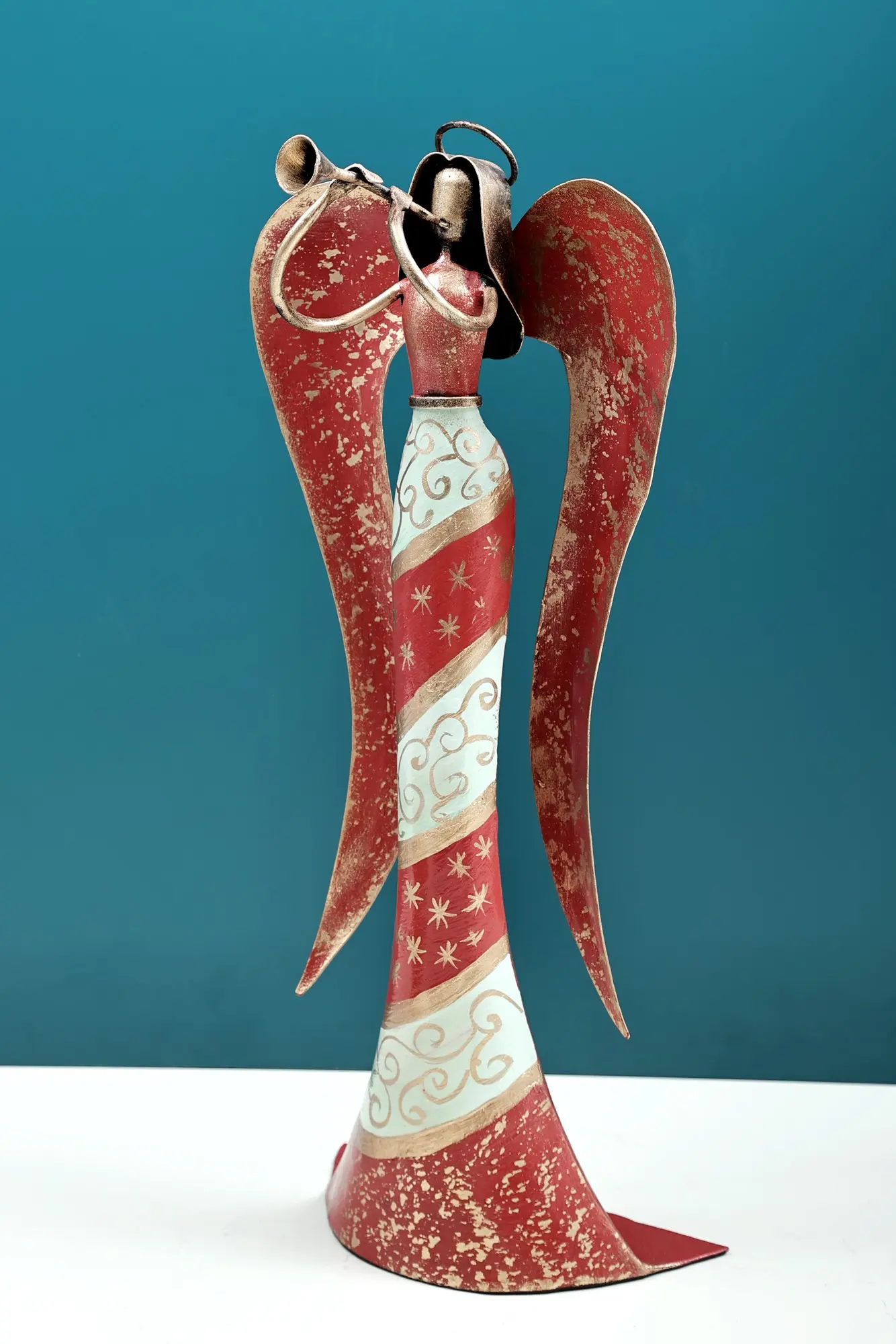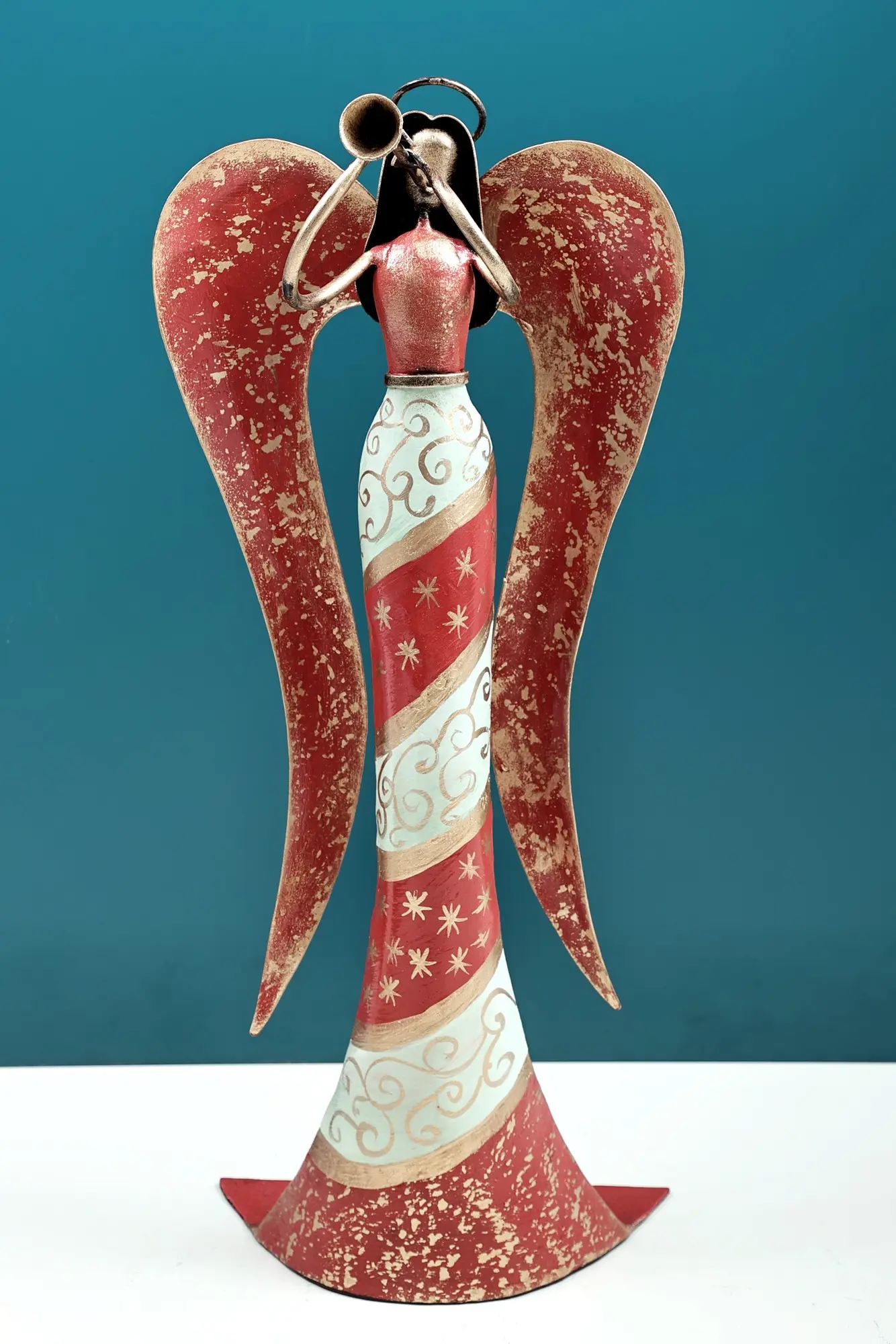 Every curve and detail of this angel is a testament to the skill and dedication of the artisans who created it. Meticulously shaped and finished, each piece bears the unique mark of human hands, ensuring that no two are exactly alike. The use of iron gives it a sense of substantiality and durability, promising years of enjoyment. This is a handcrafted piece where artistry and quality converge. From the delicate shaping of the trumpet to the careful application of paint, every element has been executed with precision and care. The subtle imperfections inherent in handcrafted items only add to its character and charm, making it a truly special addition to your home.