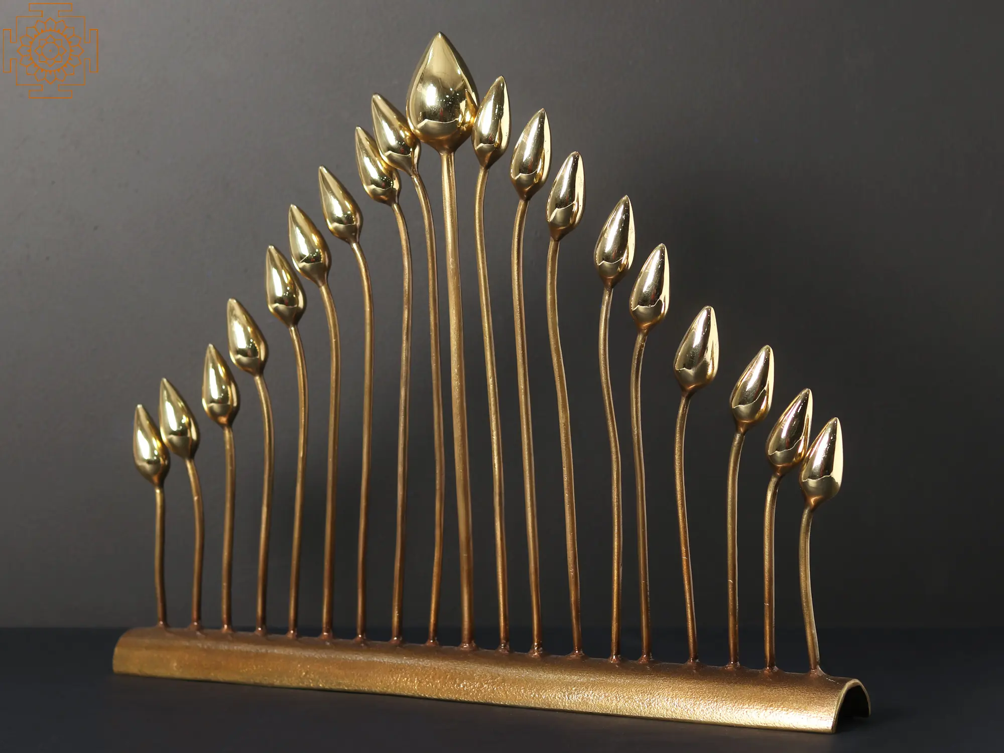 This brass home decor piece stands out as a truly unique masterpiece, portraying a captivating arrangement of lotus buds. The meticulous design showcases the largest lotus bud at the center, standing tall and proud, surrounded by smaller lotus buds arranged in a descending manner on both sides.