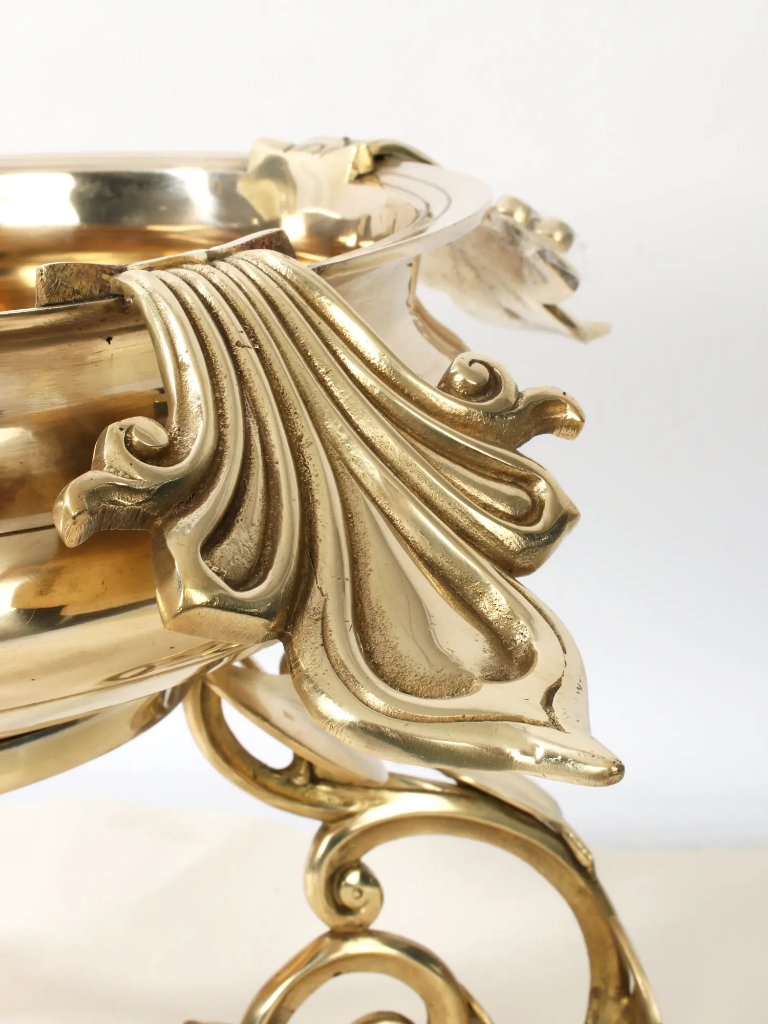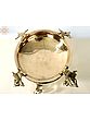 This brass Urli with leaf decorations on the stands and the border of the mouth emits a pleasant connection to the splendor of nature. This Urli's stands are covered with delicately sculpted leaf motifs, highlighting the beauty and intricacy of vegetation. The leaf designs add an inherent grace to the combination. Additionally, exquisite Plumeria leaves made of brass are painstakingly pasted at the bottom ends of the stands, creating a unique and appealing accent. The Plumeria leaves represent beauty and grace, adding to the Urli's aesthetic appeal. This stunning artwork combines craftsmanship and nature to create a compelling centerpiece that brings the essence of nature into any area.
