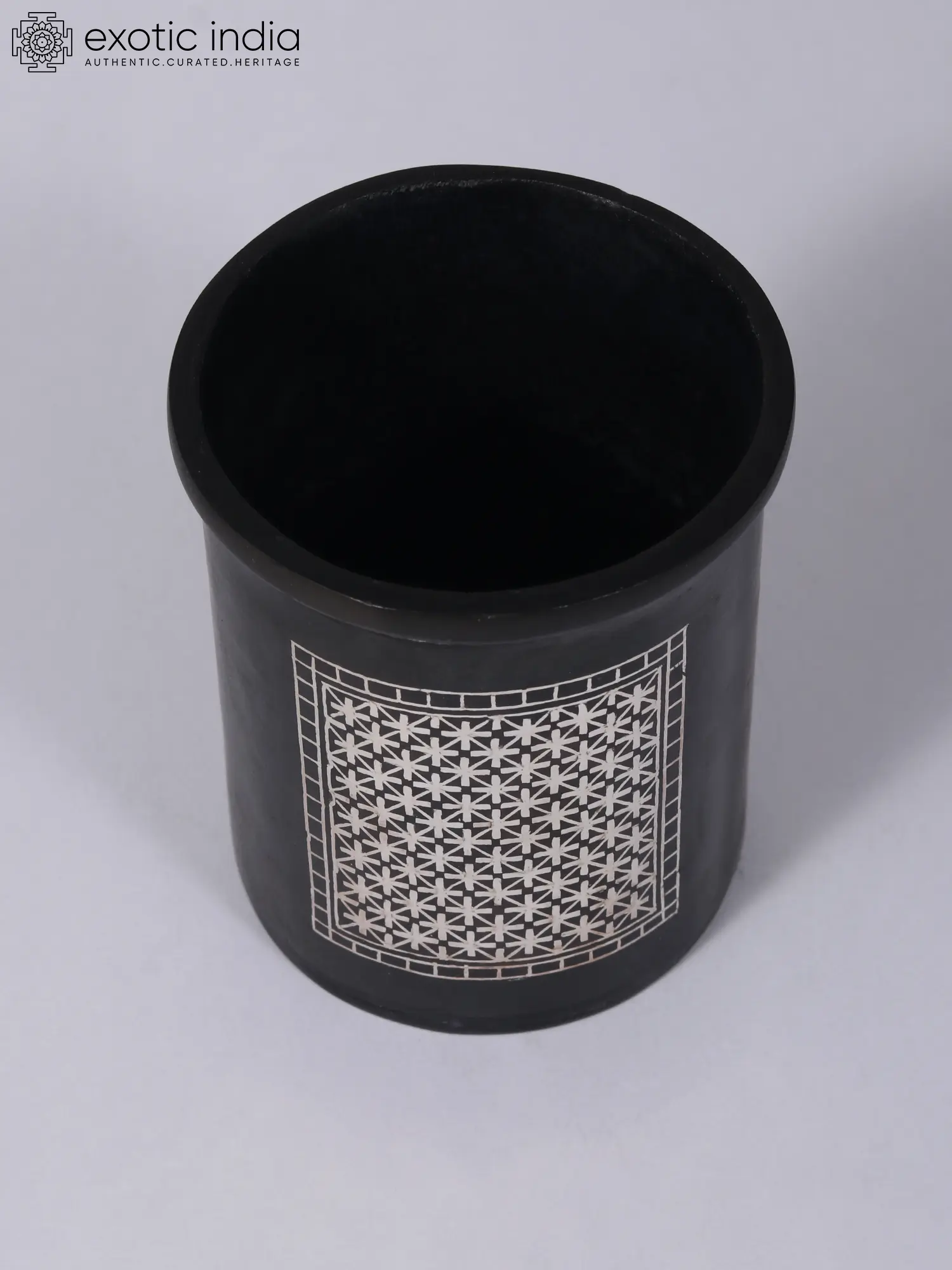 This Small Attractive Floral Pen Holder, adorned with Bidri artwork in gunmetal with real silver, is a prominent symbol of age-old tradition and craftsmanship. The intricate floral patterns, meticulously crafted through the ancient Bidri technique, showcase the elegance of metal inlay. This pen holder not only serves as a functional item but also becomes a miniature work of art, elevating any workspace or desk.
