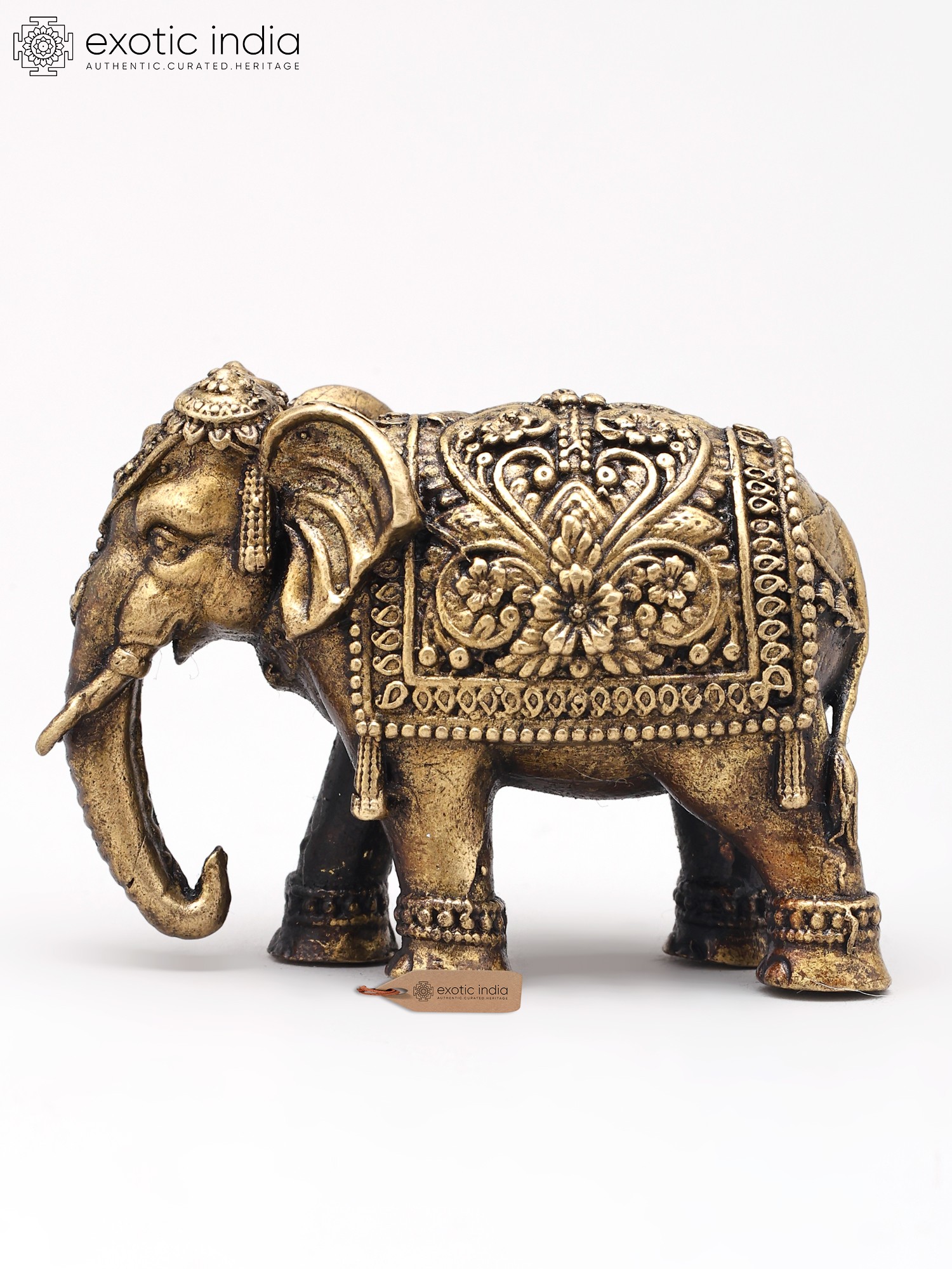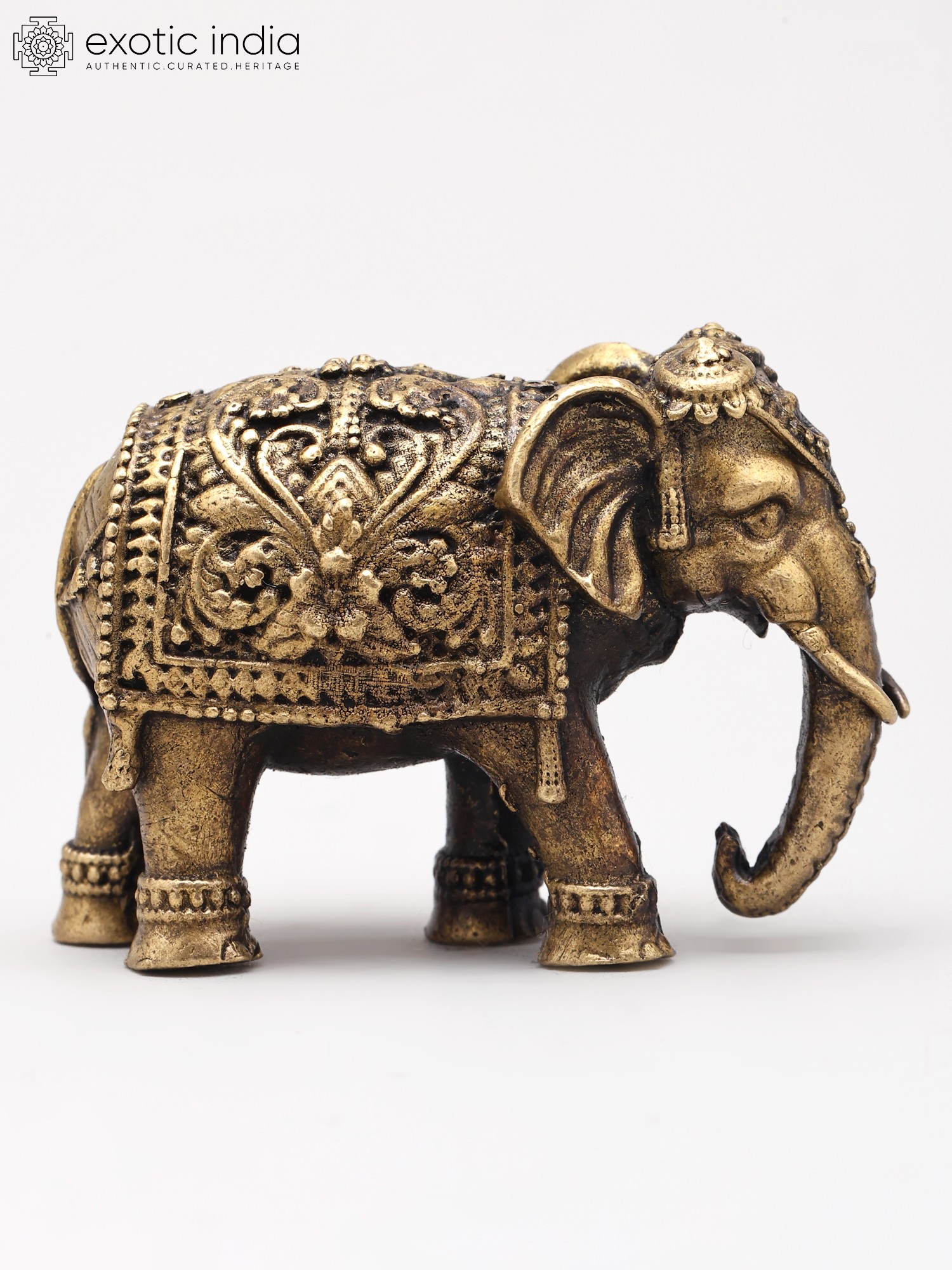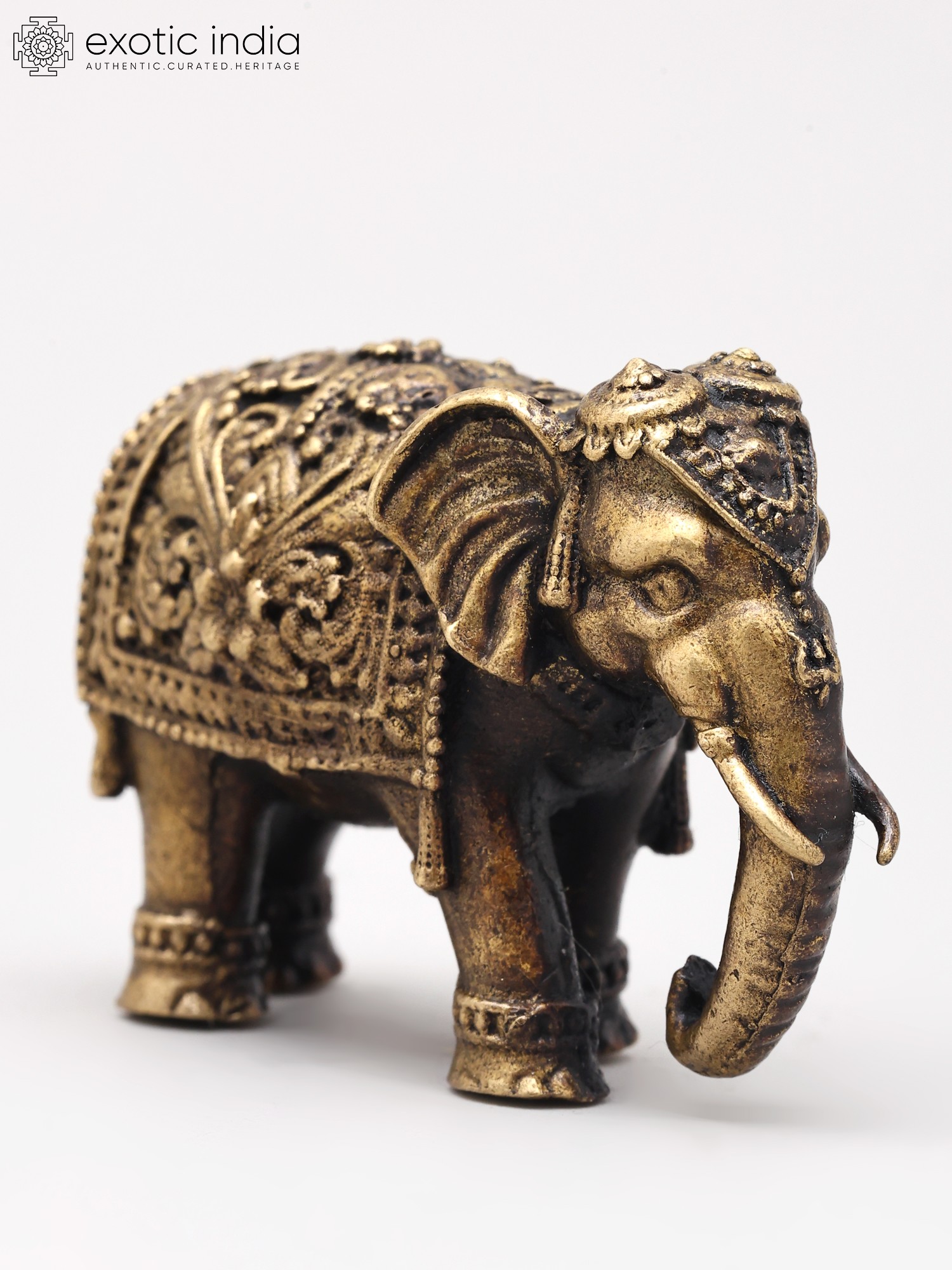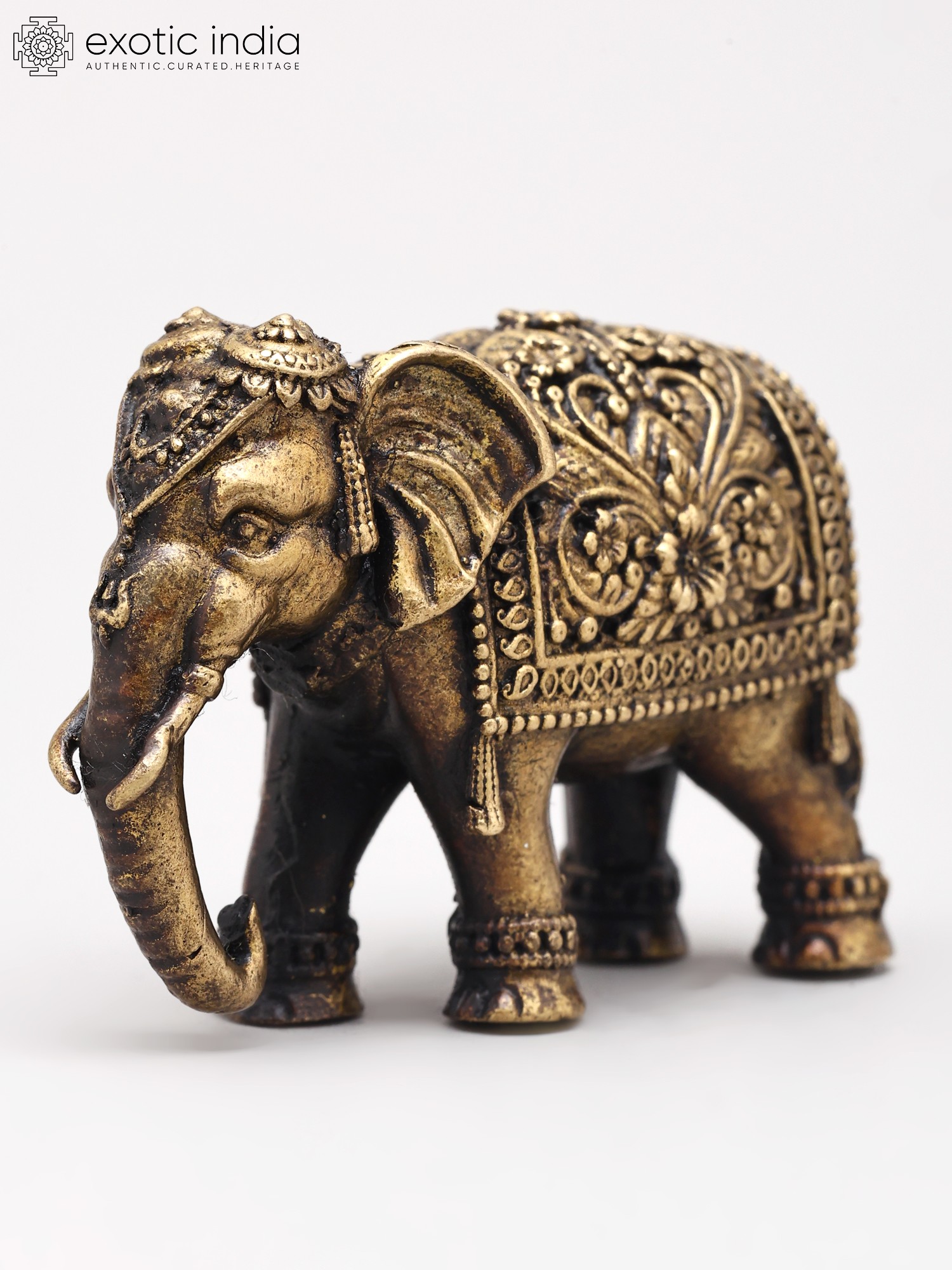 2" Small The Royal Elephant with Carving for Decor | Copper Statue | Made in India