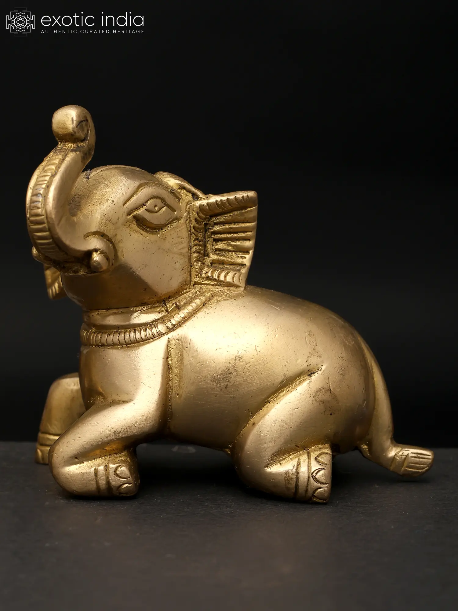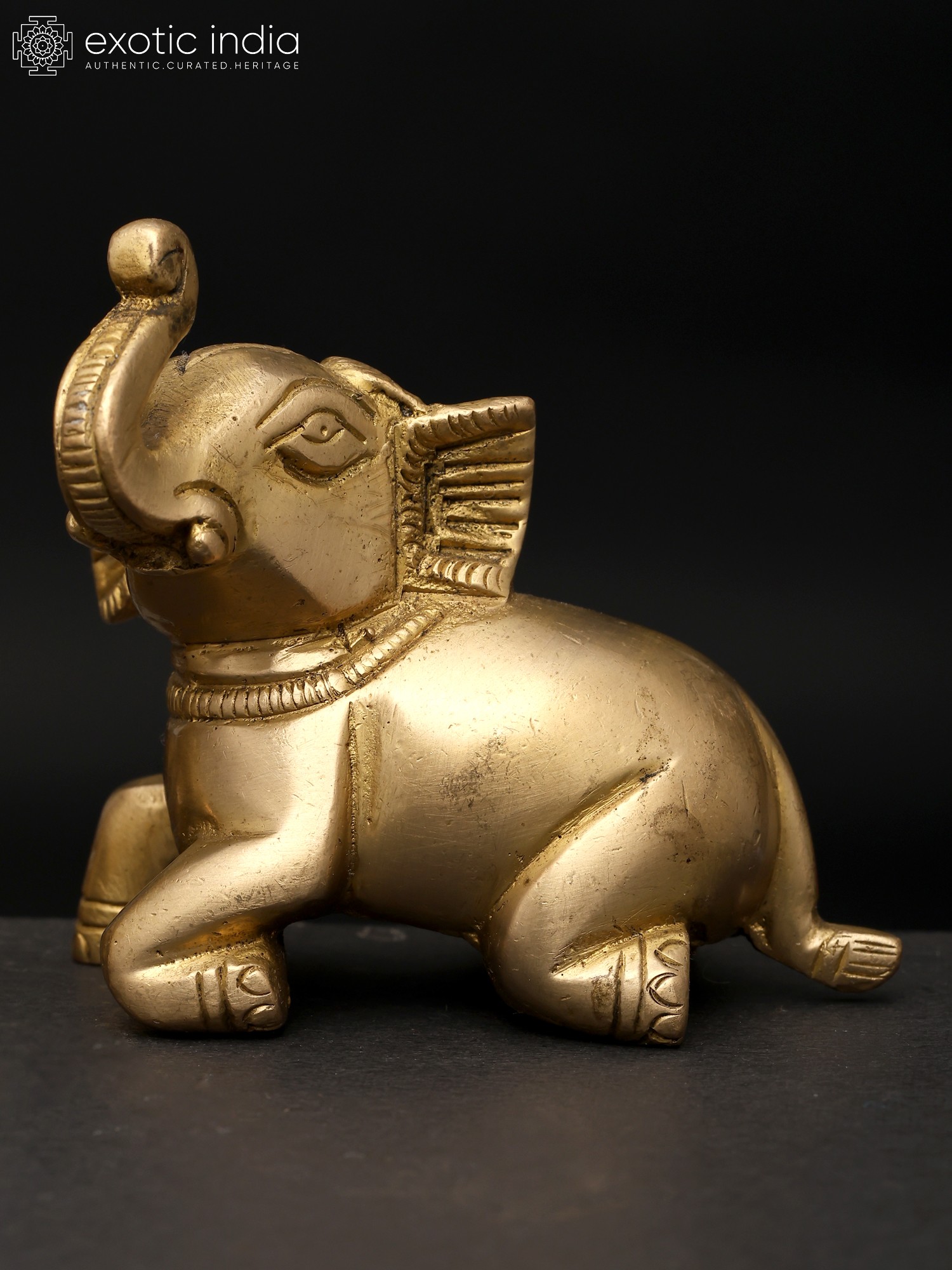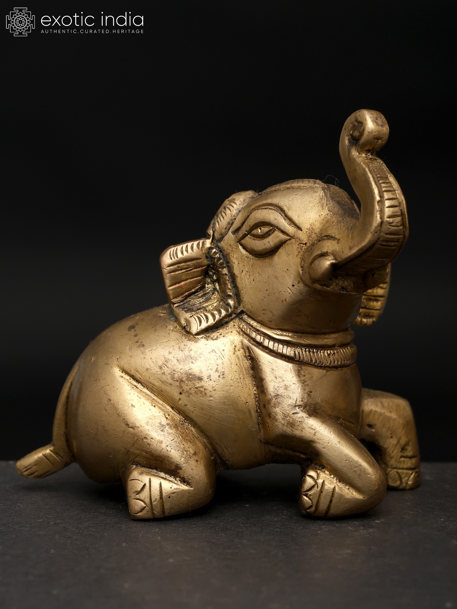 8" Brass Elephant with Candle Stand on Wood Base | Dhokra Art | Table Decor