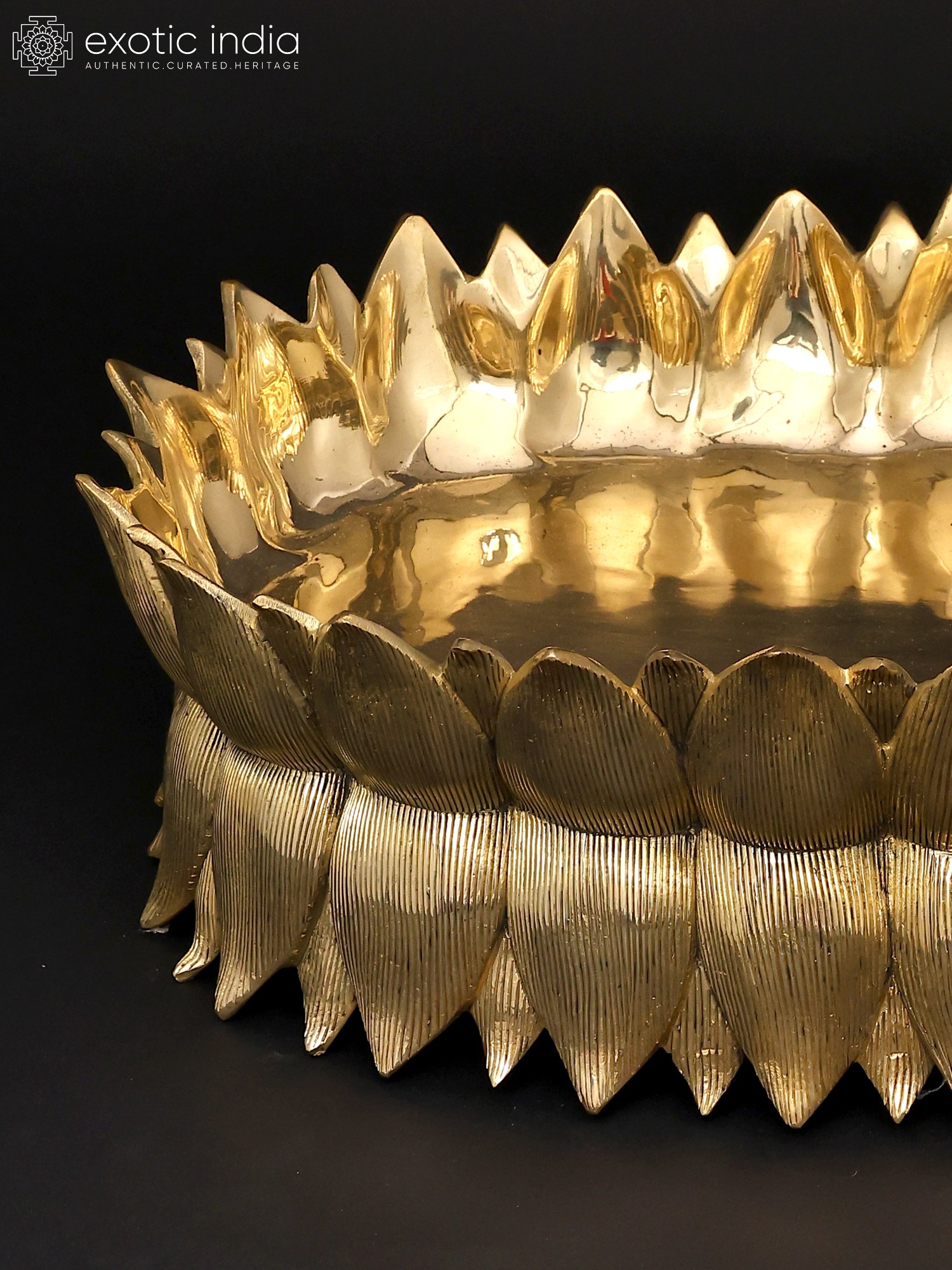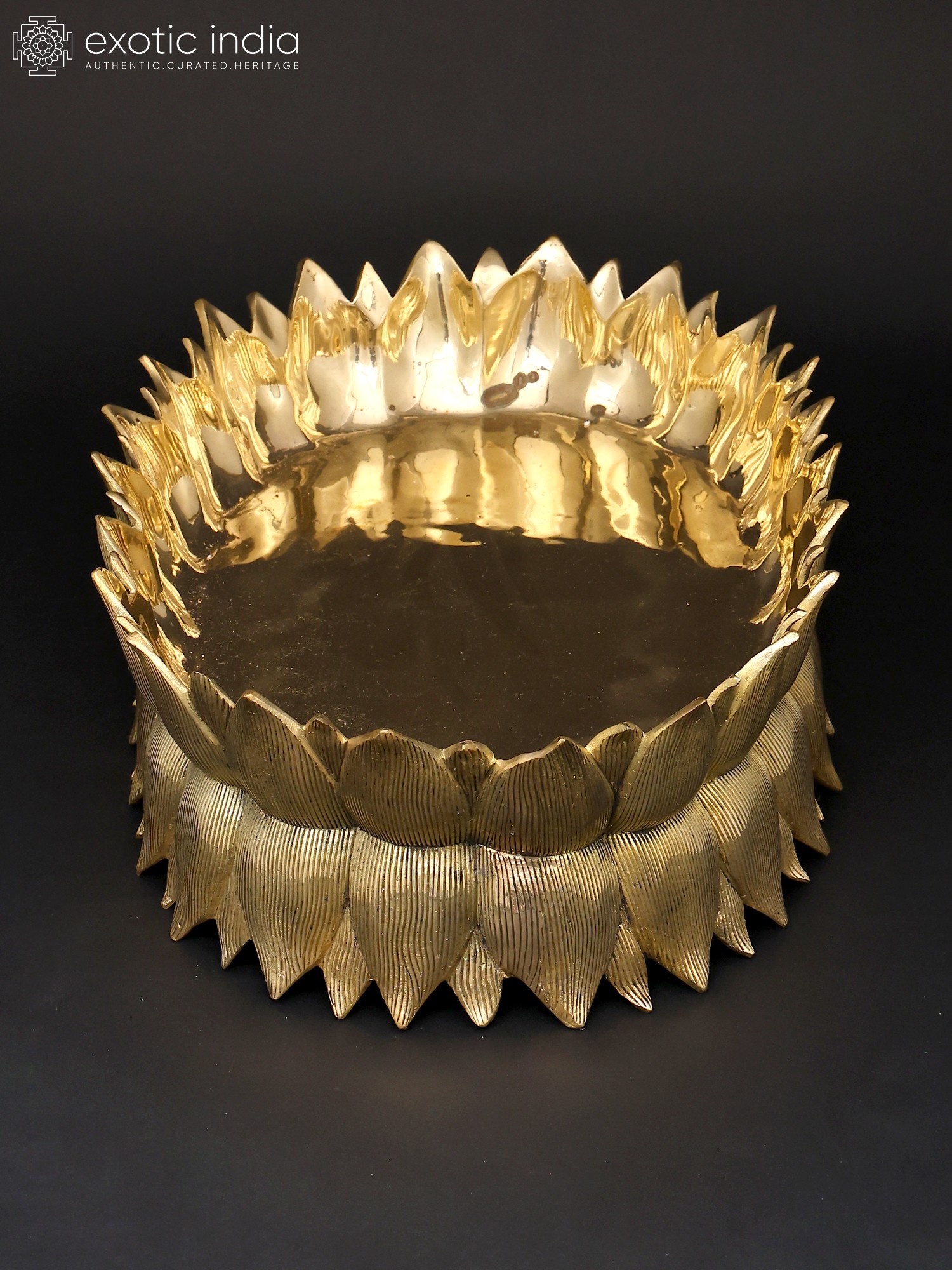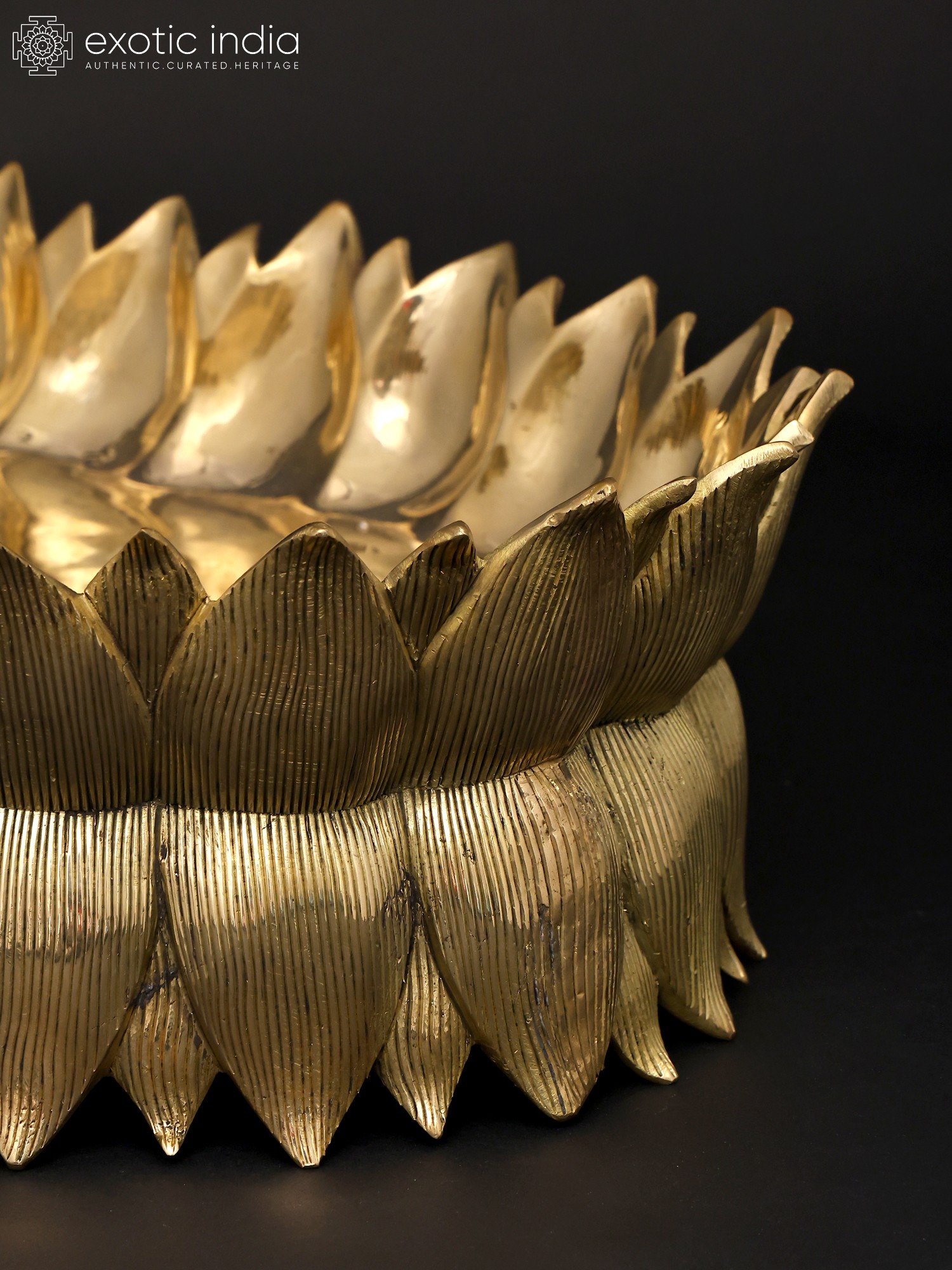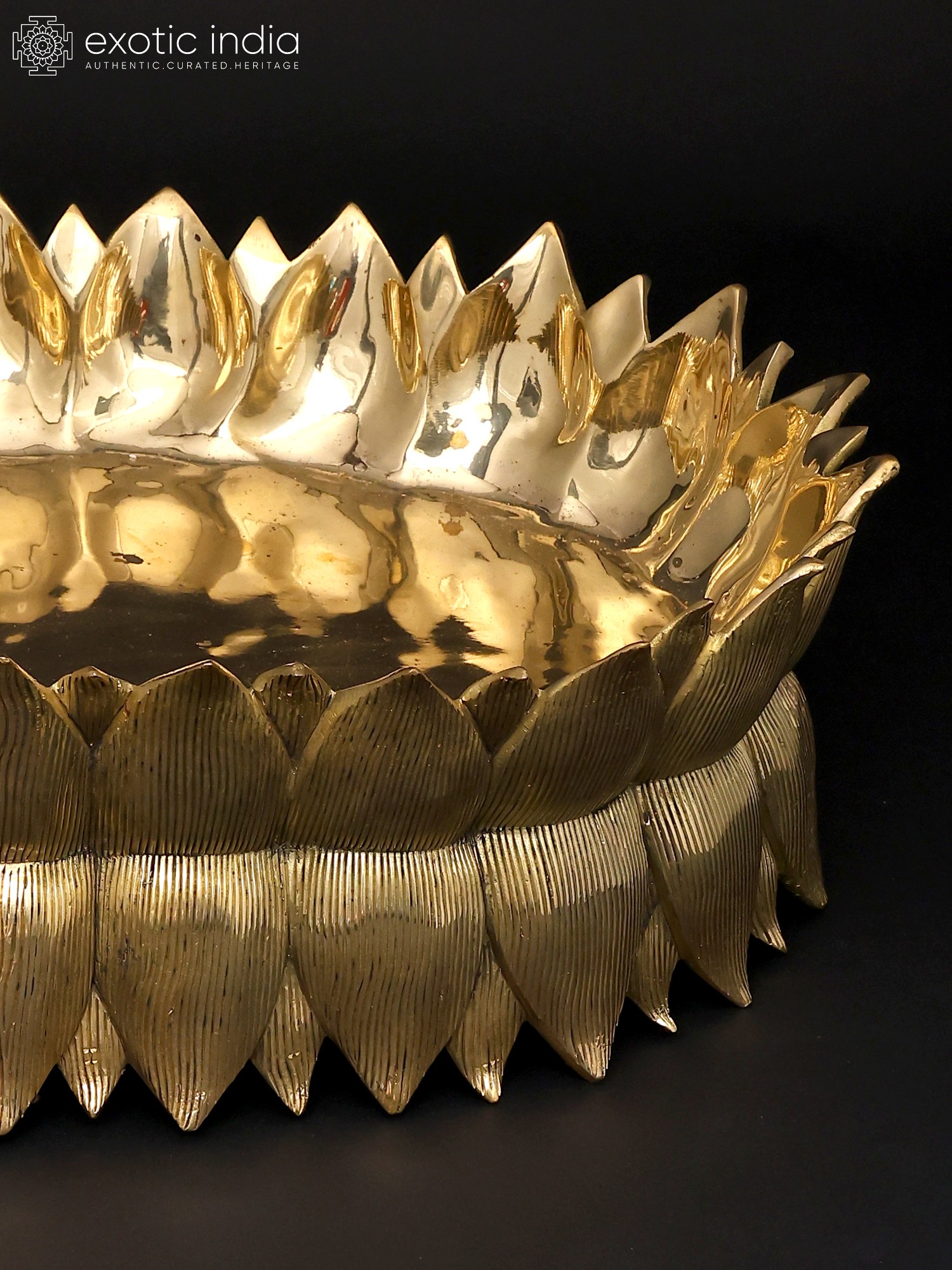 Imbue your living space with a touch of timeless elegance and natural splendor with this exquisite 20-inch designer brass lotus urli. Crafted from high-quality brass, this piece is a testament to the enduring artistry and rich cultural heritage of India. The urli, traditionally used for decorative displays of flowers and floating candles, takes on a new dimension of beauty with its lotus-inspired design.