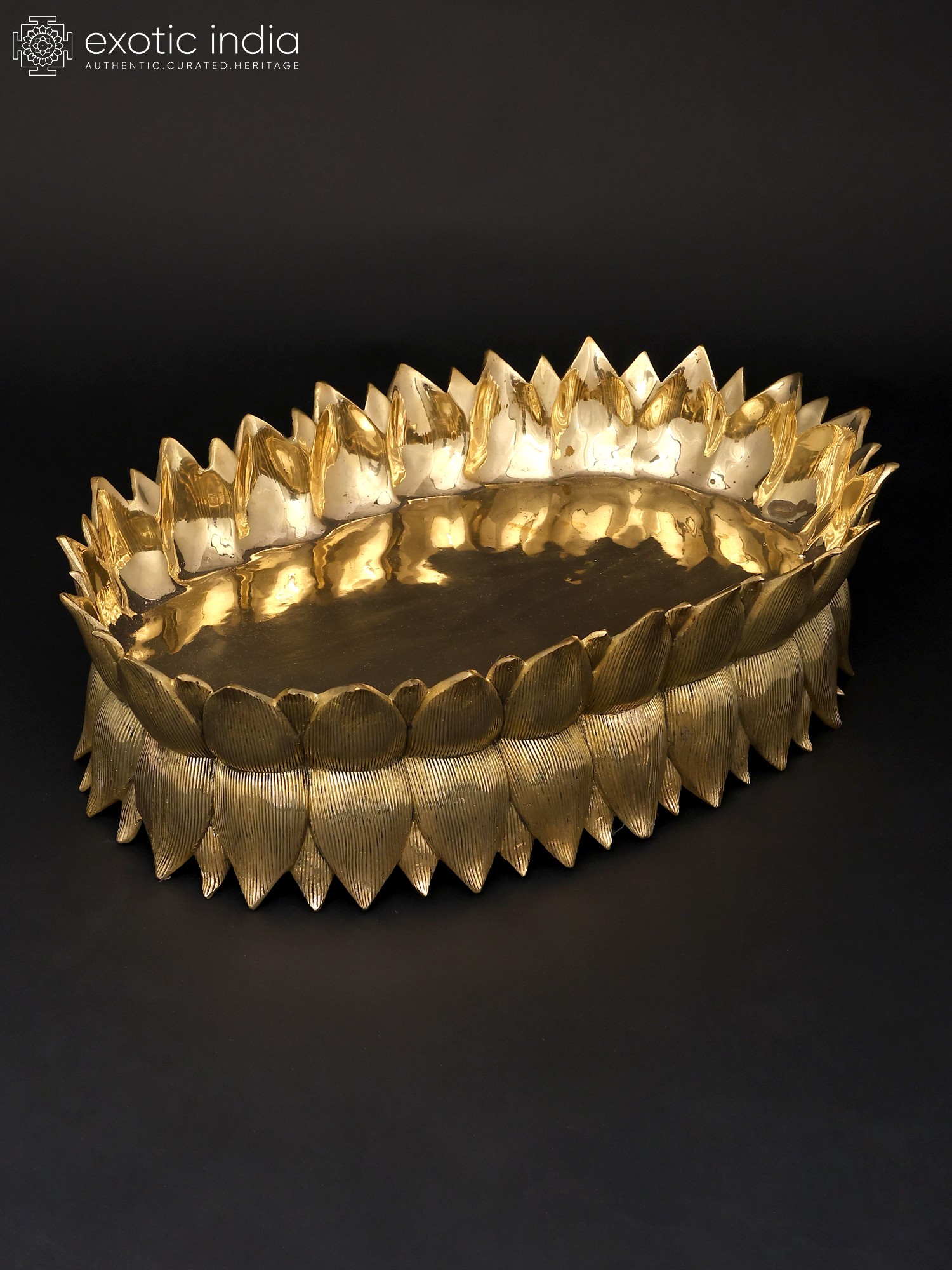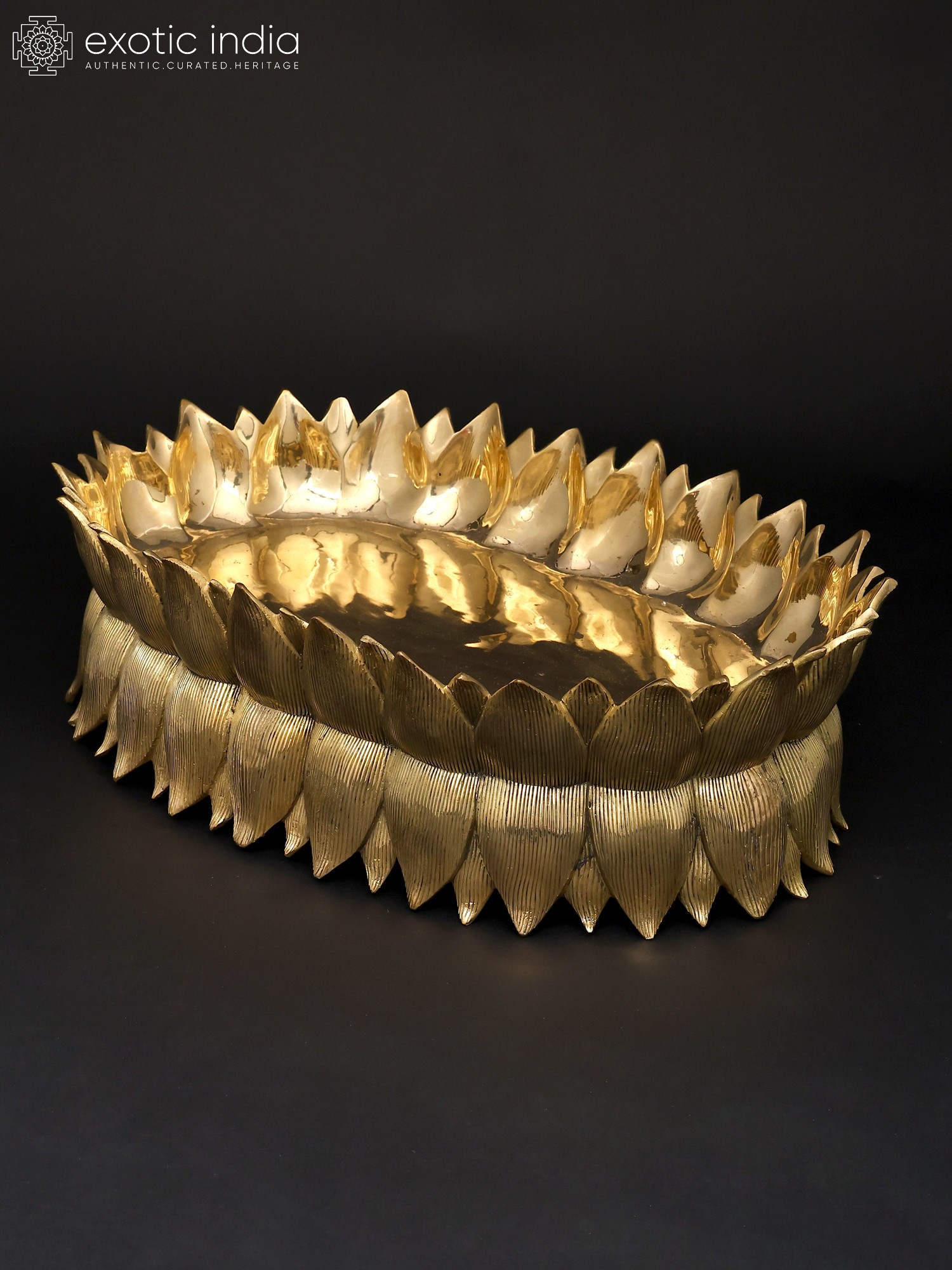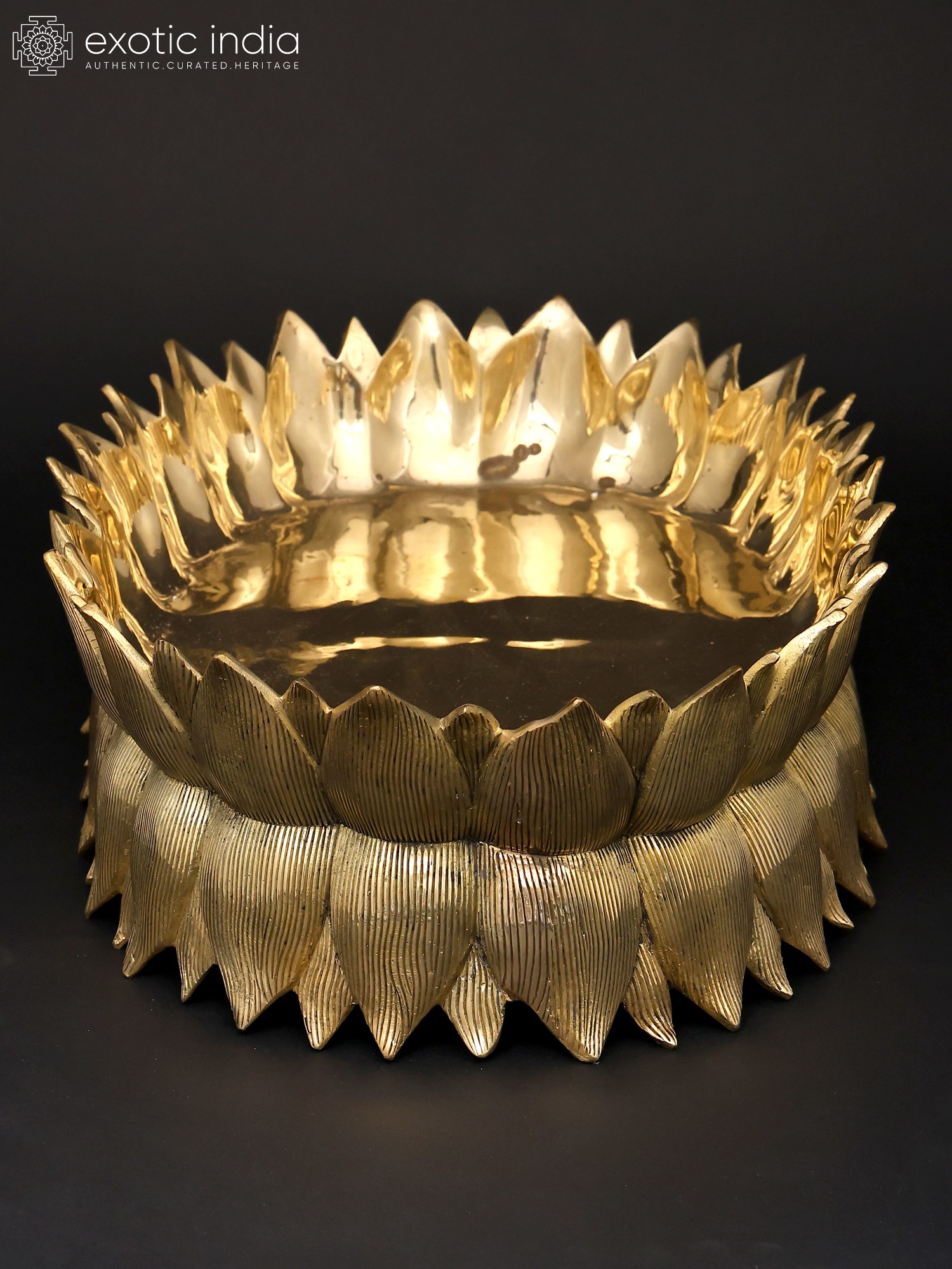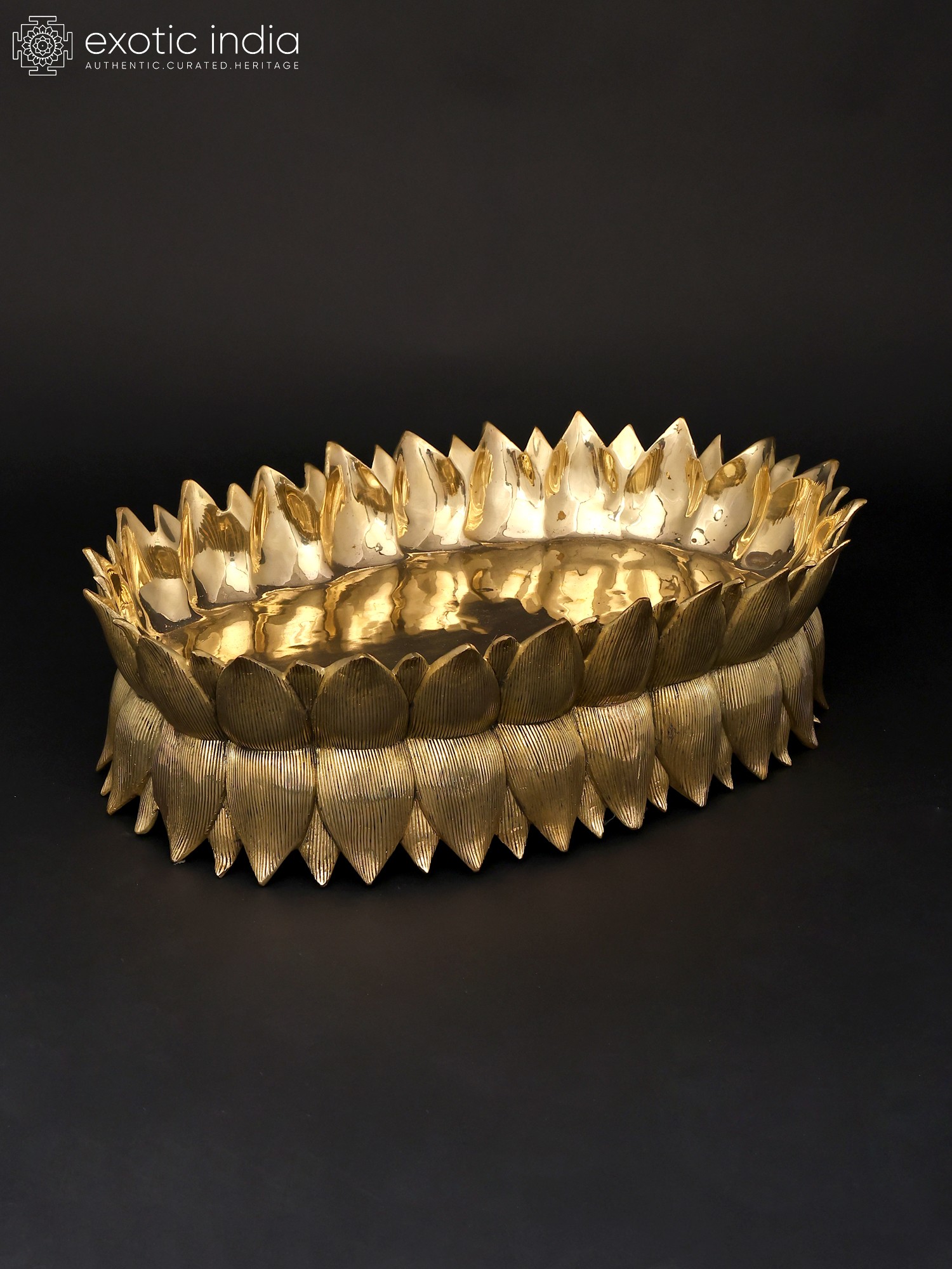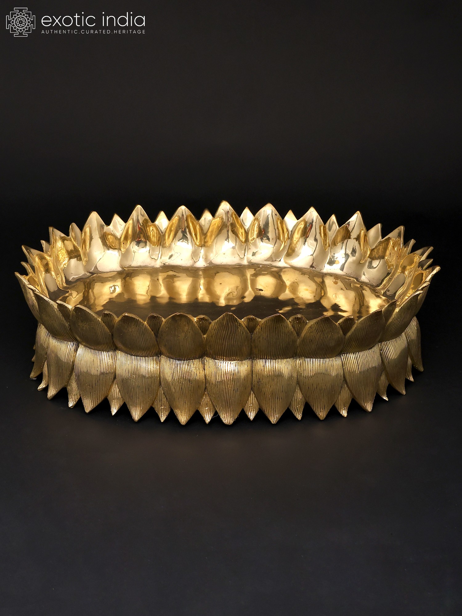 Imbue your living space with a touch of timeless elegance and natural splendor with this exquisite 20-inch designer brass lotus urli. Crafted from high-quality brass, this piece is a testament to the enduring artistry and rich cultural heritage of India. The urli, traditionally used for decorative displays of flowers and floating candles, takes on a new dimension of beauty with its lotus-inspired design.