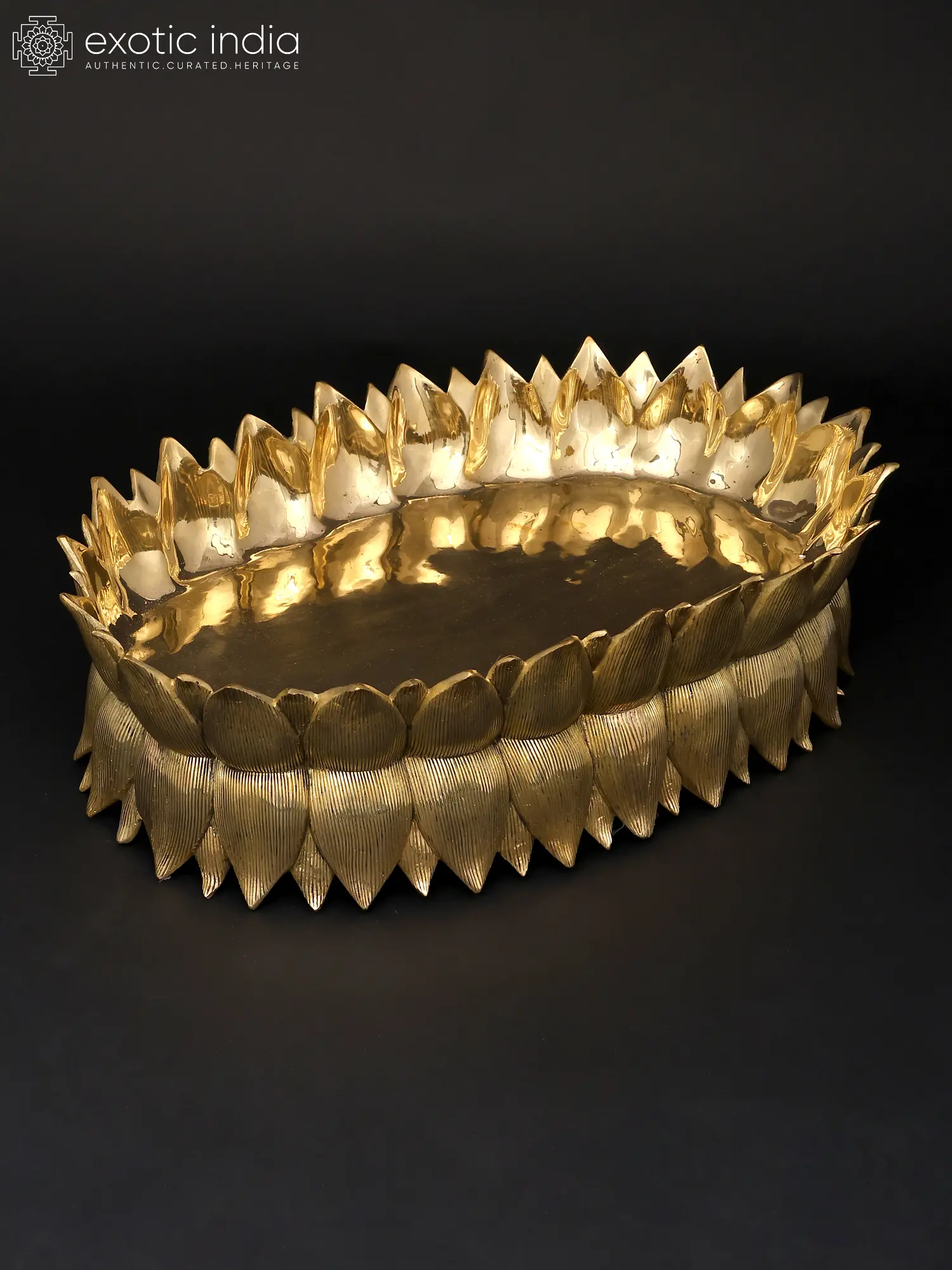 The lotus flower, a sacred symbol in many cultures, represents purity, enlightenment, rebirth, and divine beauty. This urli captures the essence of the lotus in full bloom, with meticulously crafted petals forming the outer rim. Each petal is delicately etched, showcasing the intricate detailing and skillful handiwork of the artisans. The lustrous brass finish reflects light beautifully, creating a warm and inviting glow that will enhance any environment. ––––––––––