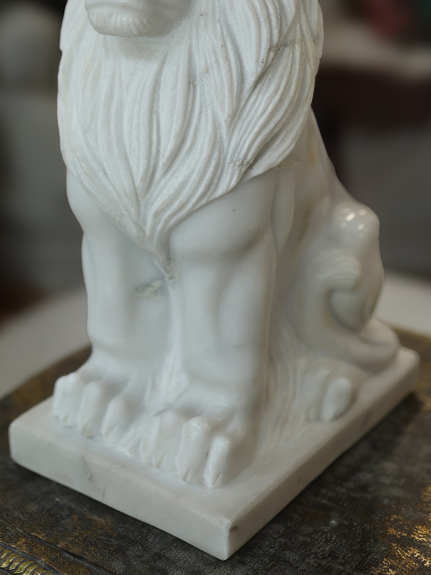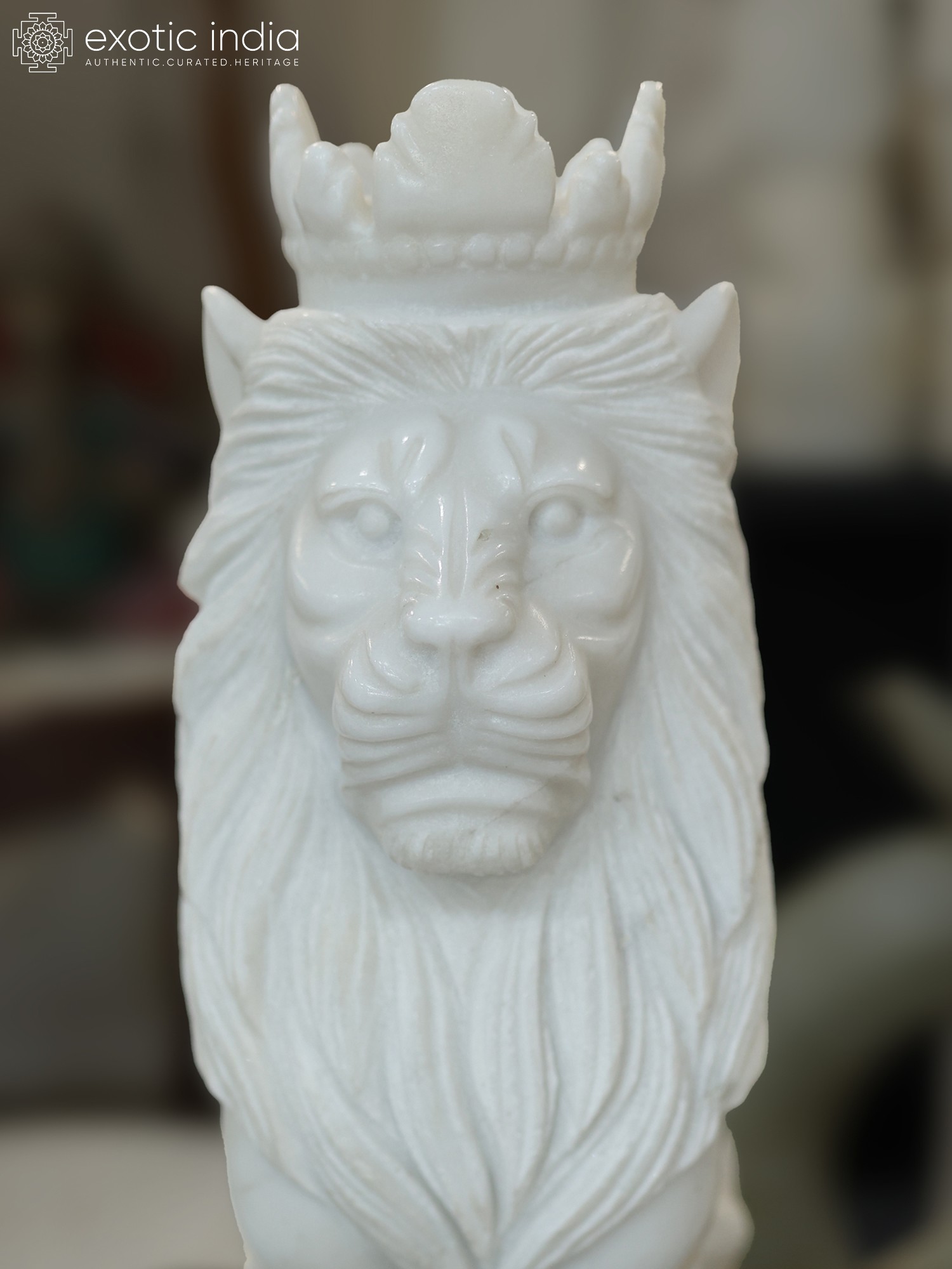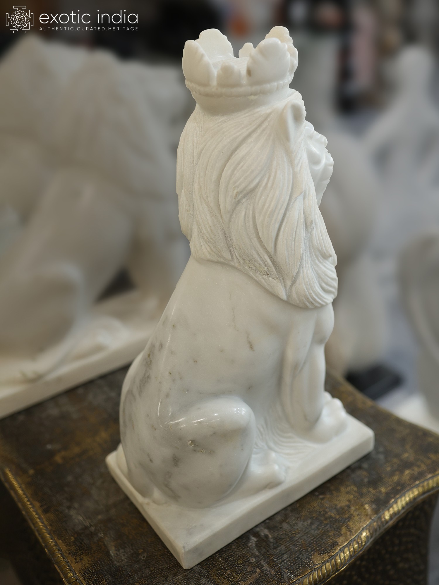 When Power Meets Itself | Lion Pair Statue | White Marble | Exquisite Indian Art