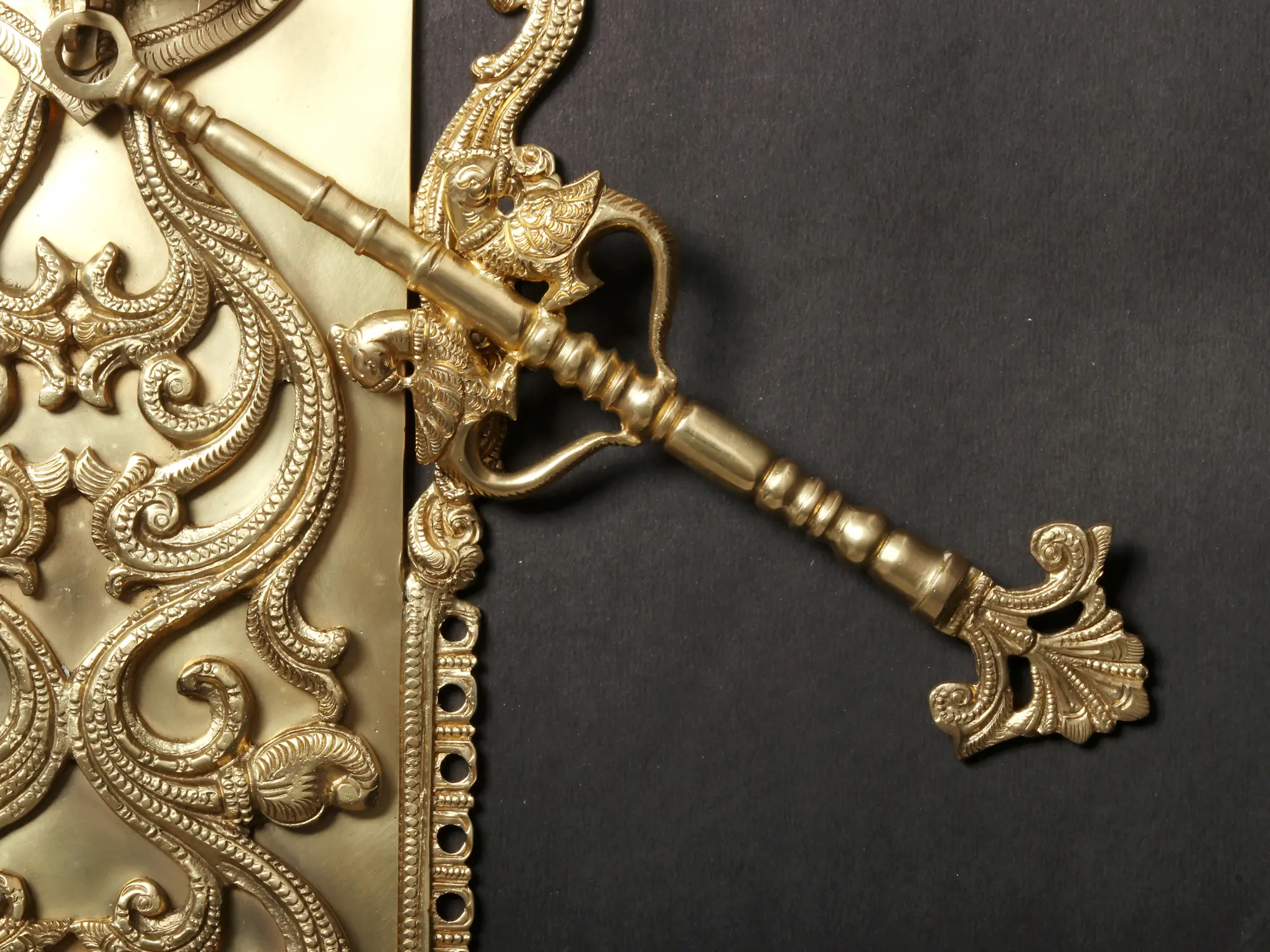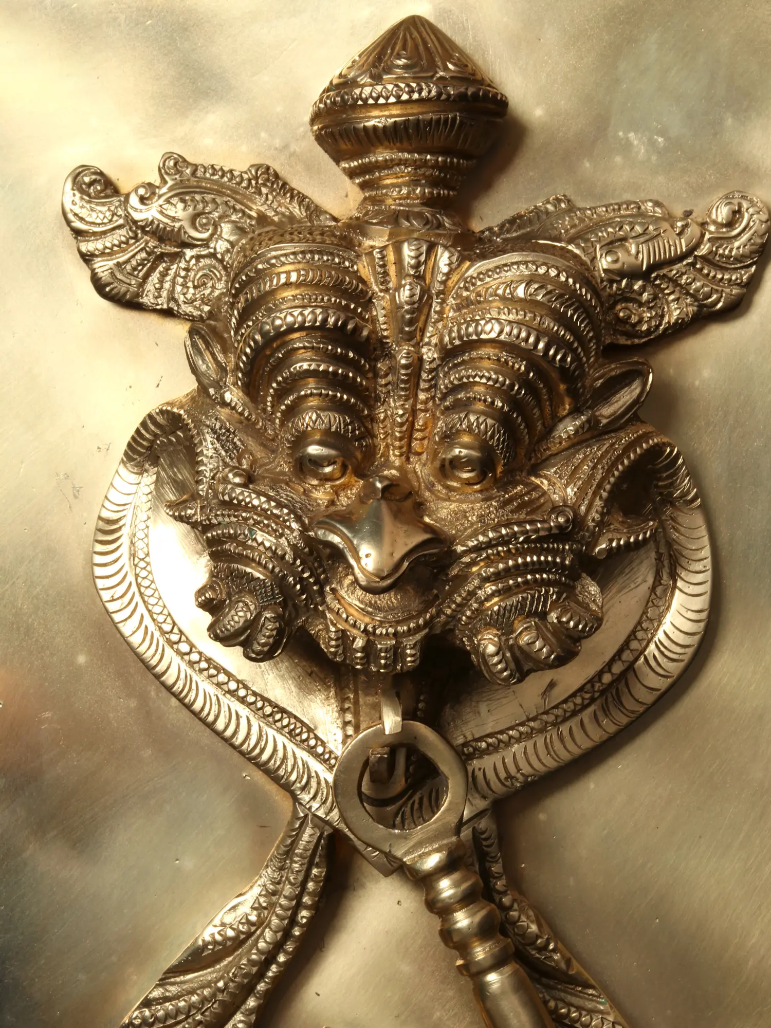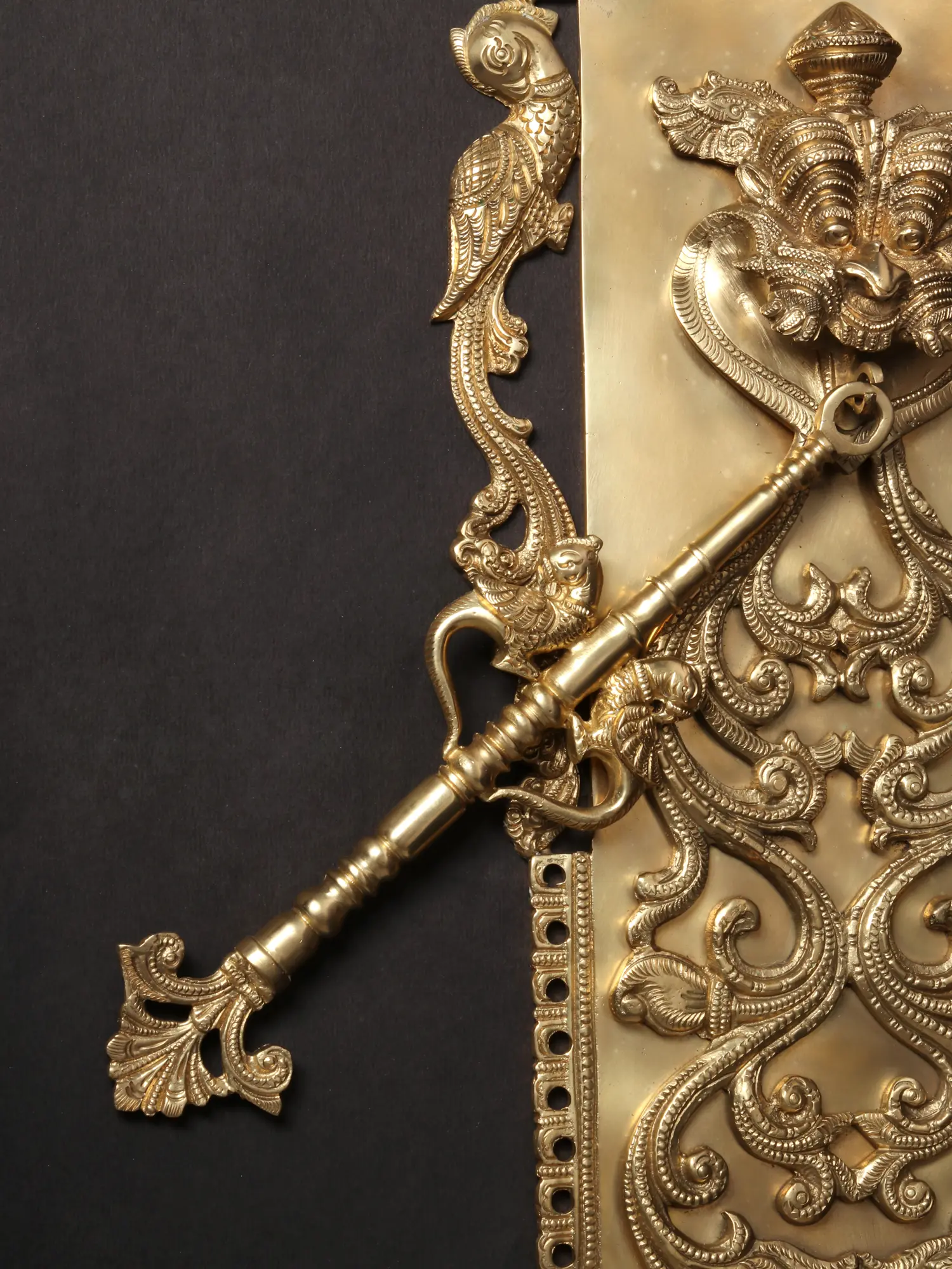 Welcome guests in style with the Kirtimukha Design Door Knocker in Brass, a fusion of tradition and sophistication. Crafted with detailing, this door knocker showcases the mythical Kirtimukha motif, symbolising protection and prosperity. Its lustrous brass finish adds a touch of timeless elegance to your entrance, making a statement that echoes your discerning taste and appreciation for artistry.