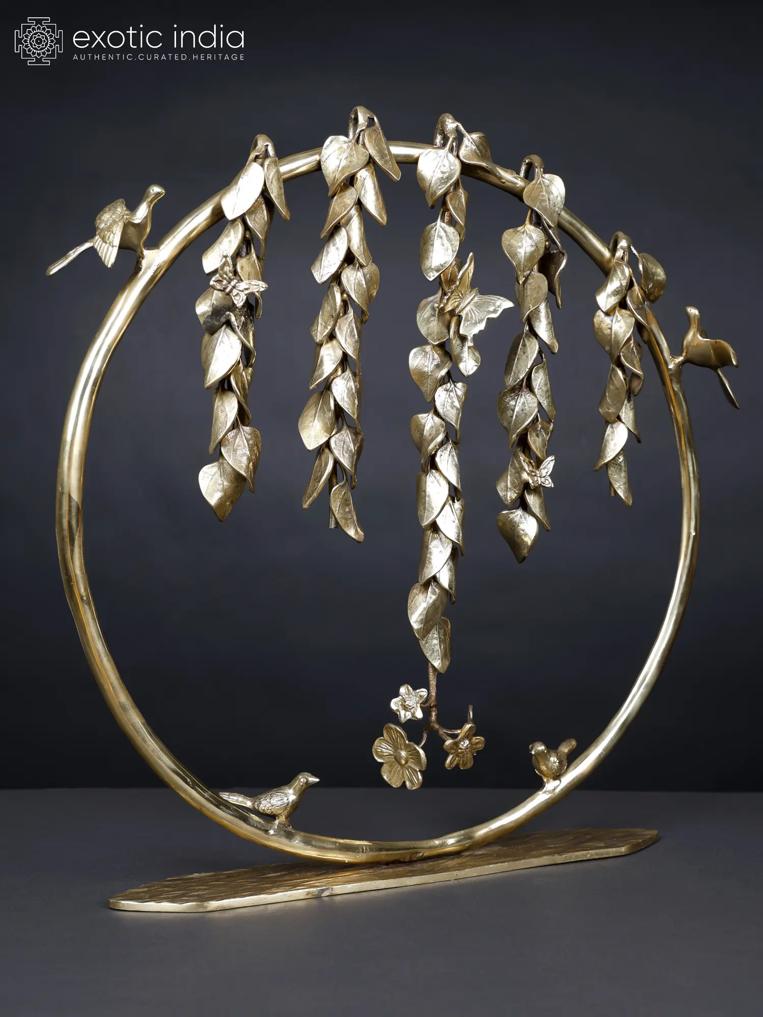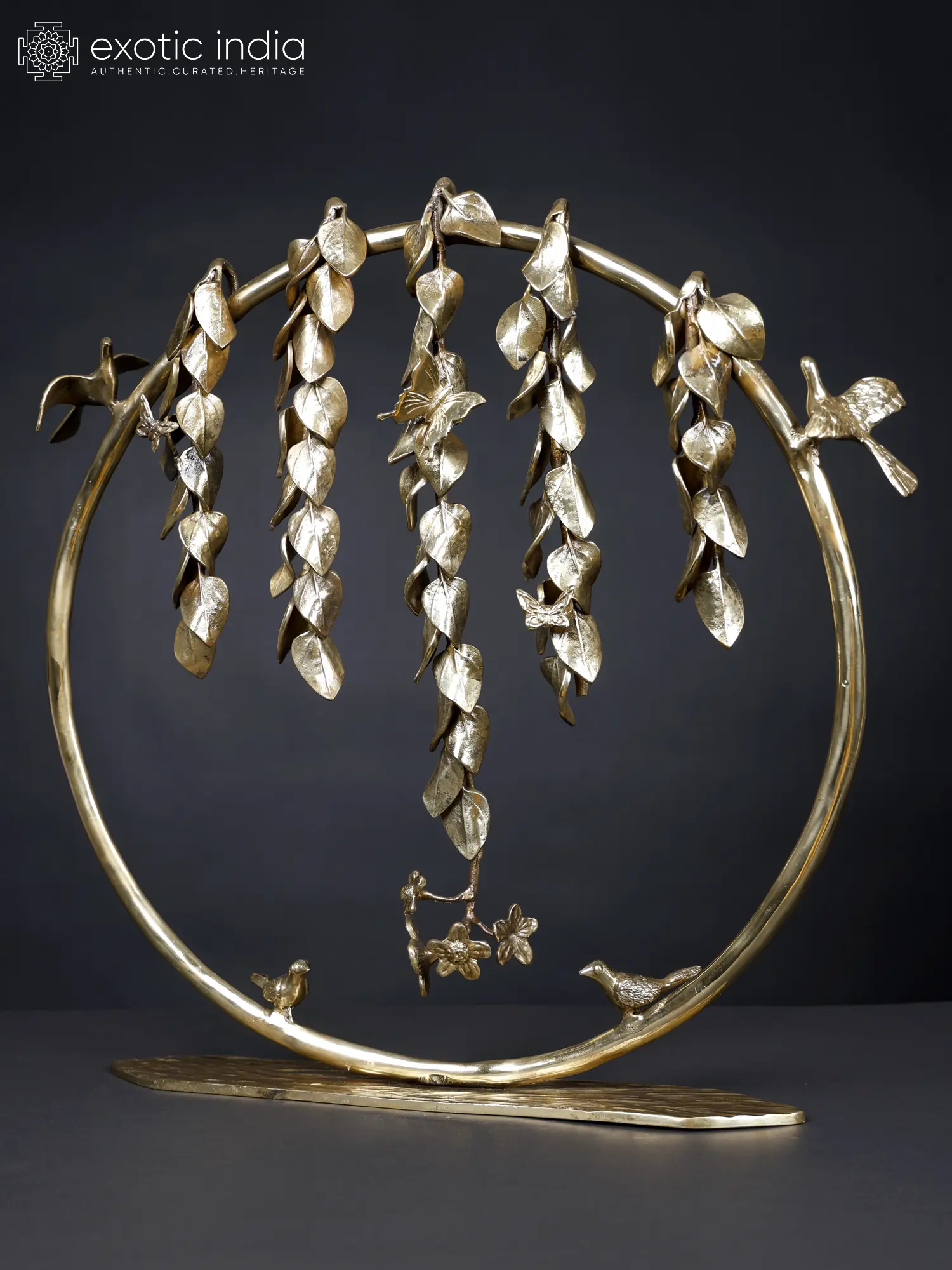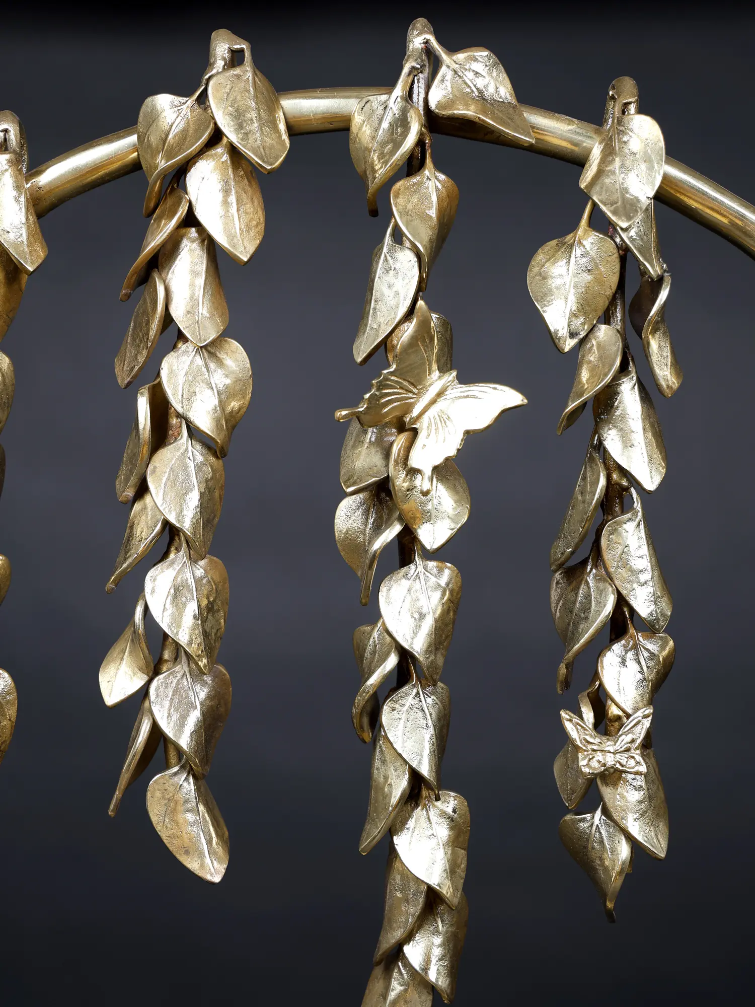 This showpiece is meticulously crafted to reflect the intricate details of a leaf veil, with its fine veins and natural contours. Perched delicately on the leaf are a butterfly and birds, each rendered with exceptional artistry.