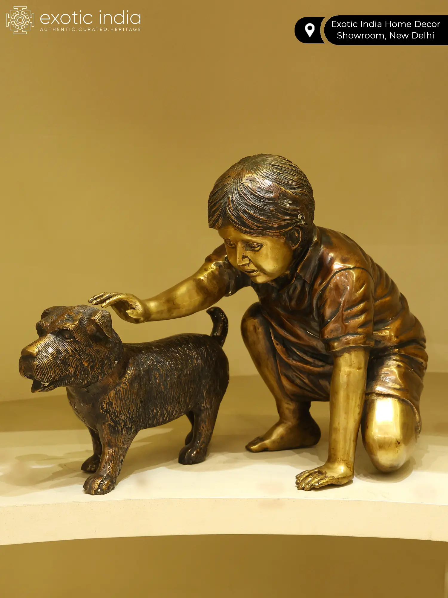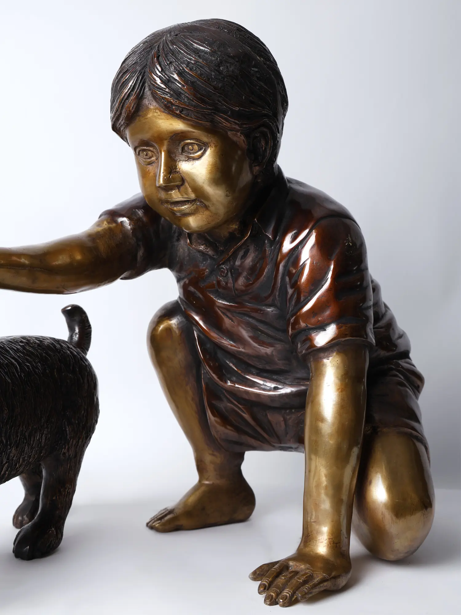 A Timeless Treasure: The 24" Boy Caressing Puppy Brass Statue