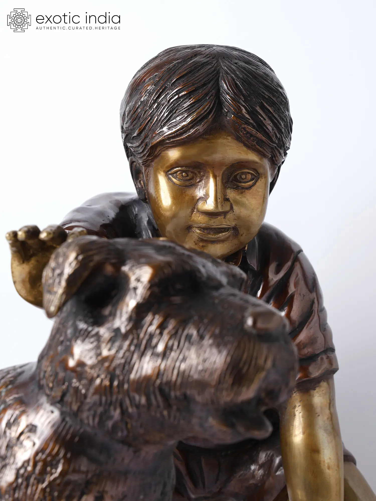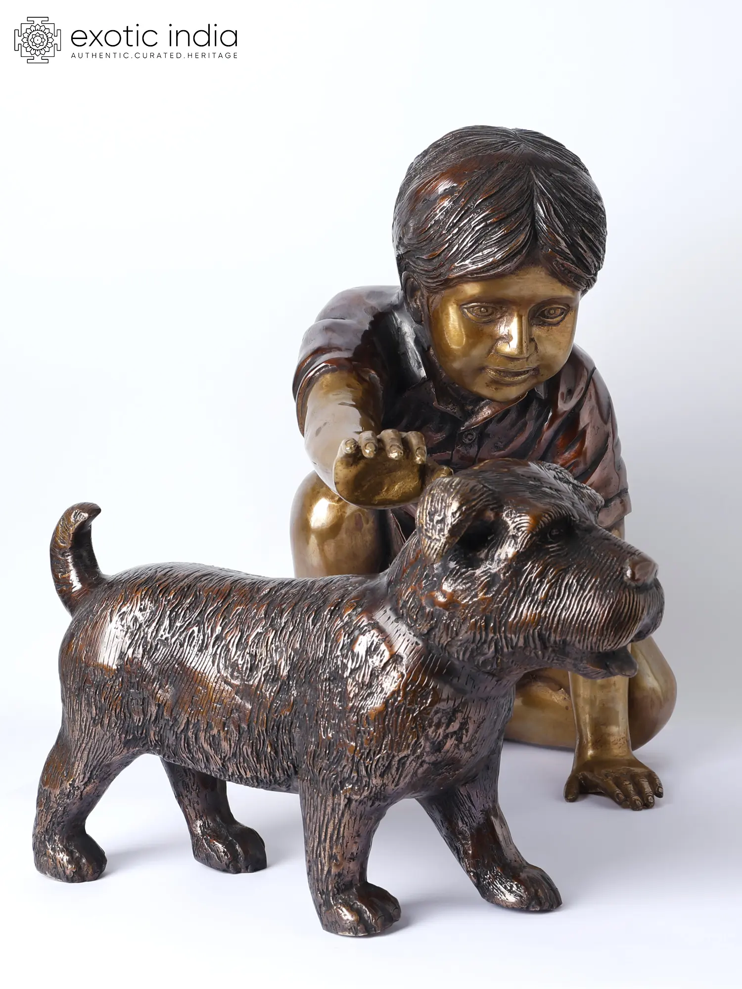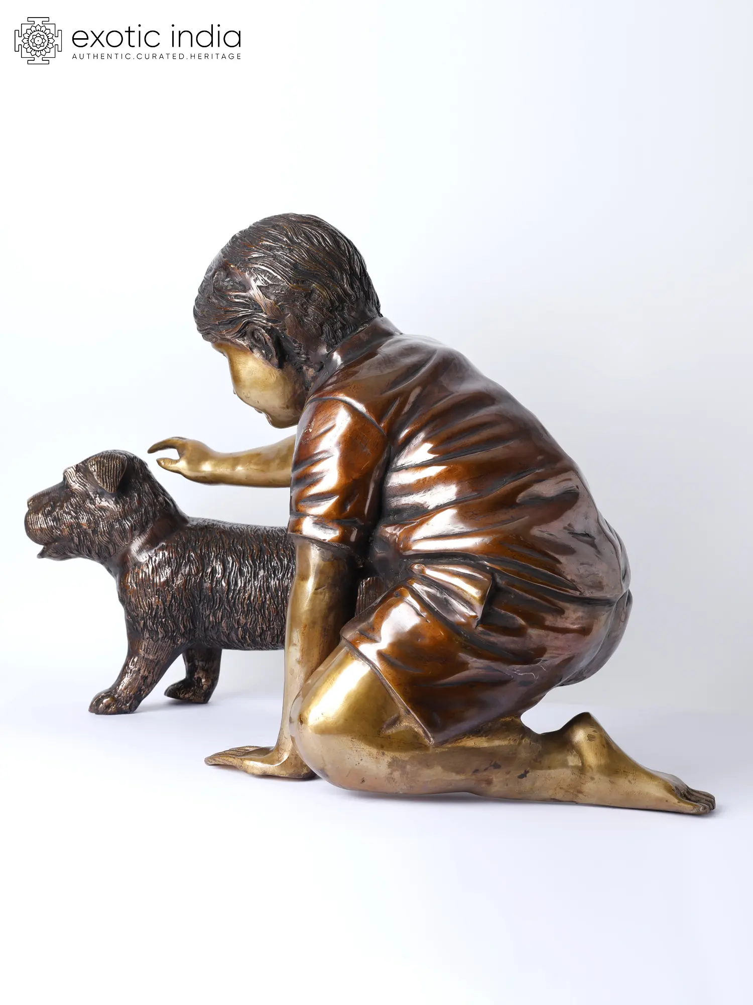 24" Boy Caressing Puppy | Decorative Brass Statue | Home Decor