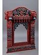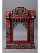 Rajasthan is always known for its beauty and colorful ambiance. The Rajasthani architecture has colorful doors known as Kevat and windows known as Jharokha. This small Jharokha is a testament to the finest of Rajasthani architecture. It is made of Mango Wood. It is painted with one of the most regal combinations of colors. Two elephants are seen in a triumph position on the head panel of the Jharokha. There are floral motifs on both side panels. There is a smart combination of maroon and blue colors on the carved patterns, and they are highlighted with white dots or lines, very typical of the Jodhpur style of furniture painting.