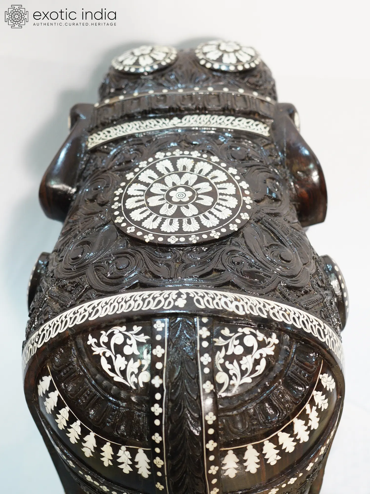 36" Large God Krishna Playing Flute With Cow | Wooden Statue