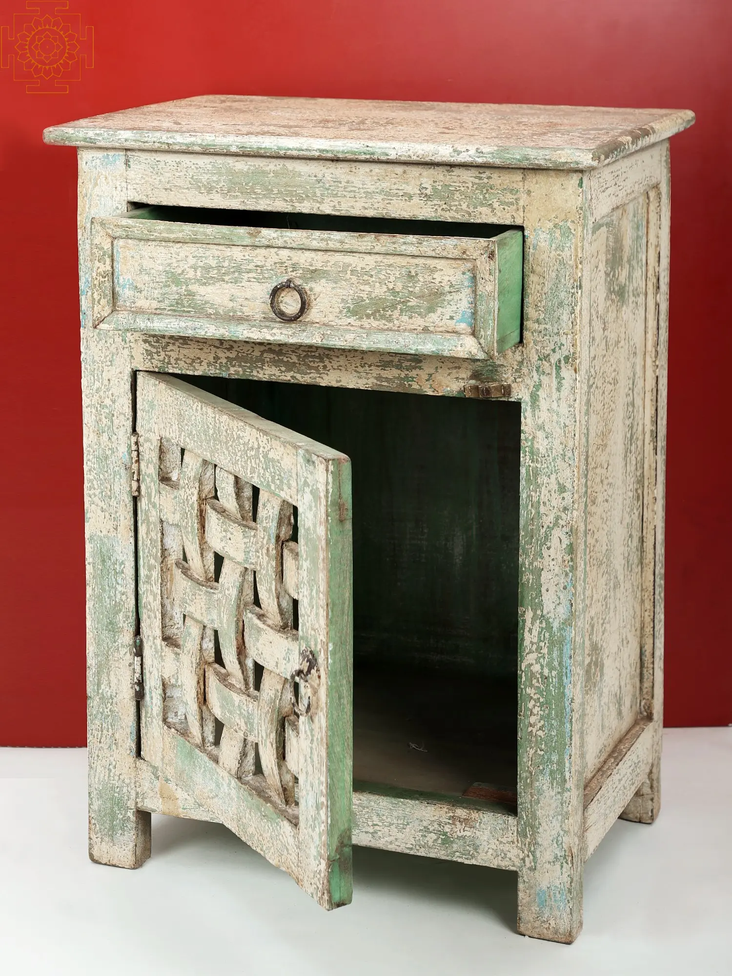 Add a touch of sophistication to your space with our Wooden Side Table featuring a Lattice Door, a handmade piece that combines elegance with practicality. This side table is not just furniture; it's a work of art crafted with precision and aesthetic will. Handmade, the lattice door adds a touch of vintage-inspired design to your decor. Whether used as a bedside table or an accent piece, let this handmade wooden side table become a statement of style, showcasing the beauty of Indian craftsmanship in your living space.
