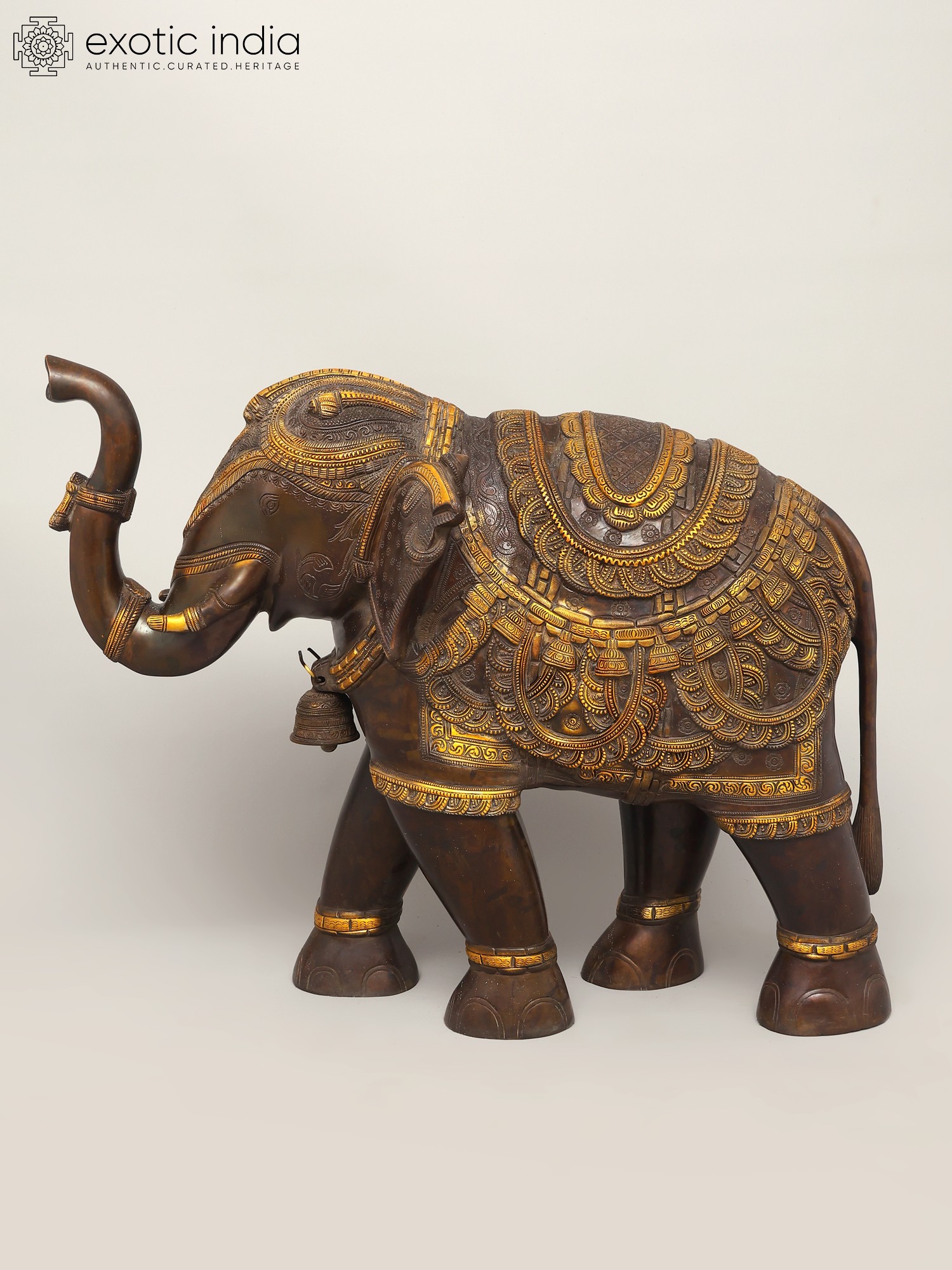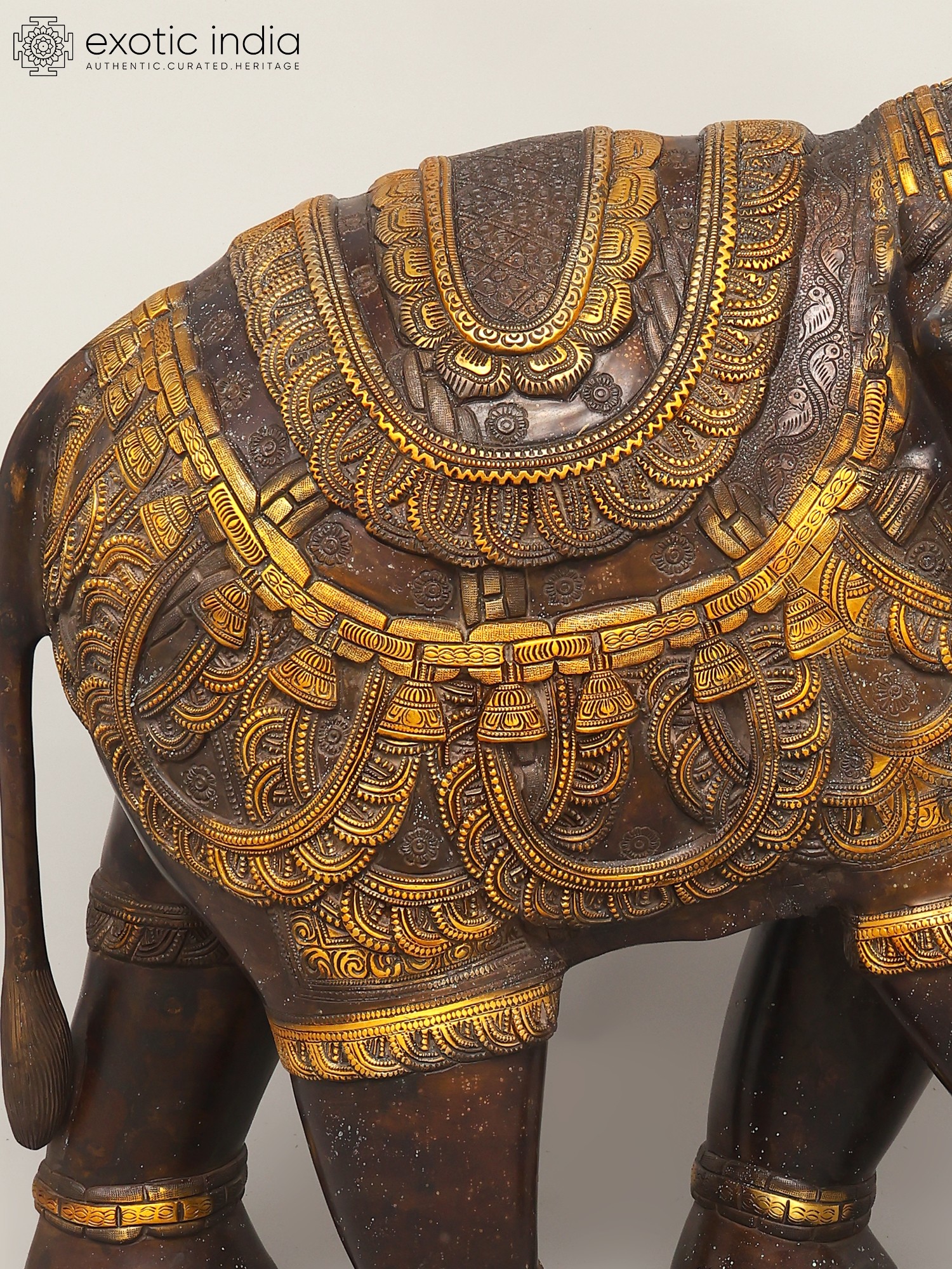 Superfine Seated Nandi Idol - The Vahana of Shiva with Intricate Carving and Wood Base | Brass Statue